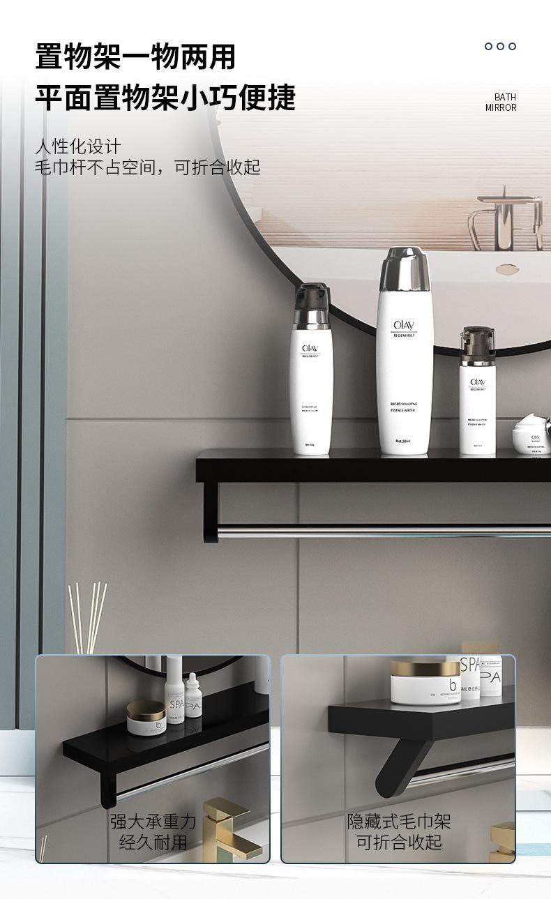 Frosted black single mirror, Simple White Single Mirror, Noble gold single mirror, Frosted Black Mirror Towel ...