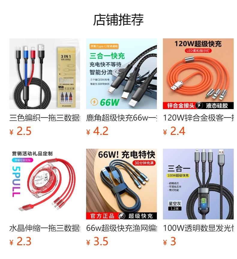 Nombre del producto: Cable de carga trenzado de nailon de uno a tres