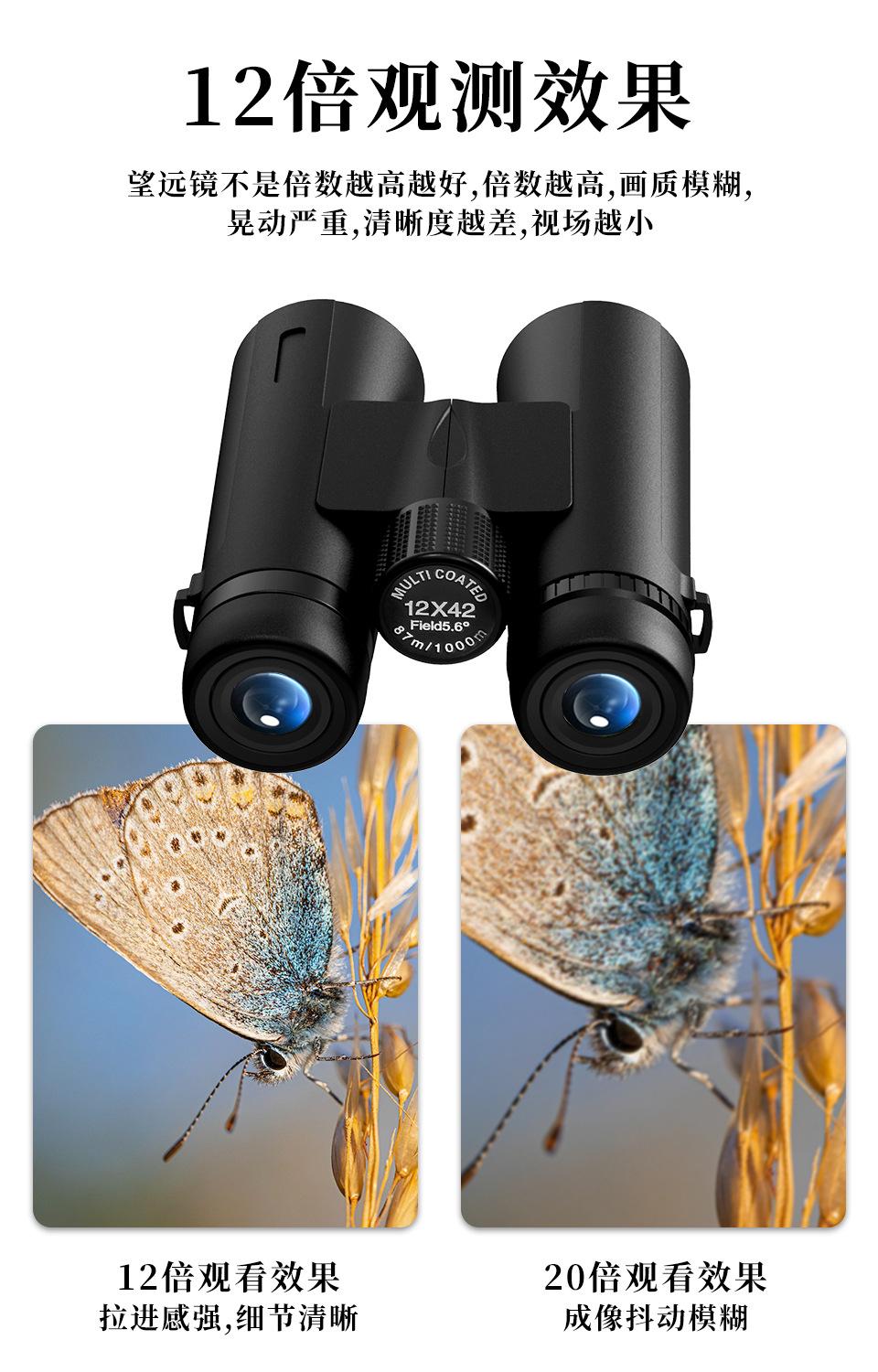 Binoculares Casuales 12X Ópticos de Alta Definición Gafas para Observación de Aves Tecnología Negra Deportes al Aire Libre Telescopio de Enfoque