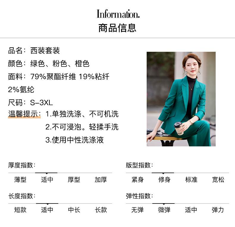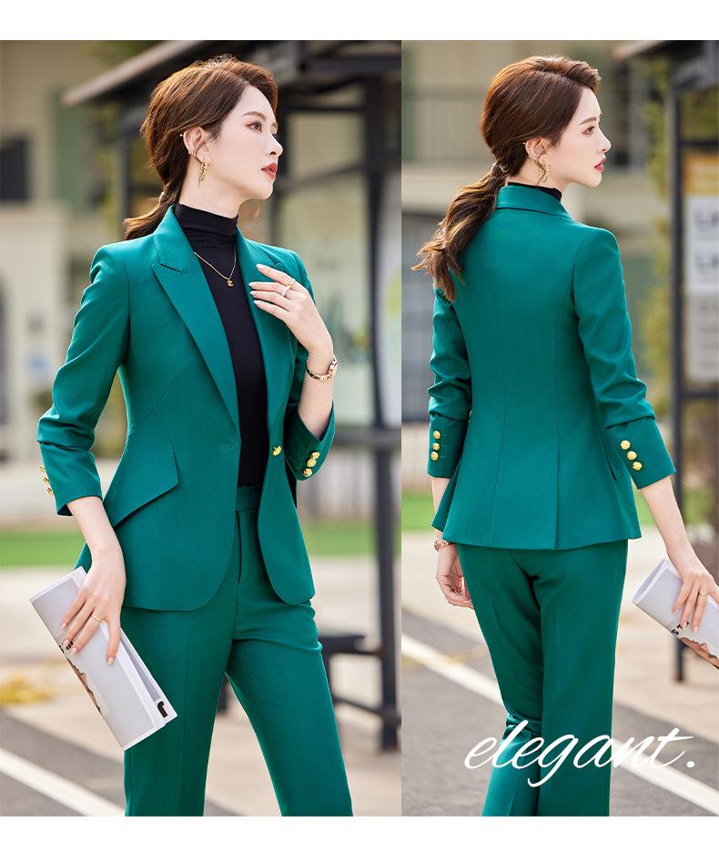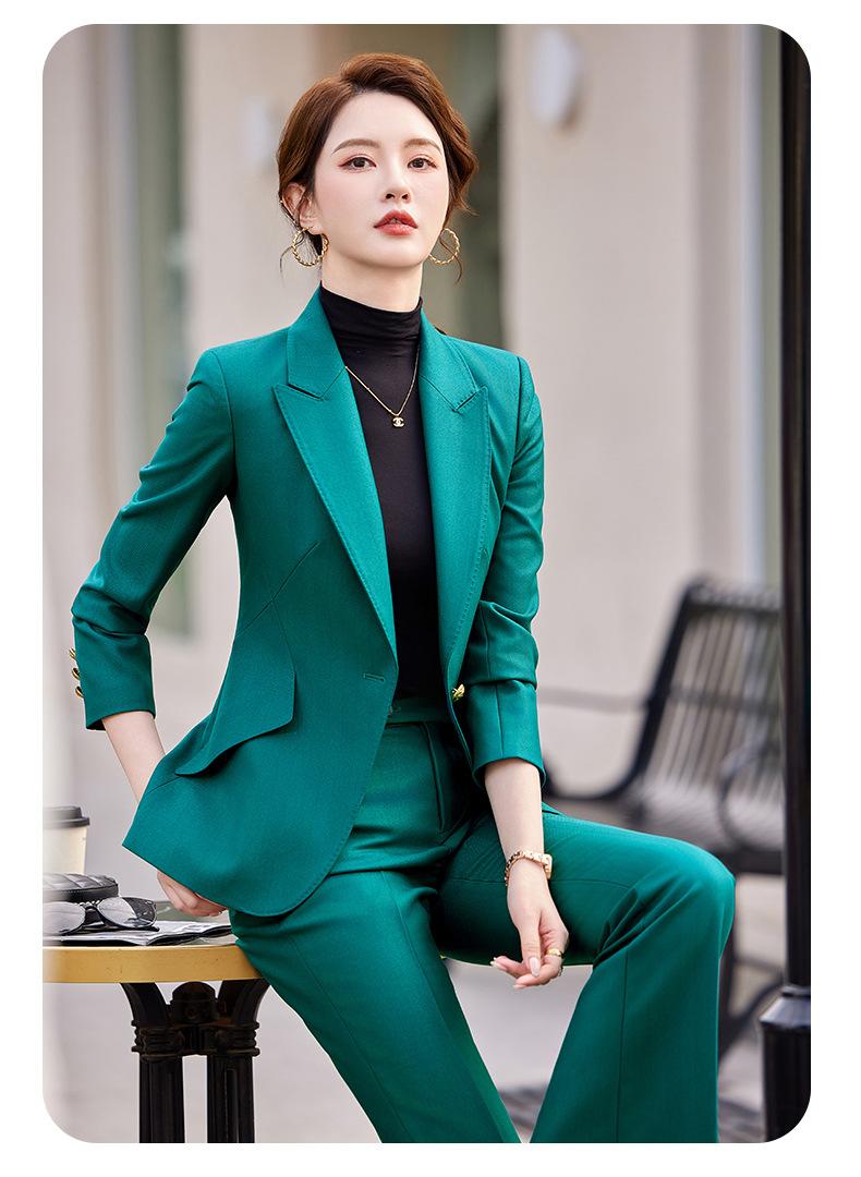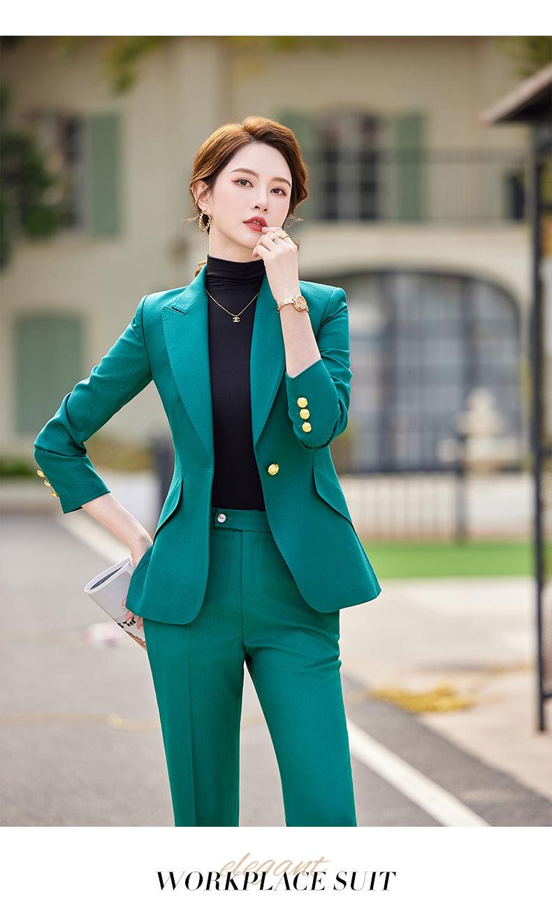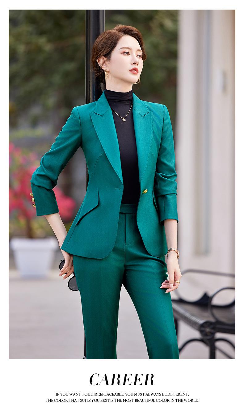 2024 Primavera y otoño nuevo verde de manga larga profesional traje pequeño cuello chaqueta pantalones de mujer traje de dos piezas moda moda