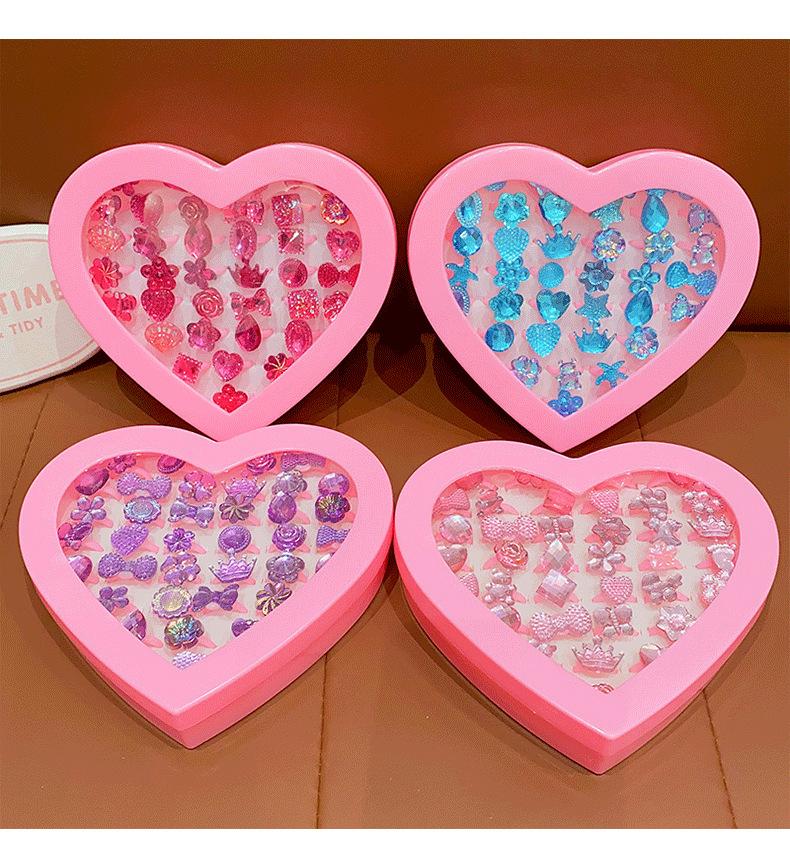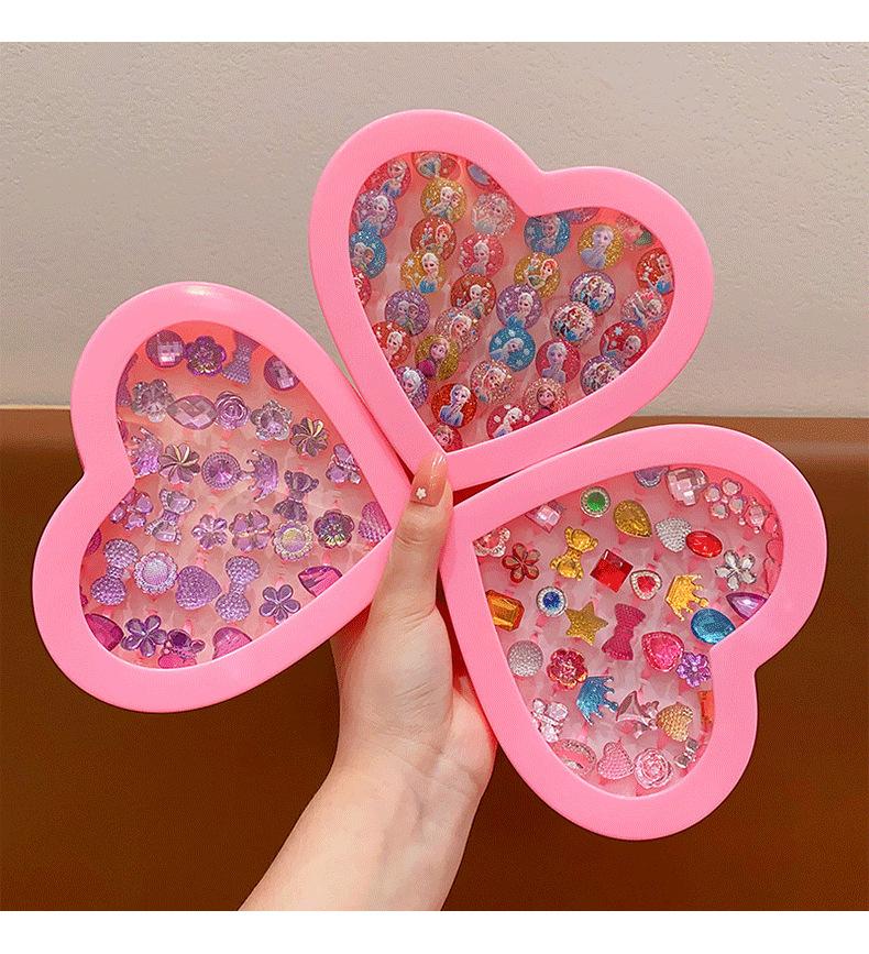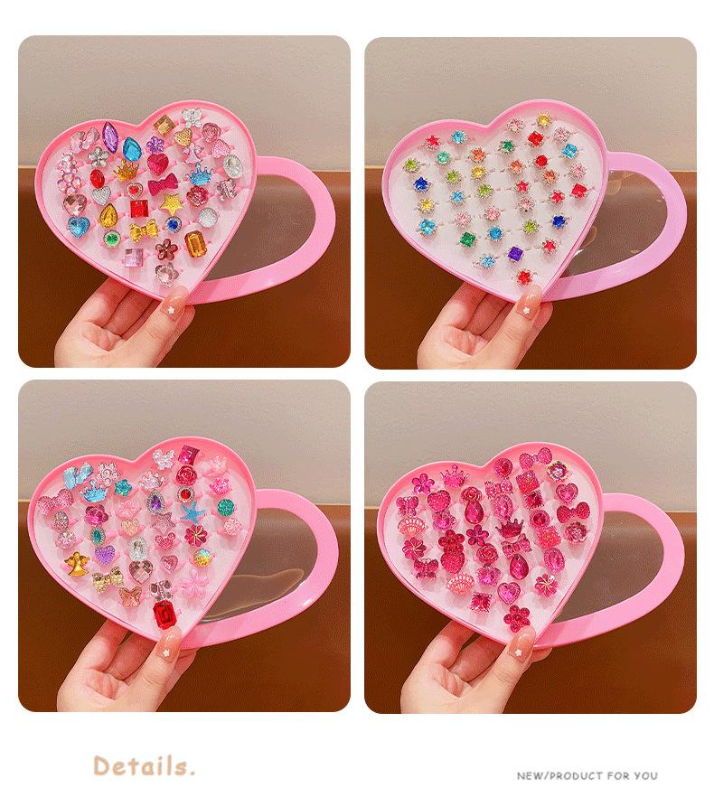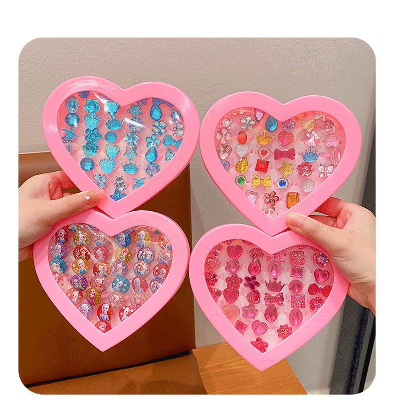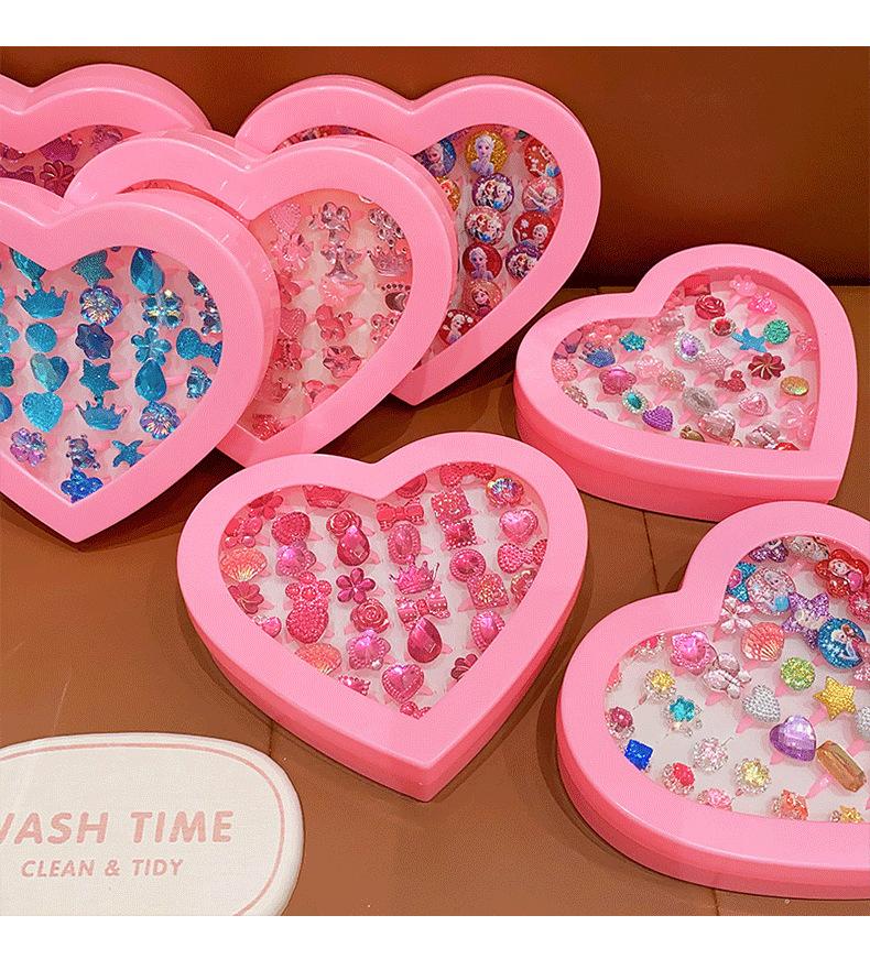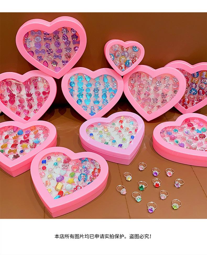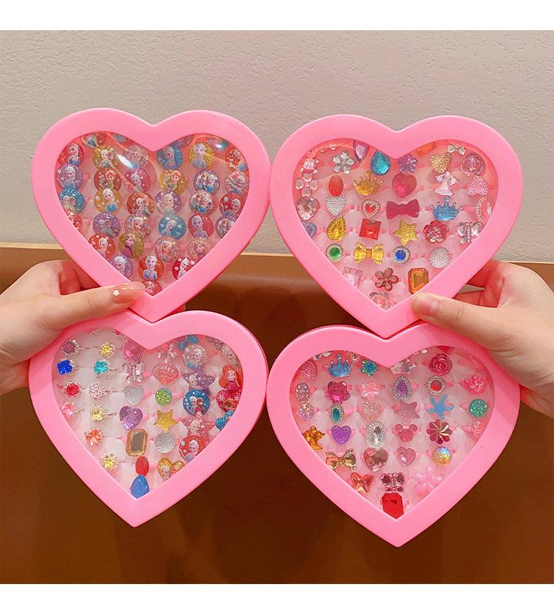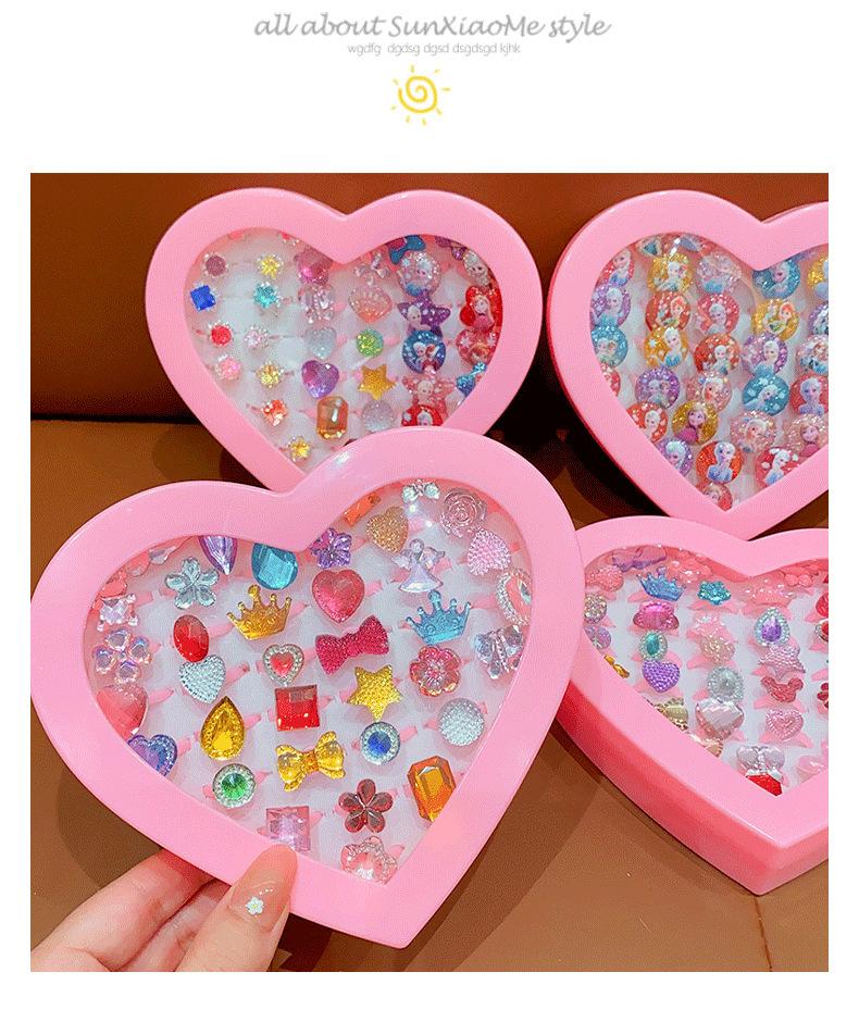 Anillo de gemas para niños, princesa, linda caricatura, joyería de diamantes, anillo para niña, caja de regalo, traje para niña pequeña