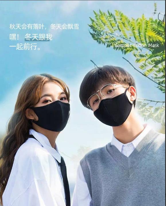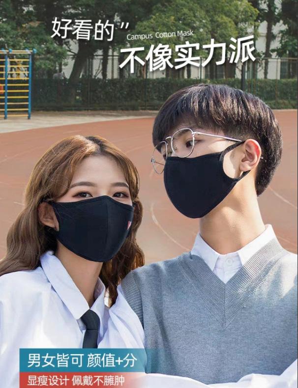 Mascarilla de algodón puro unisex negra de dos capas transpirable a prueba de viento mascarilla de algodón puro frío polvo punto venta al por mayor