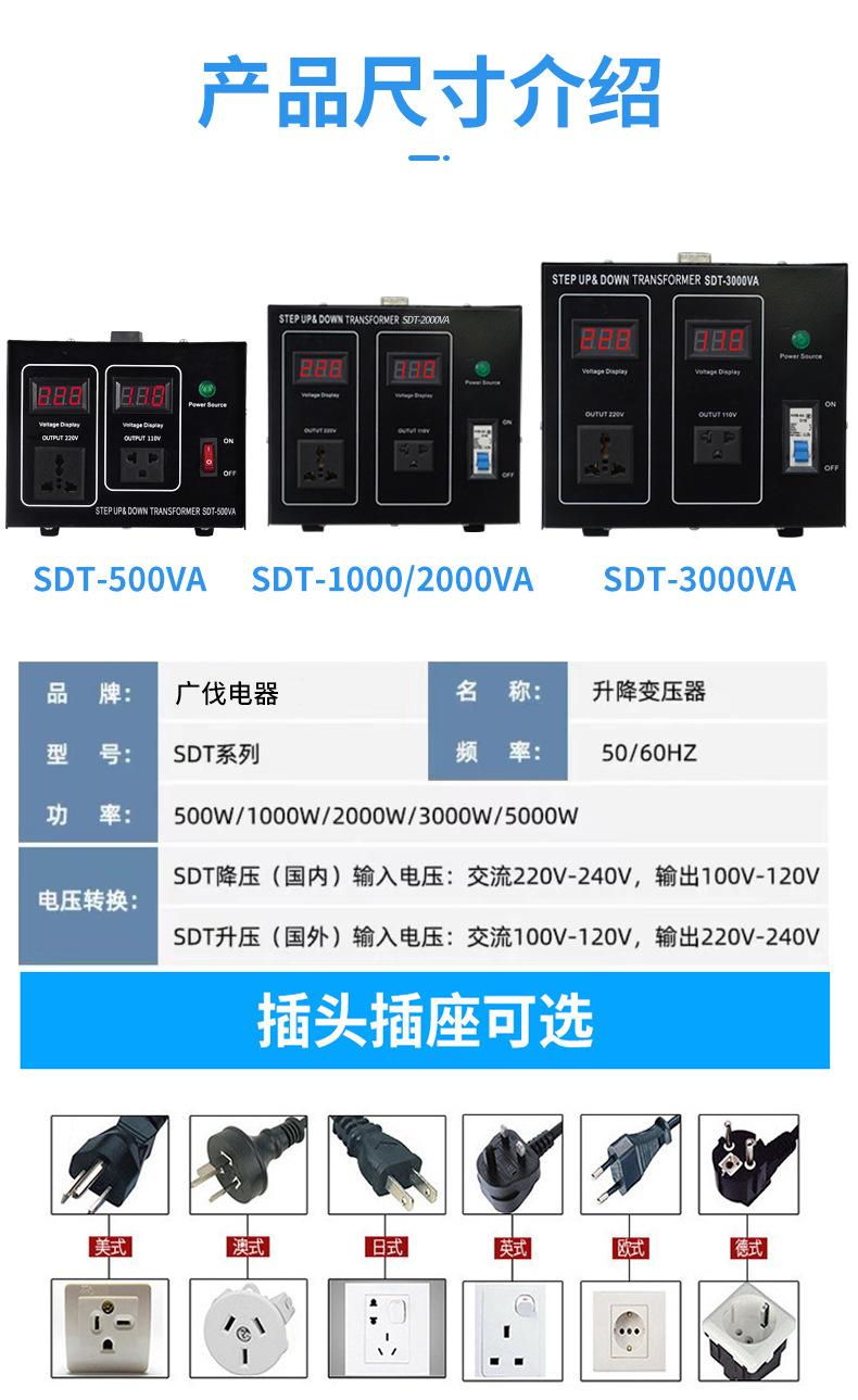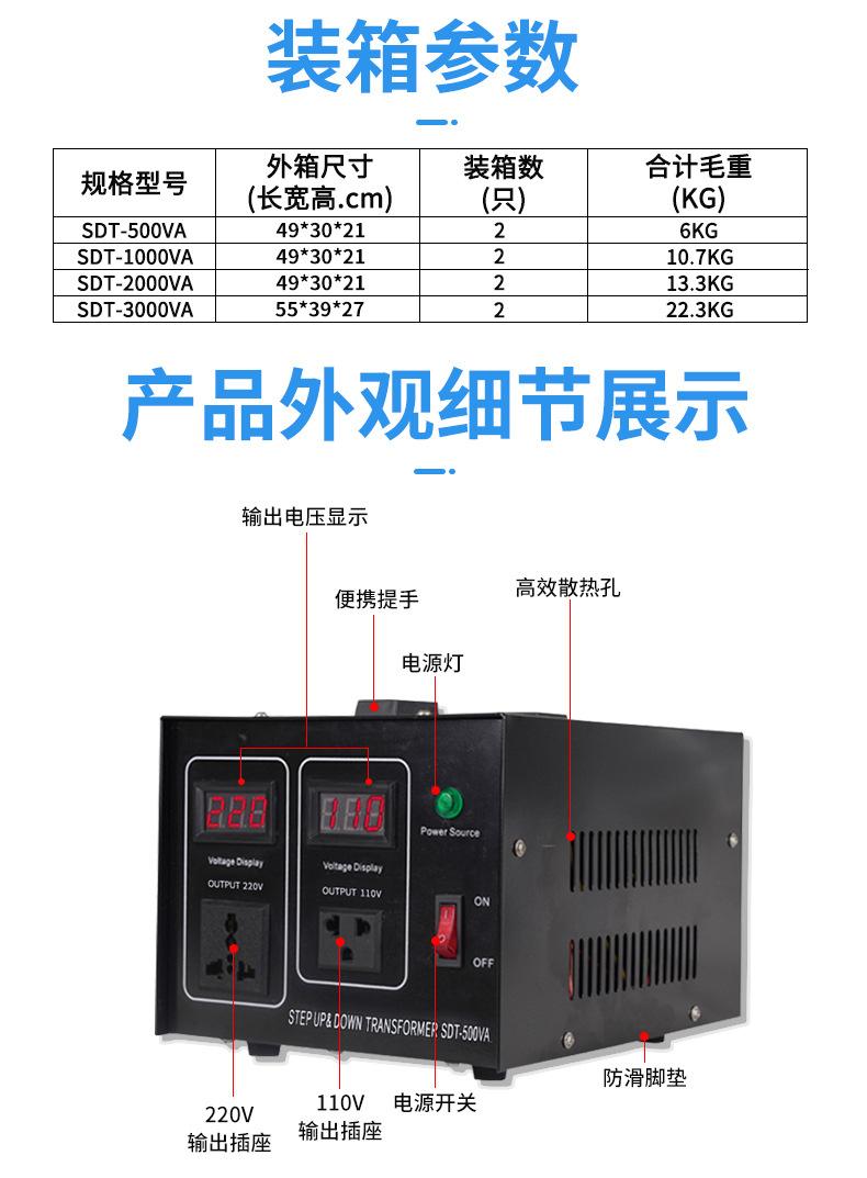 Transformador de elevación SDT de 220 V a 110 V, convertidor de voltaje de Amazon, exportación, comercio exterior.