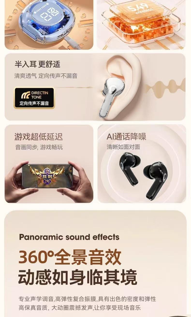 Auriculares digitales transparentes AIR39 de larga duración, inalámbricos, Bluetooth, deportivos, nuevos, intraauriculares, reducción de ruido, sonido de alta calidad.