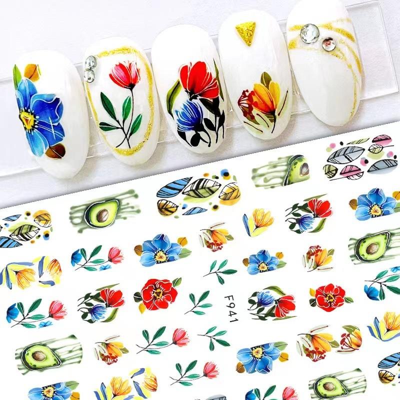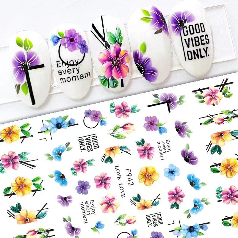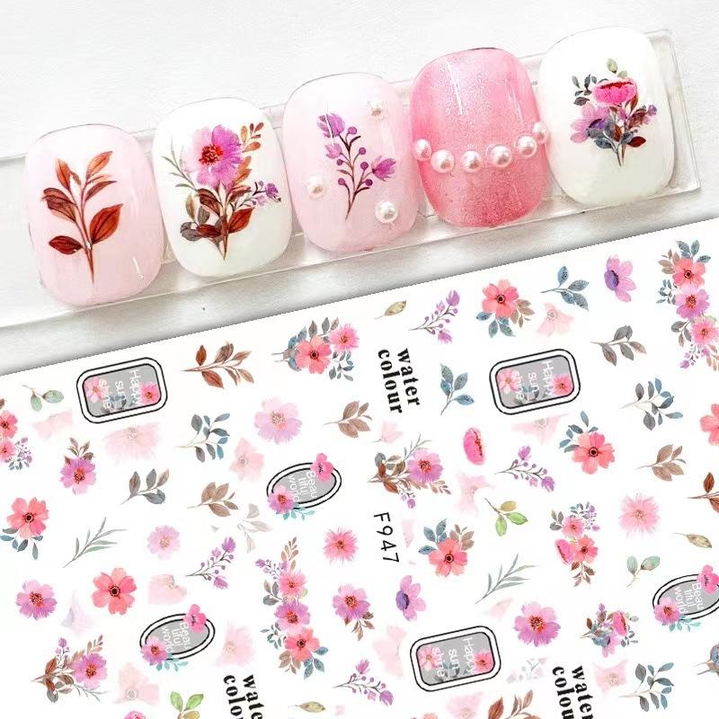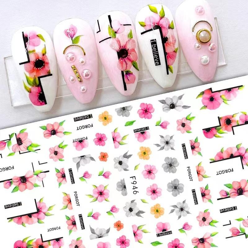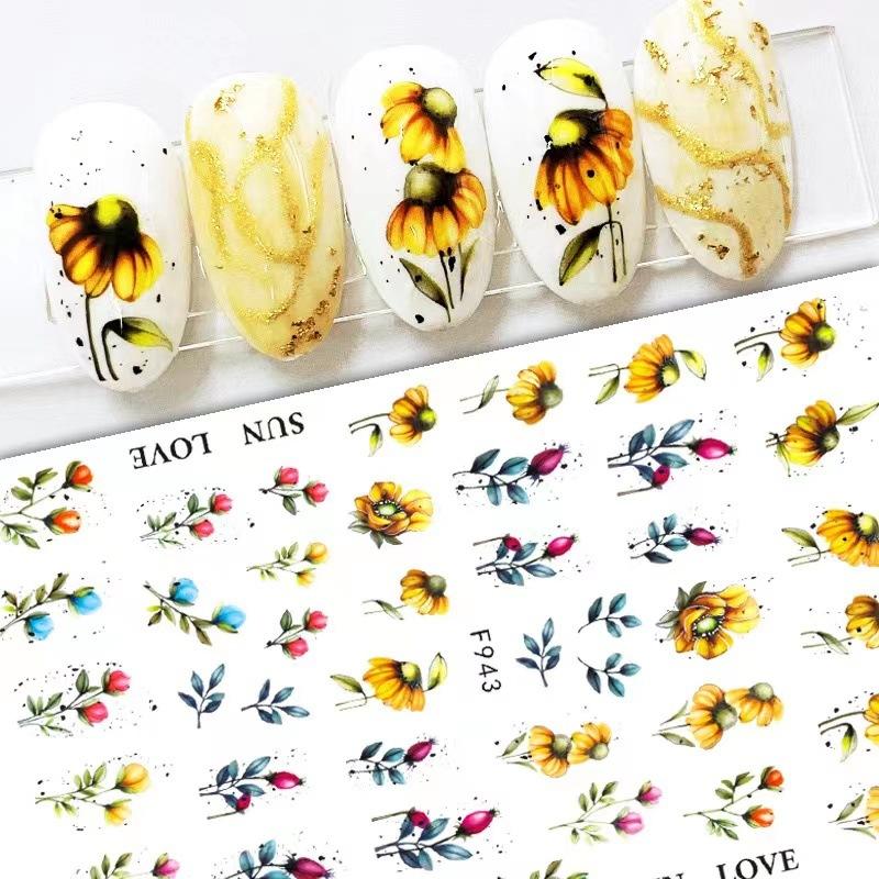 2023 Calcomanías para Arte de Uñas Nueva Primavera y Verano Elegantes Flores Frescas Trébol de Cuatro Hojas F940-949 Floral Pequeño Empaque Independiente