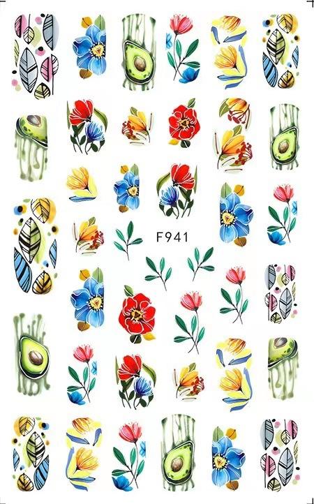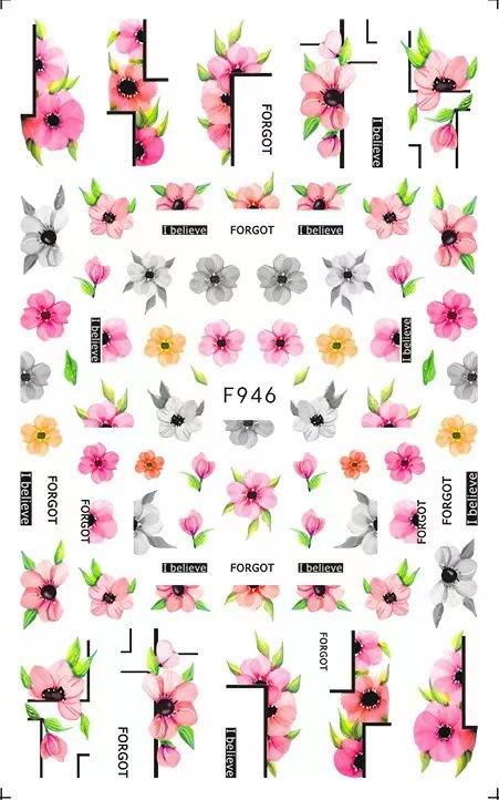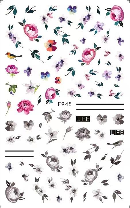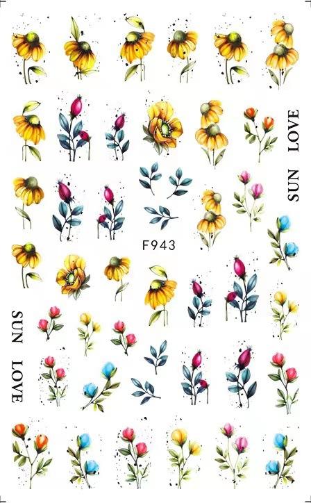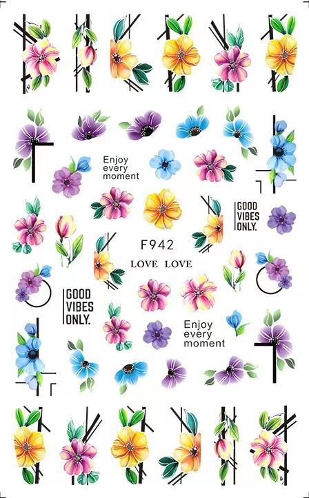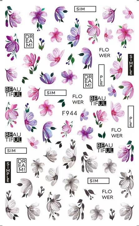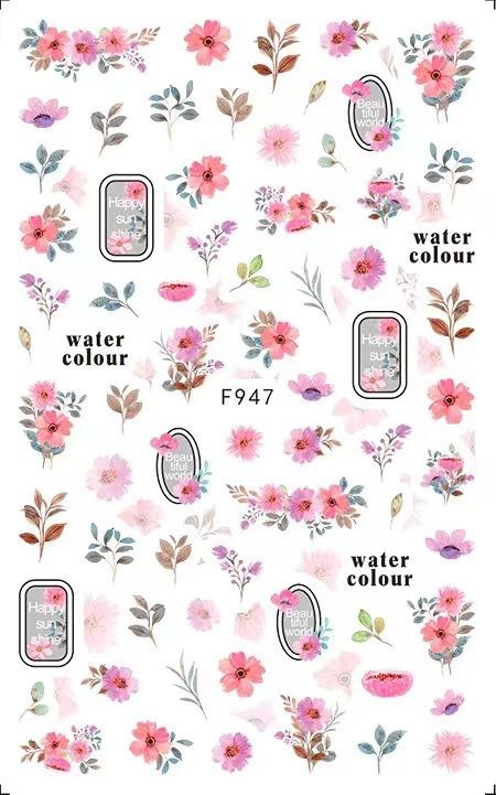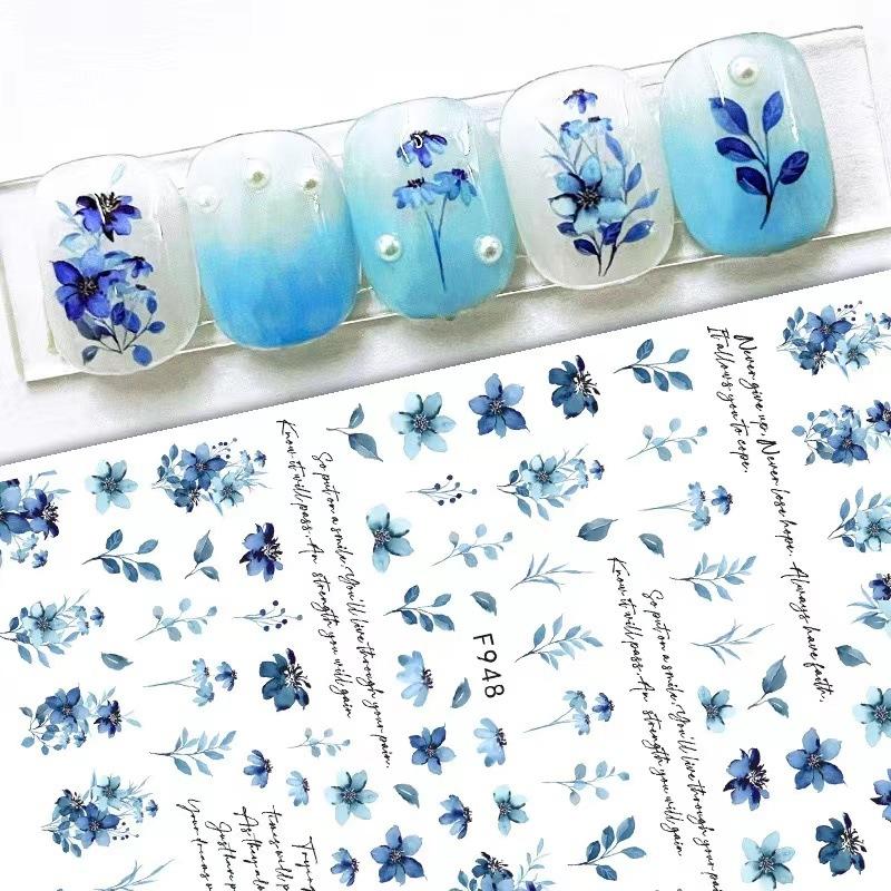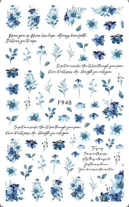 2023 Calcomanías para Arte de Uñas Nueva Primavera y Verano Elegantes Flores Frescas Trébol de Cuatro Hojas F940-949 Floral Pequeño Empaque Independiente