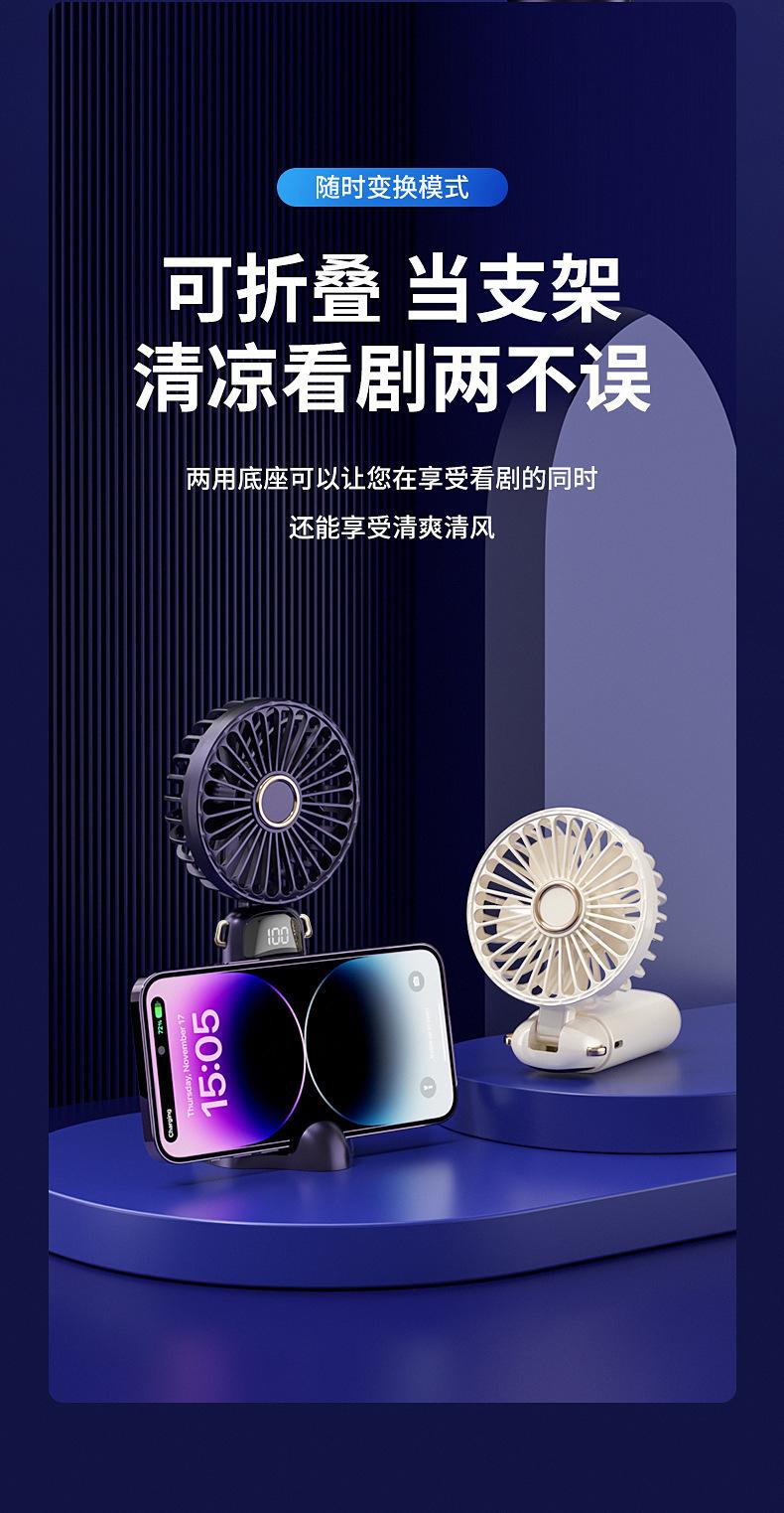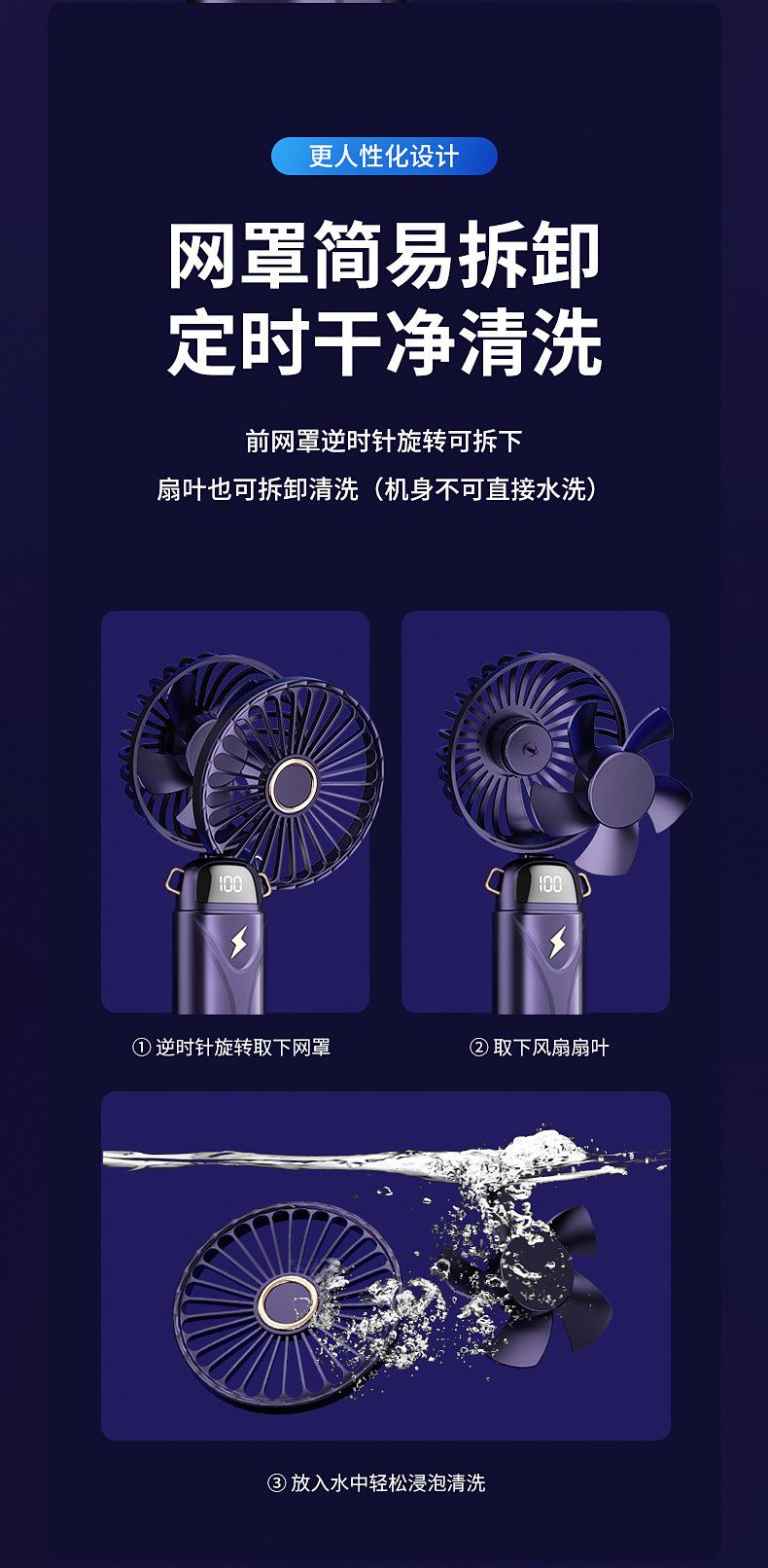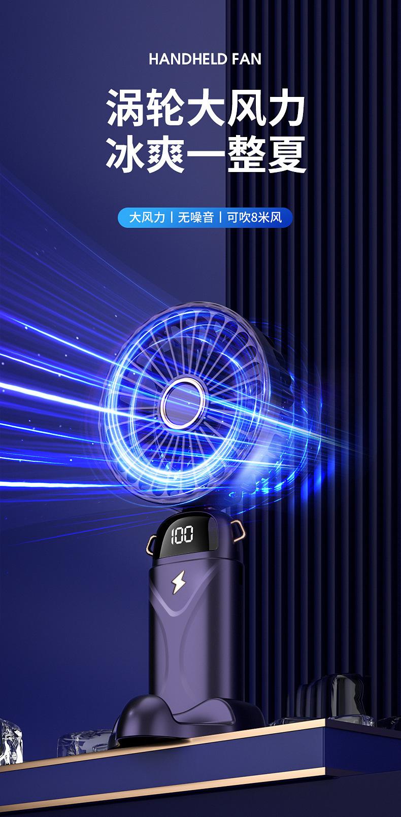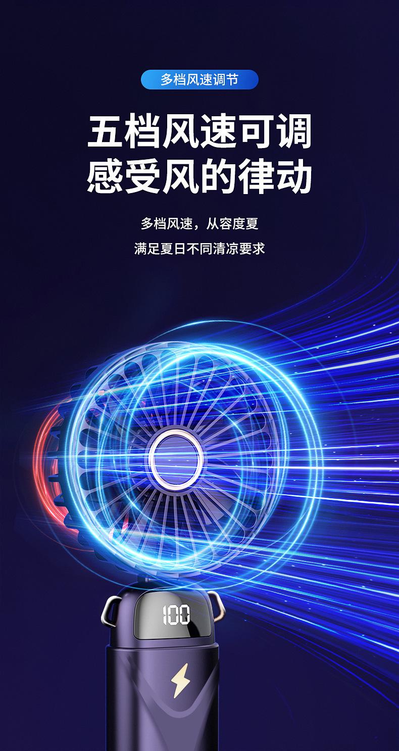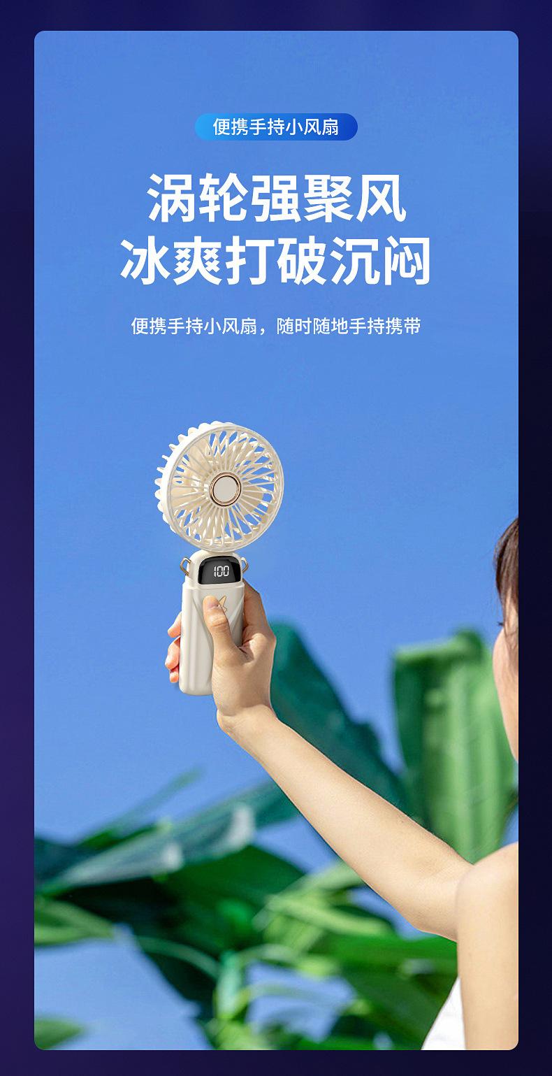 Nuevo ventilador pequeño de mano con pantalla digital, plegable, de escritorio, mini, portátil, para exteriores, silencioso, con carga USB, para colgar en el cuello
