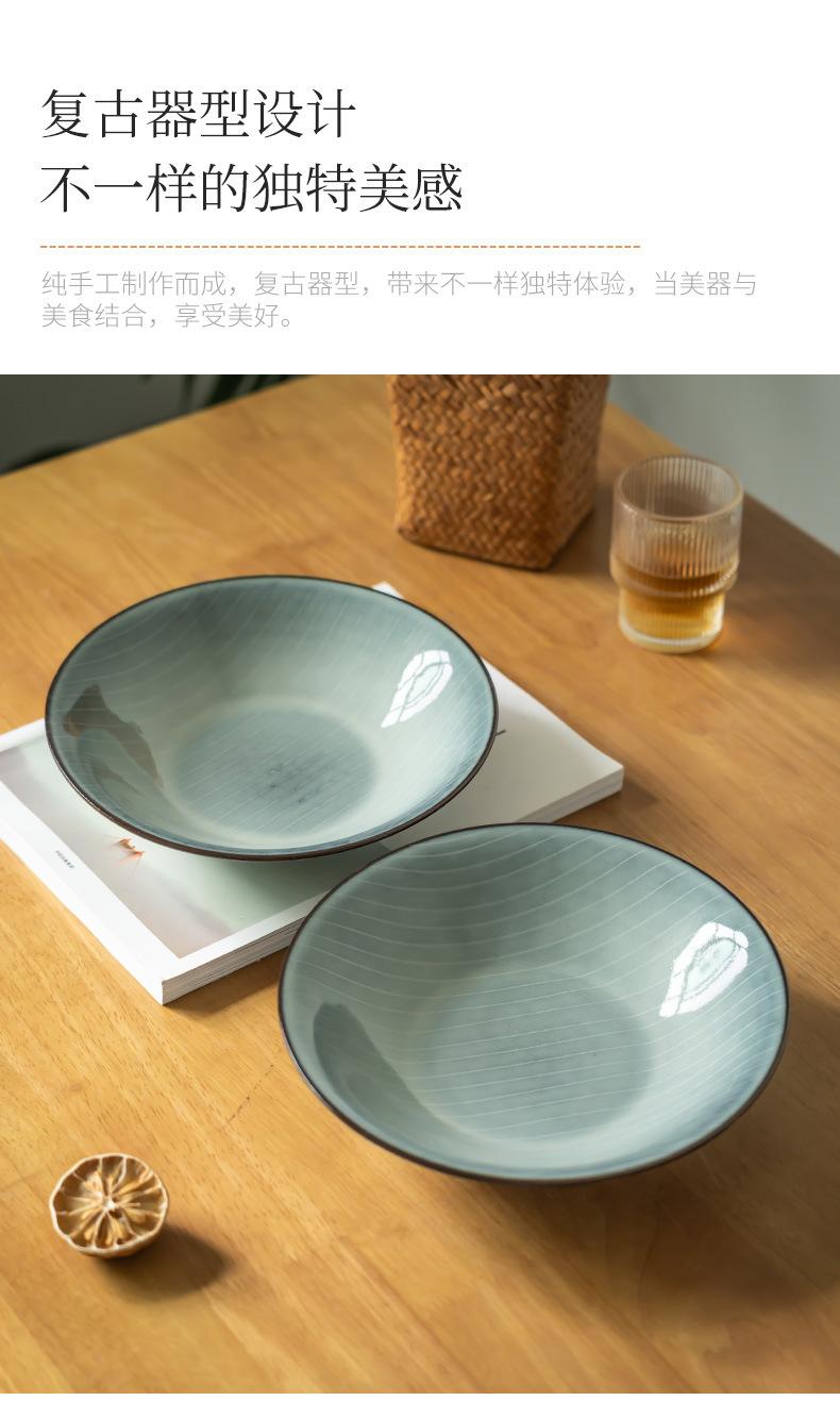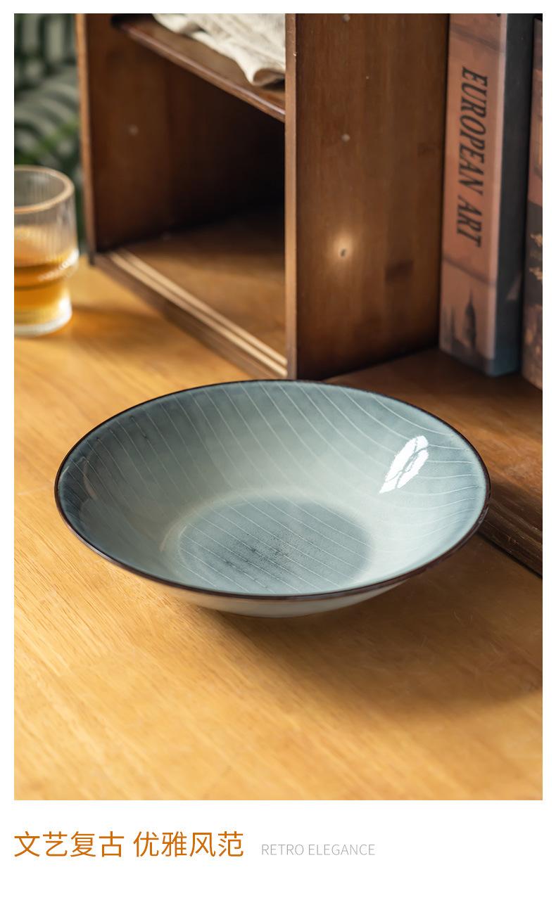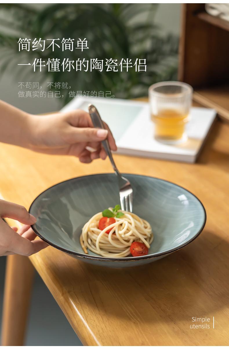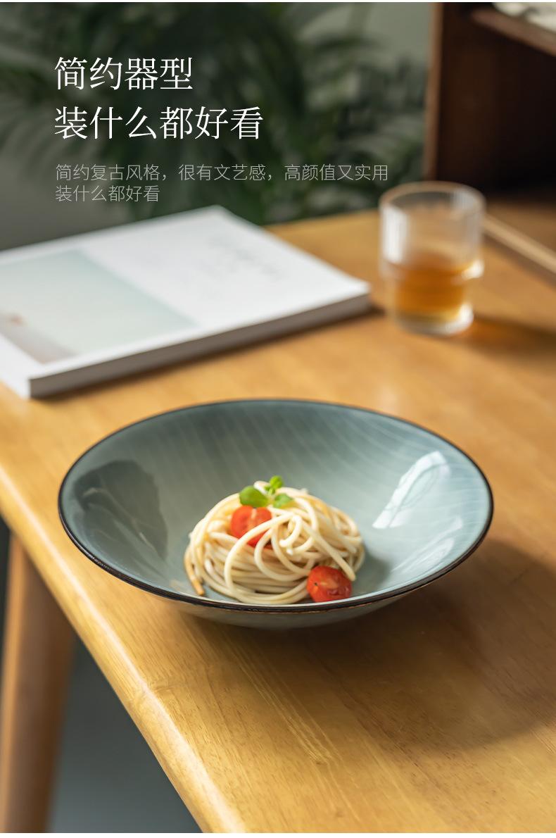 Cuenco abierto de cerámica con líneas blancas y grises, estilo retro, grande, para verduras, estilo occidental, para ensalada de frutas