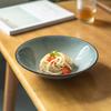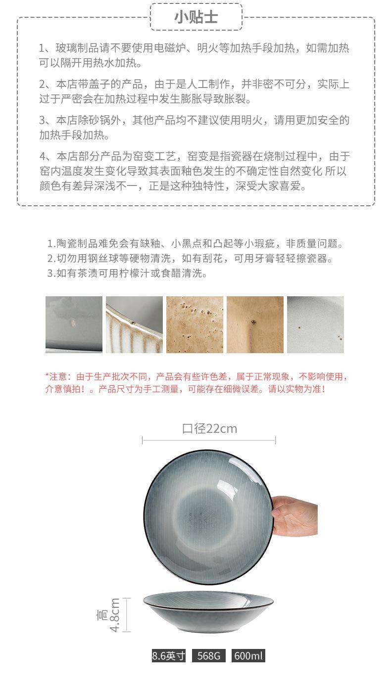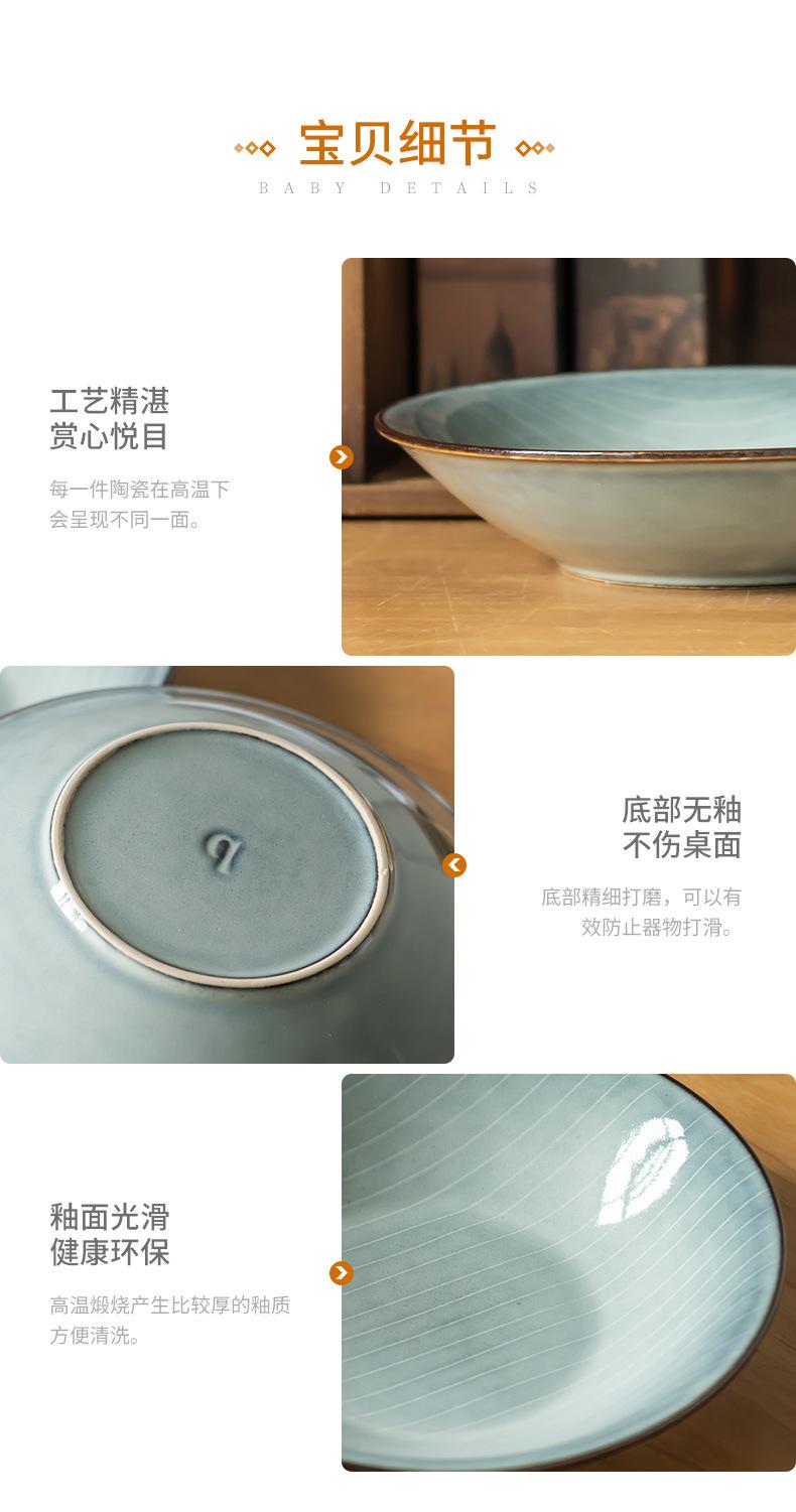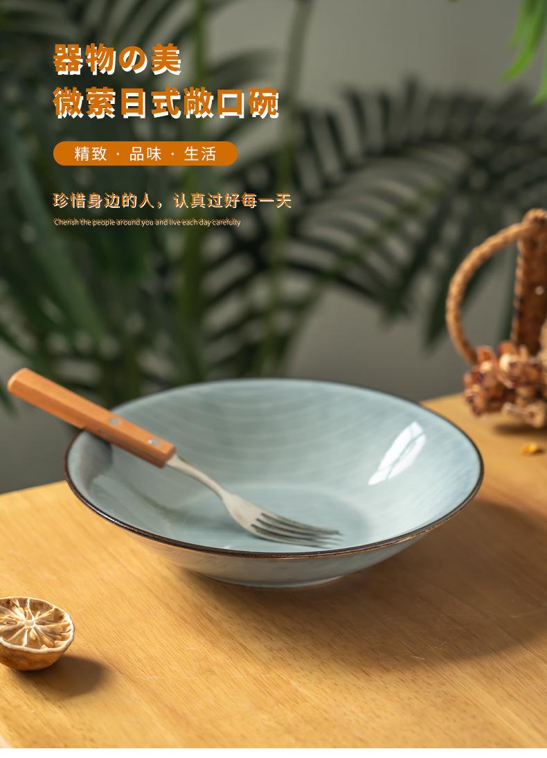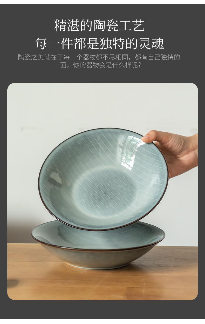 Cuenco abierto de cerámica con líneas blancas y grises, estilo retro, grande, para verduras, estilo occidental, para ensalada de frutas