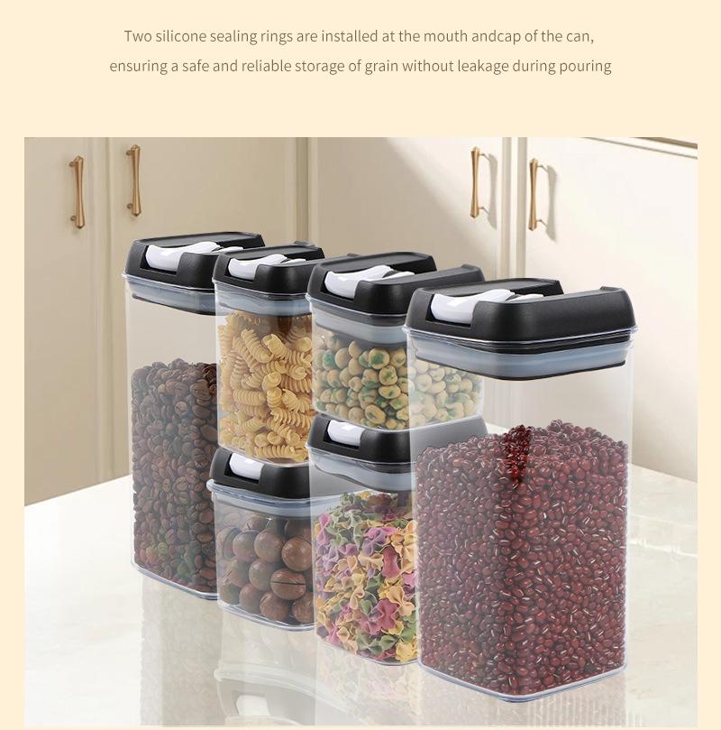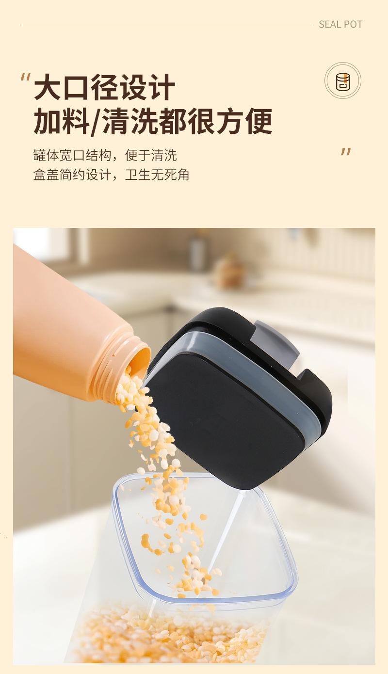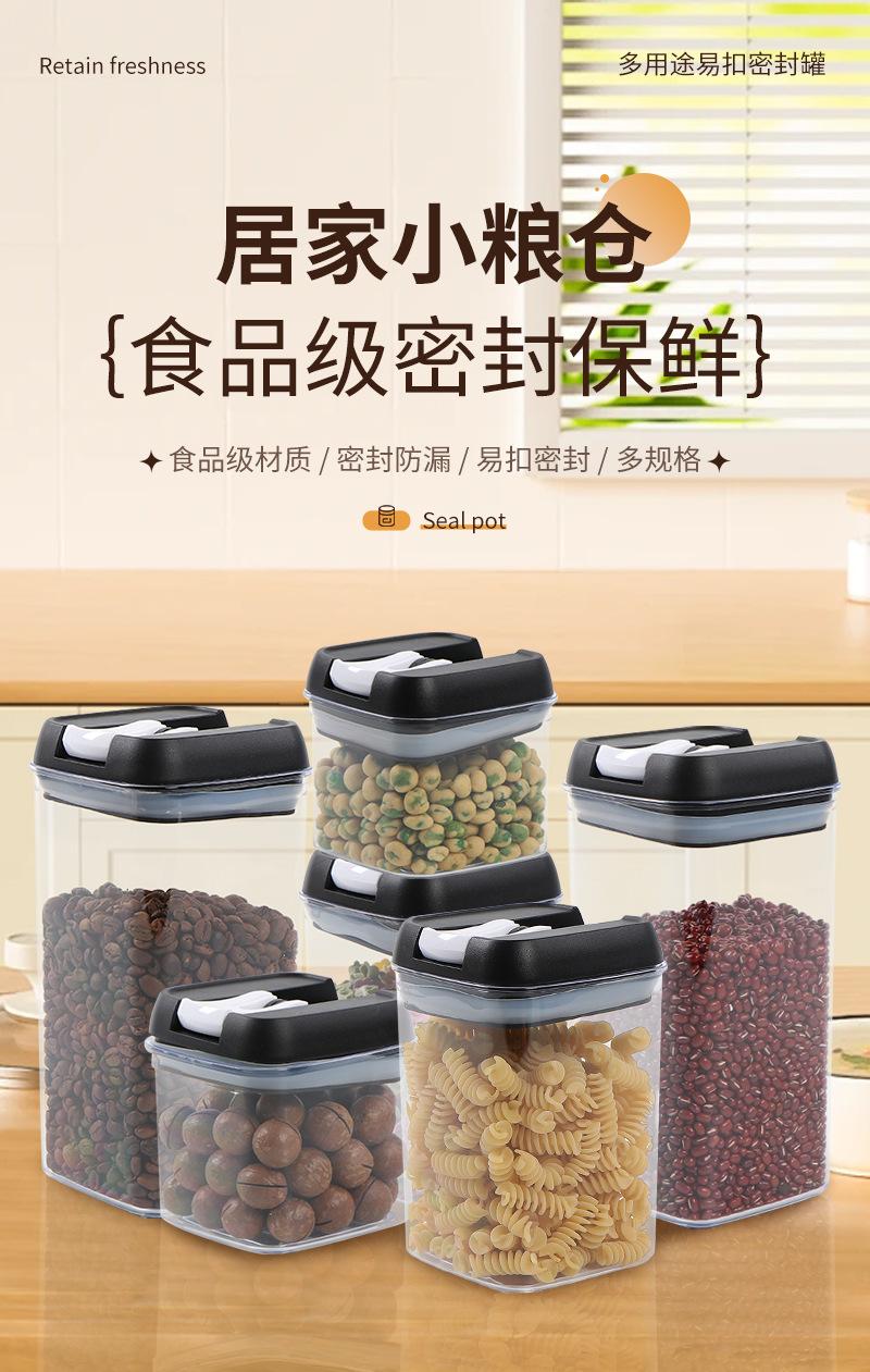 Frasco de plástico sellado de grado alimenticio, grueso, para almacenar granos de cocina, transparente, a prueba de humedad y polvo.