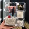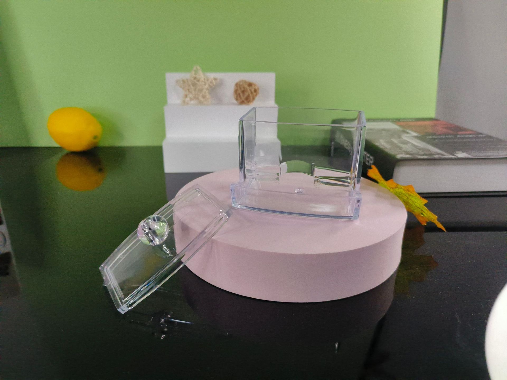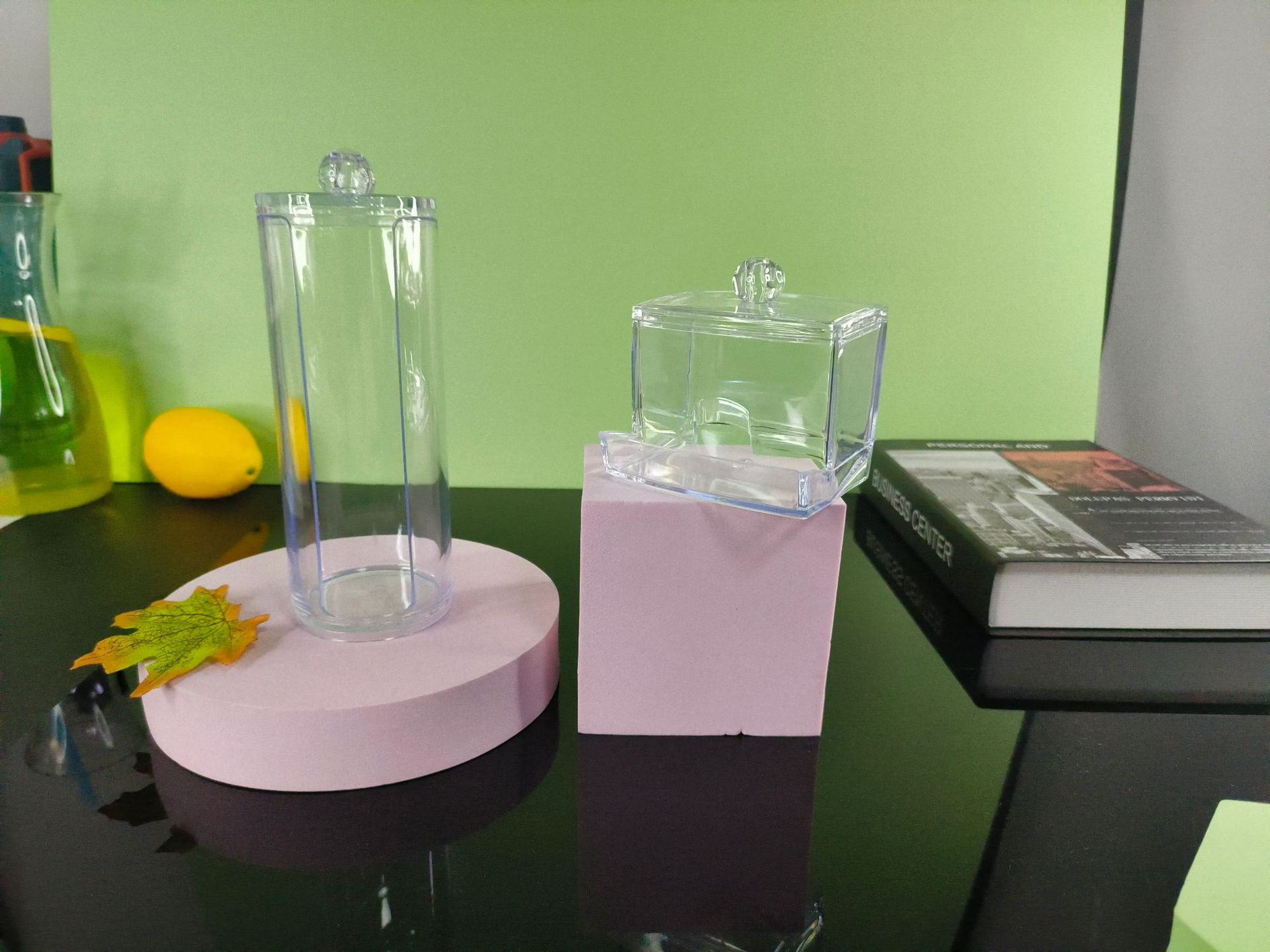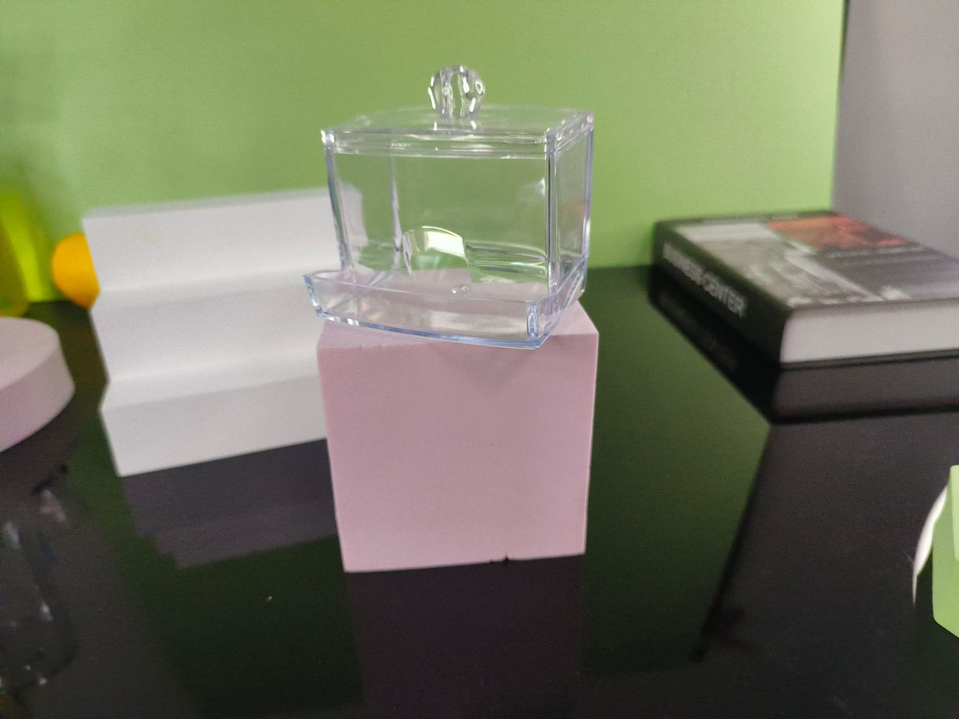 Caja de almacenamiento cuadrada para hisopos de algodón de limpieza de alta capacidad, dos en uno, para cosméticos de escritorio, transparente