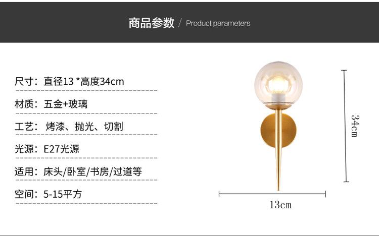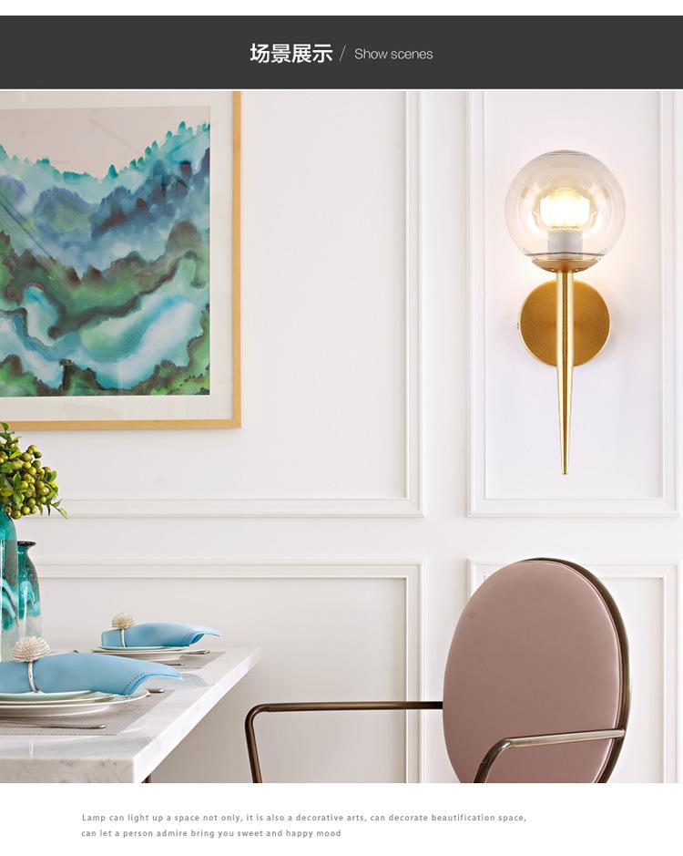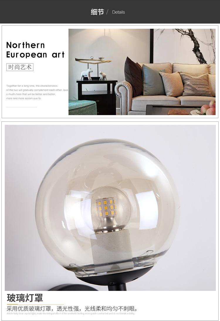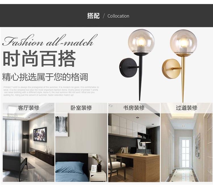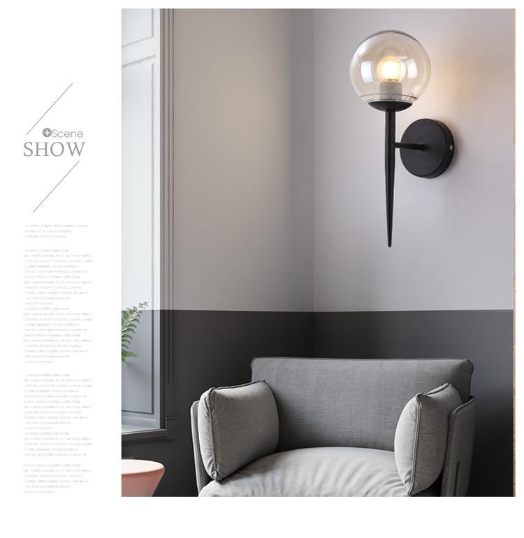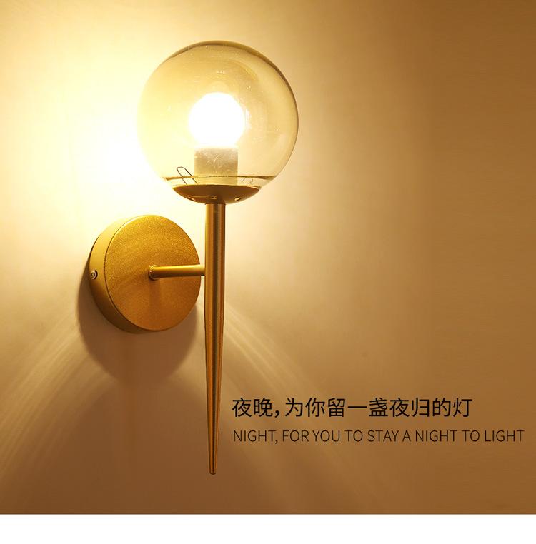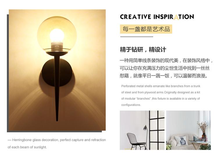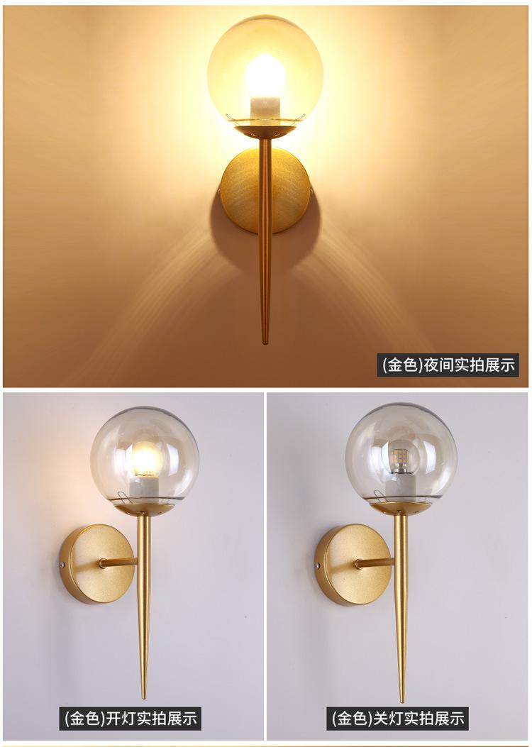 Venta Caliente Transfronteriza Lámpara de Pared Interior Moderna Simple Lámpara de Noche Personalizada para Dormitorio Estudio Lámpara de Pared Redonda de Hierro y Vidrio