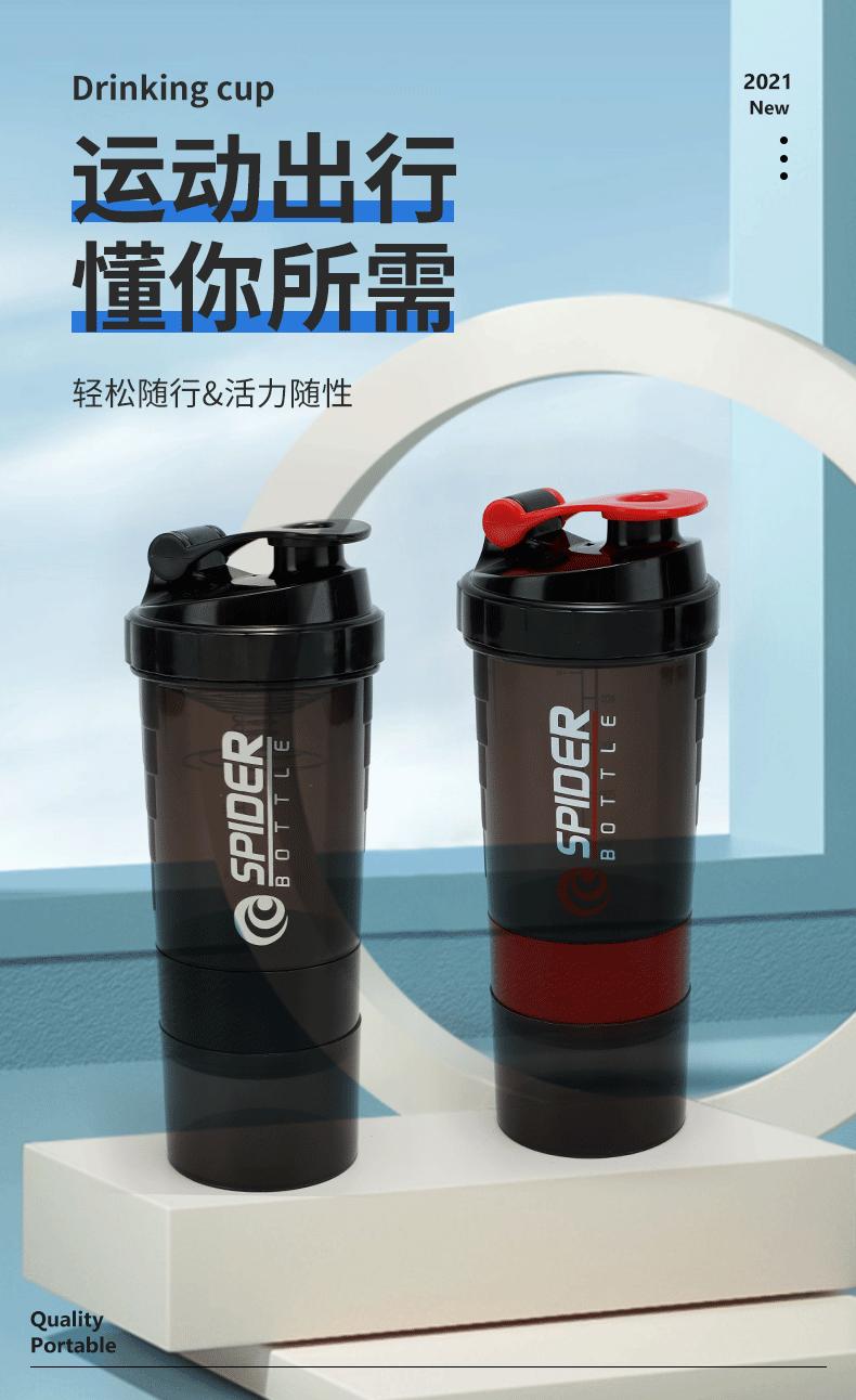 Con caja de polvo con caja de medicamentos Vaso de batido de tres capas Vaso de batido de proteína en polvo Vaso para batido deportivo de fitness Vaso para mezclar batido Vaso de agua de moda