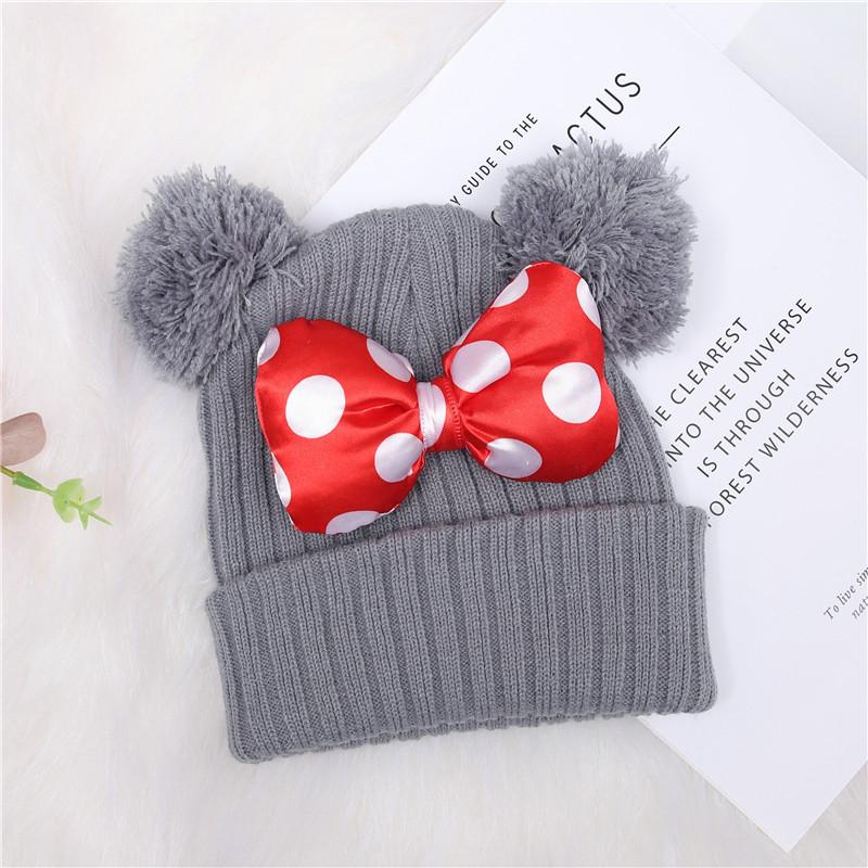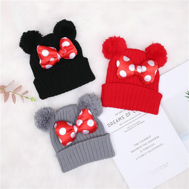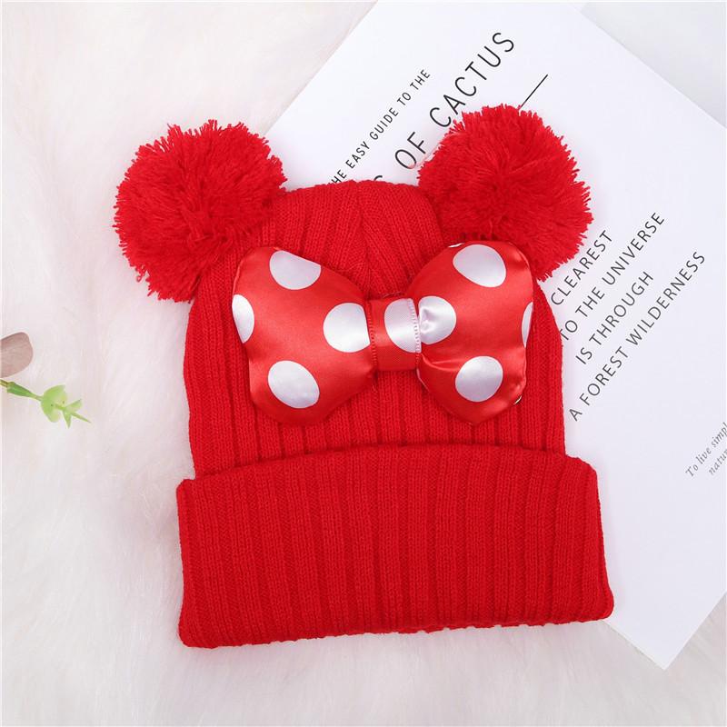 Gorro de punto para niños, gorro de lana con lazo tridimensional cálido de color sólido, gorro de otoño e invierno para bebé, venta al por mayor