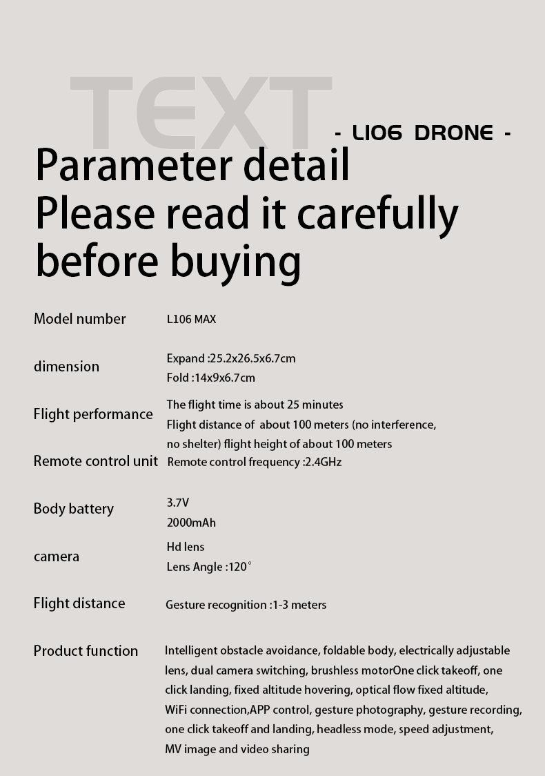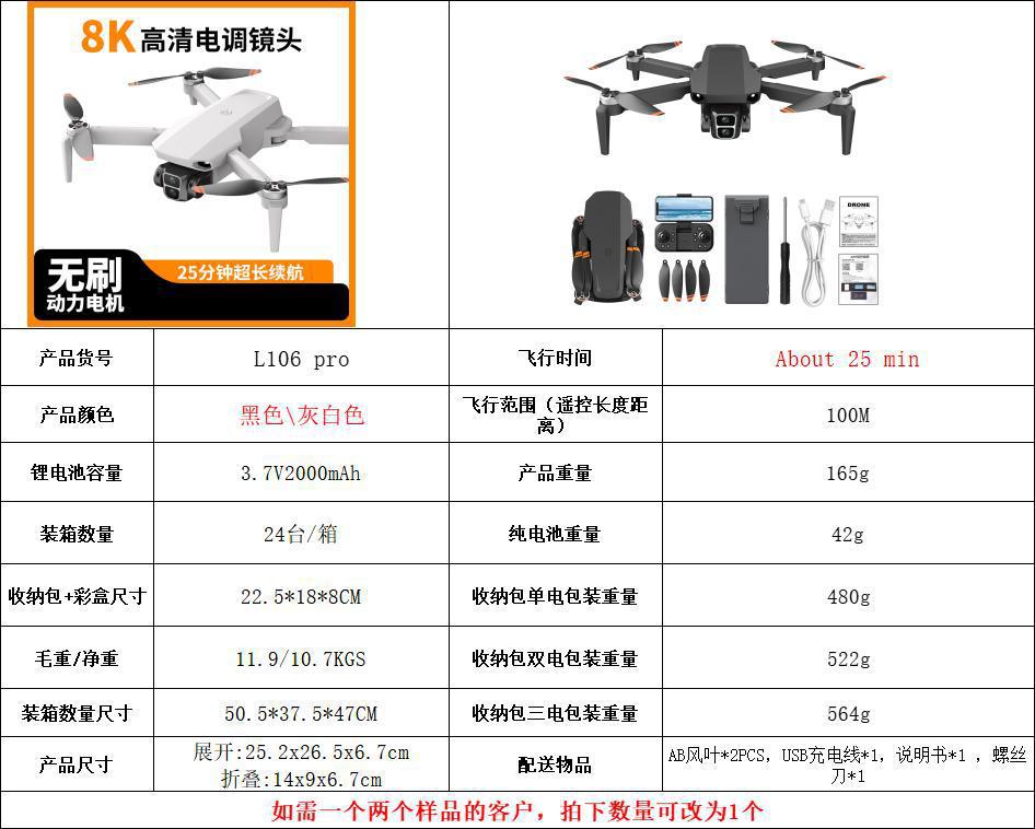 Black l106 pro storage bag + color box, White l106 pro storage bag + color box, Black l106 max - infrared obst...