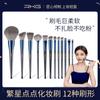 12 PCs silver wooden handle makeup brushes + Brush Bag