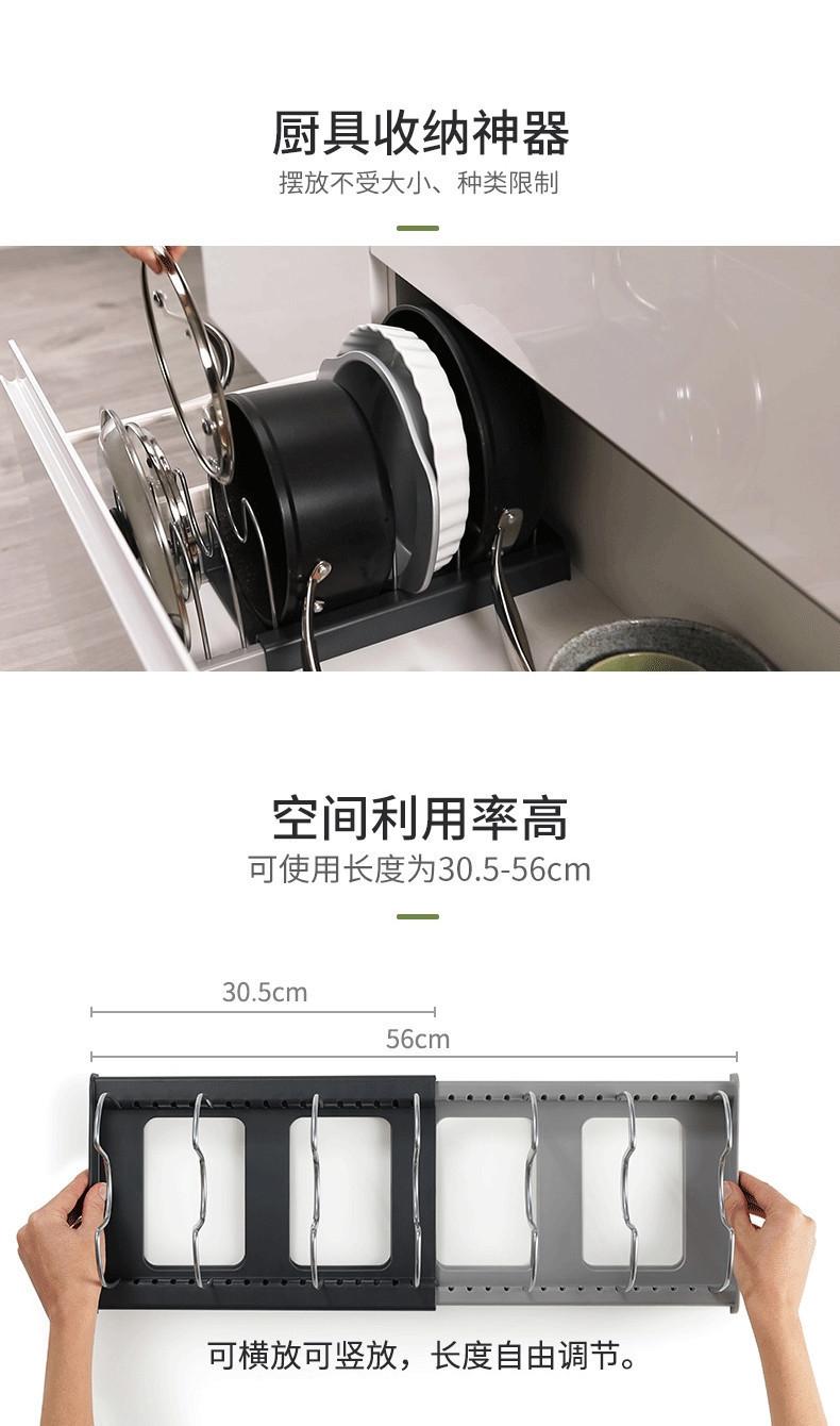 Estante de almacenamiento para tapas de ollas transfronterizo, estante de almacenamiento de cocina, estante retráctil para guardar utensilios de cocina, estante para guardar platos de cocina