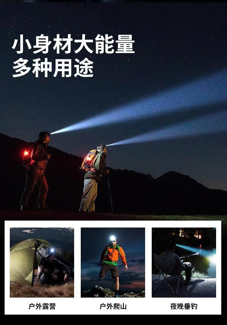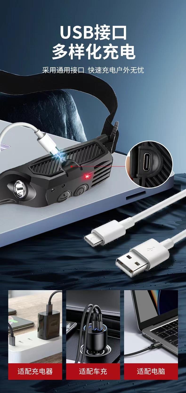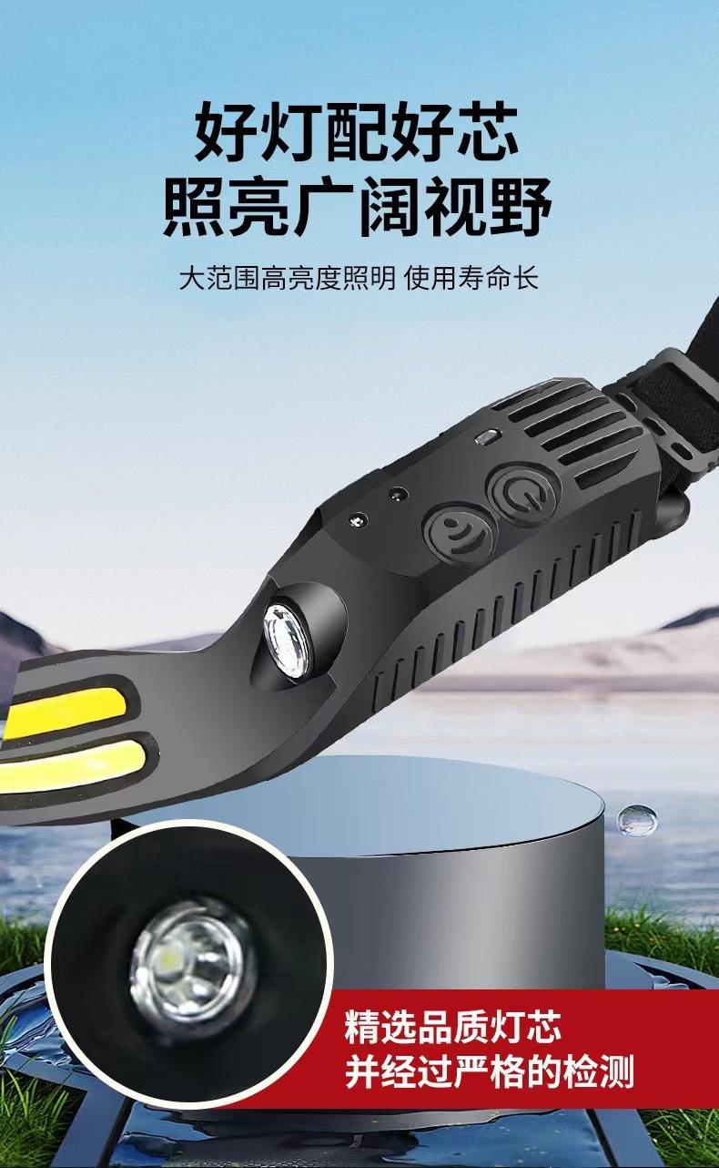 Faro LED de inducción de alto brillo para pesca nocturna al aire libre, carga tipo C, luz fuerte, brillante, para correr de noche, iluminación COB