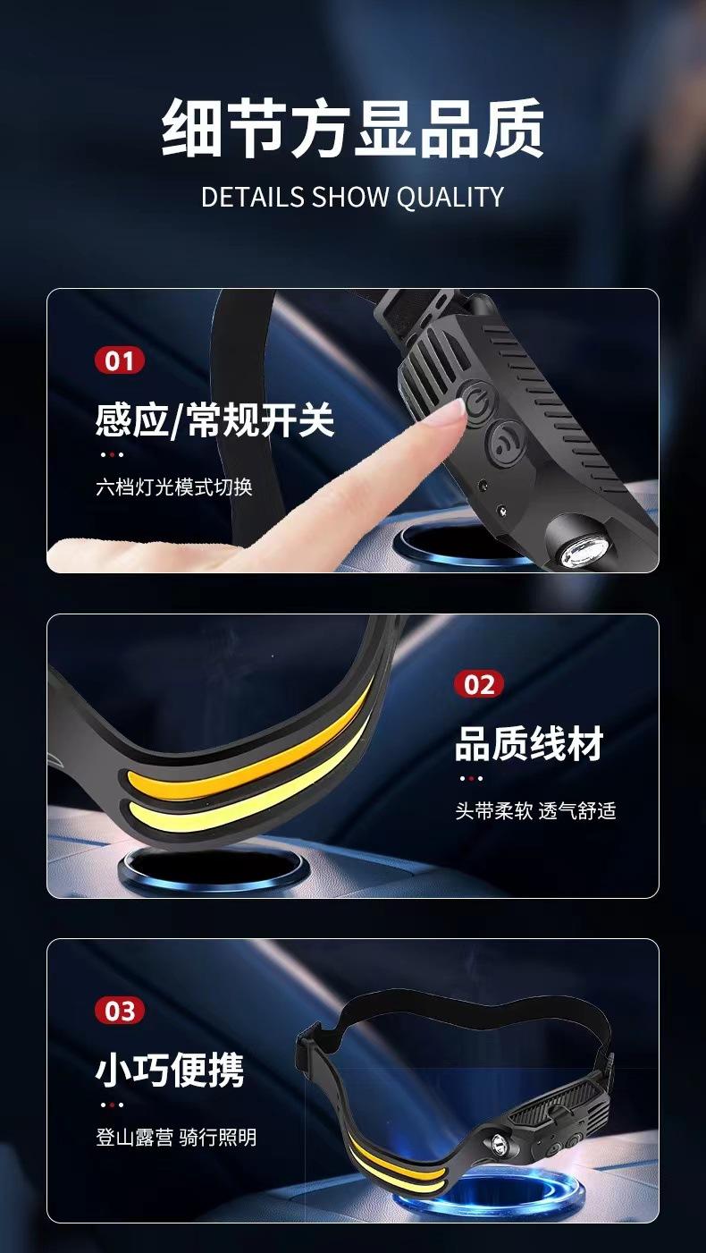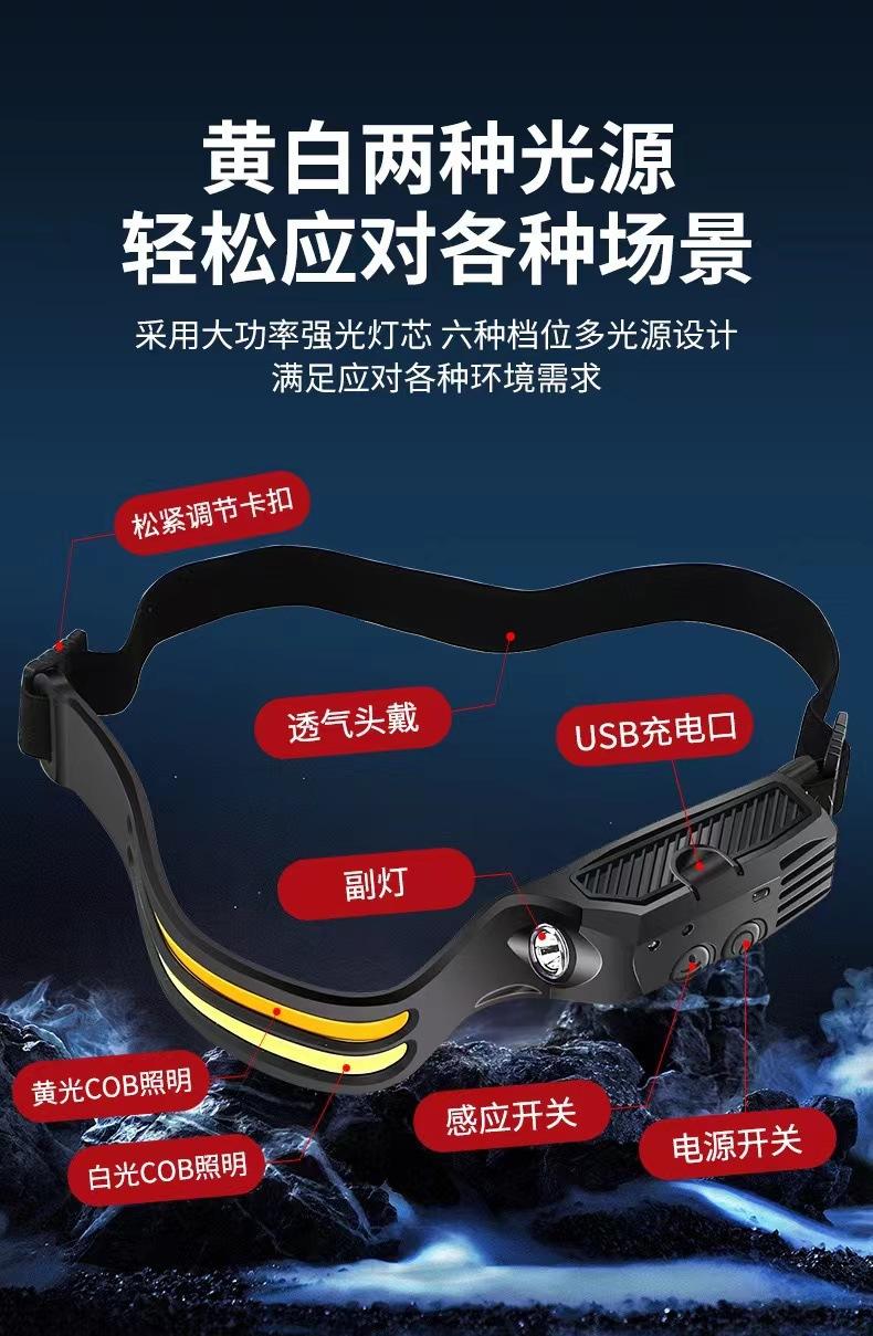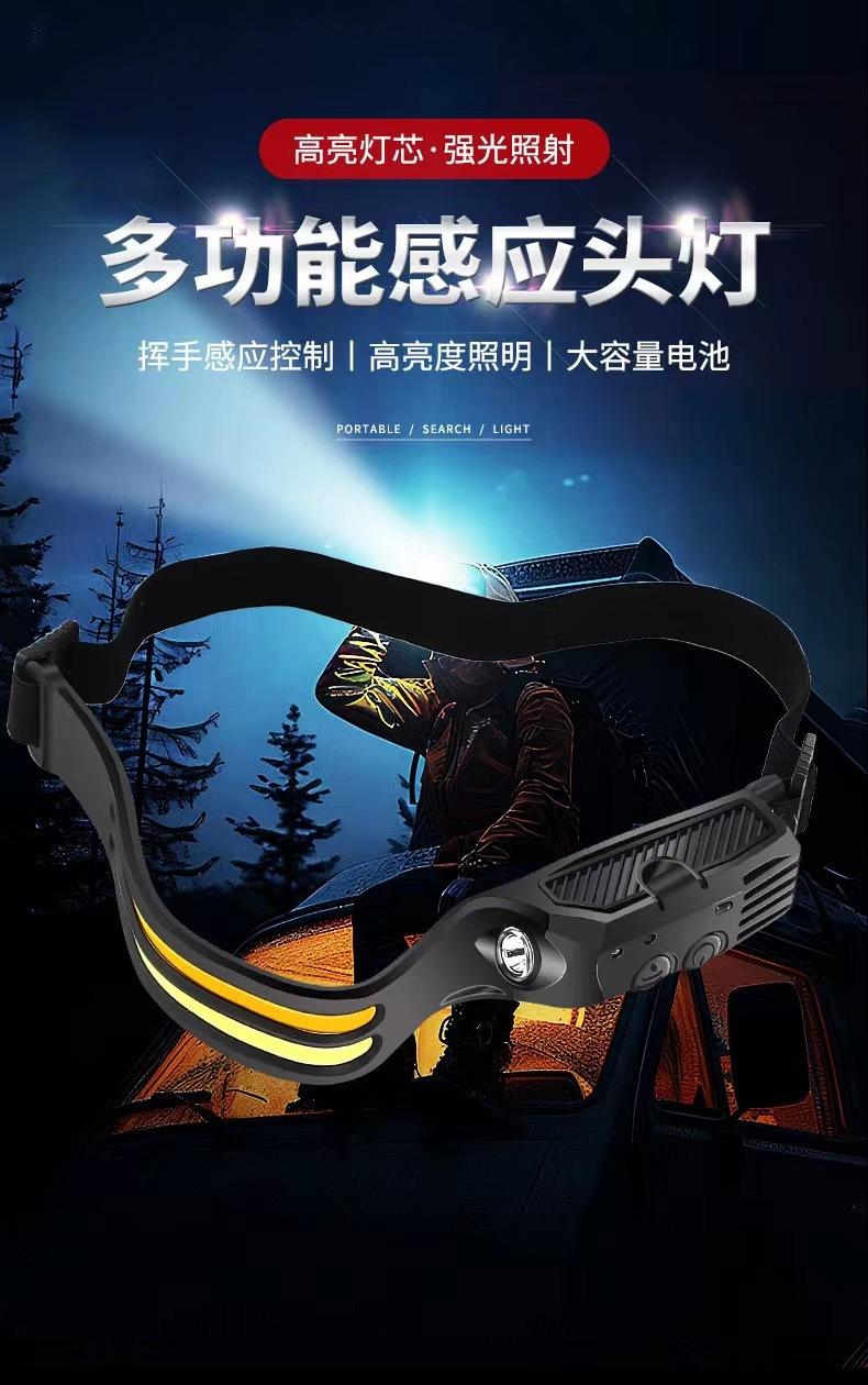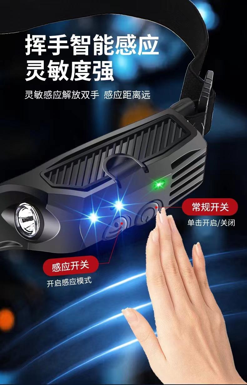 Faro LED de inducción de alto brillo para pesca nocturna al aire libre, carga tipo C, luz fuerte, brillante, para correr de noche, iluminación COB