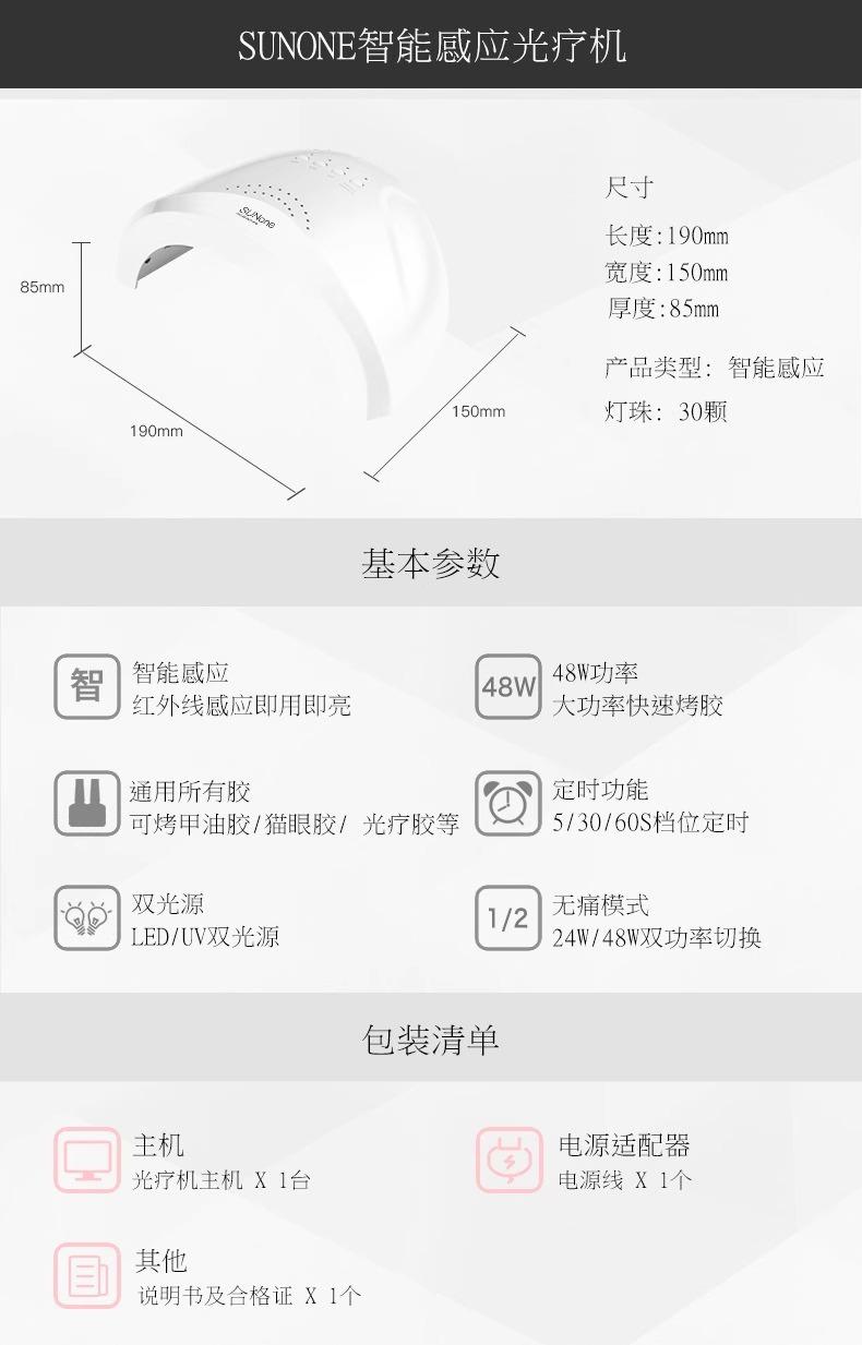 Lámpara de uñas Sunone de 48 W, máquina de fototerapia de secado rápido, profesional, sin manchas negras, para secado de manos, lámpara LED para hornear en casa.