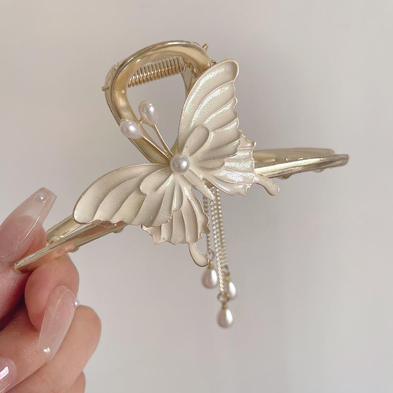 Pinza para el cabello de estilo chino con forma de mariposa colorida, accesorio para la parte posterior de la cabeza, pinza grande de tiburón, tocado, horquilla de diseño de estilo antiguo de tendencia nacional