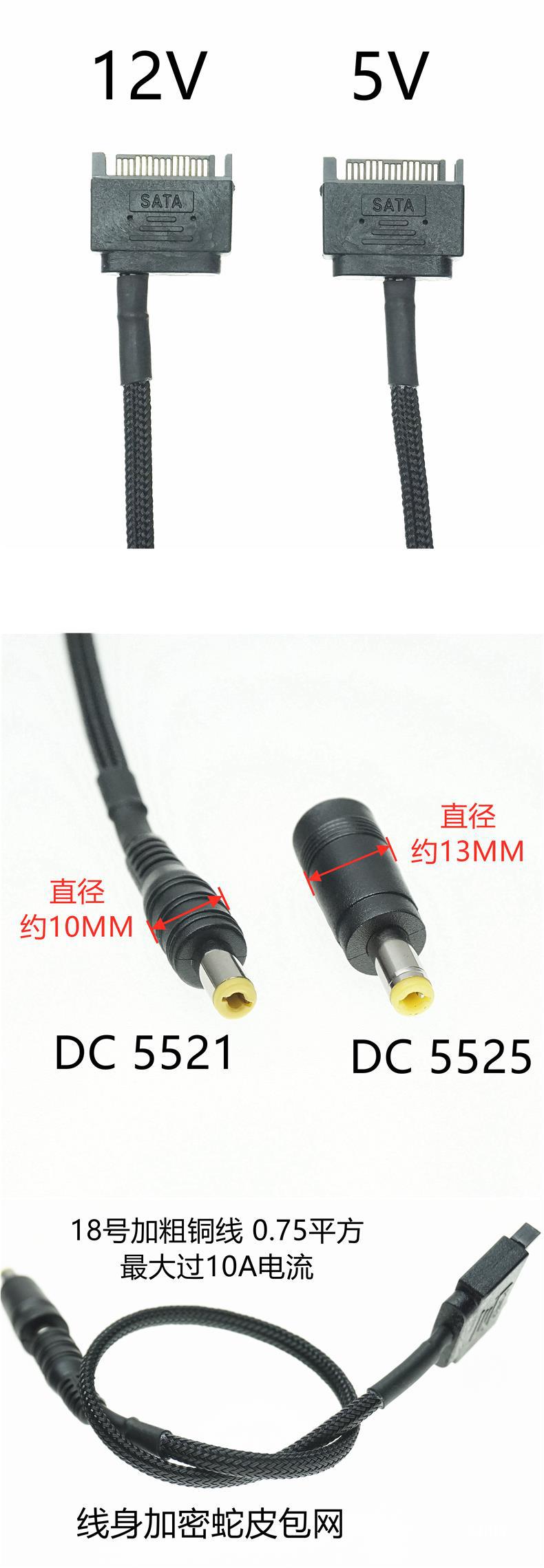 Compra Fuente de alimentación para chasis interfaz grande 4P/SATA a adaptador DC 5525 5V/12V dos voltajes 10A grueso al por mayor en Joom.pro