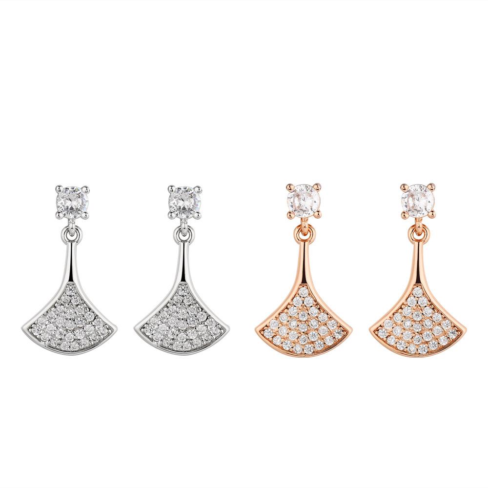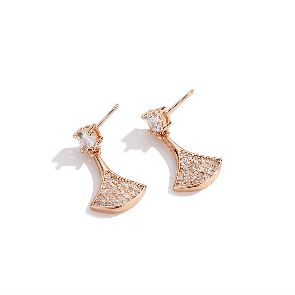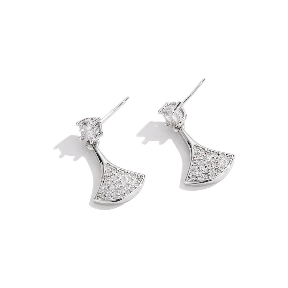 Aretes Seiko Falda Pequeña Diamantes Completos para Mujer, Lujo Ligero, Modernos, Versátiles, Temperamento, Alta Gama, Aretes Nicho, Aretes, Joyería al Mayoreo