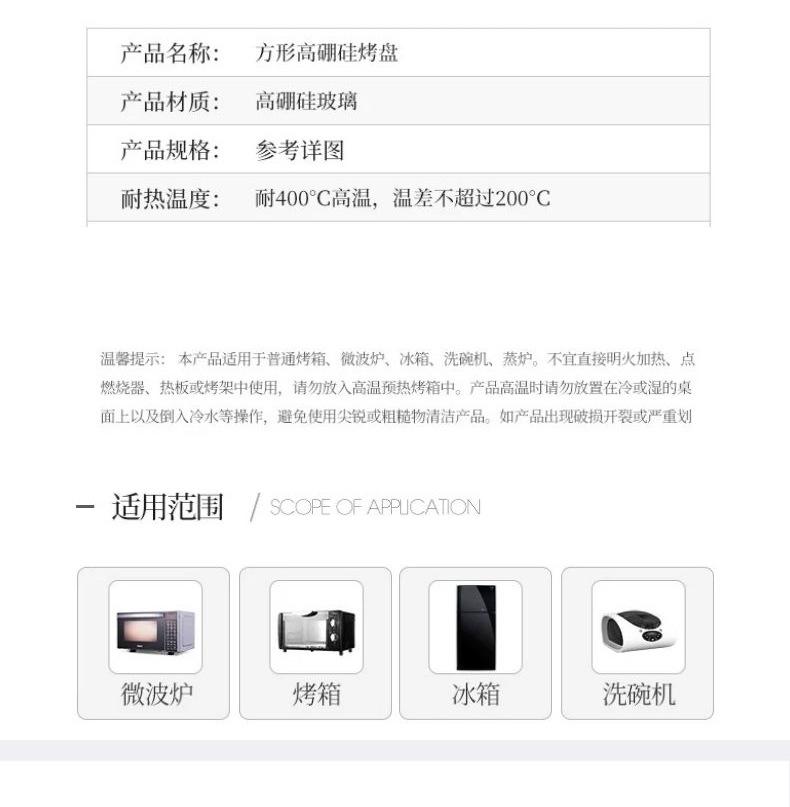 1.1L high temperature resistant square baking tray steaming oven microwave