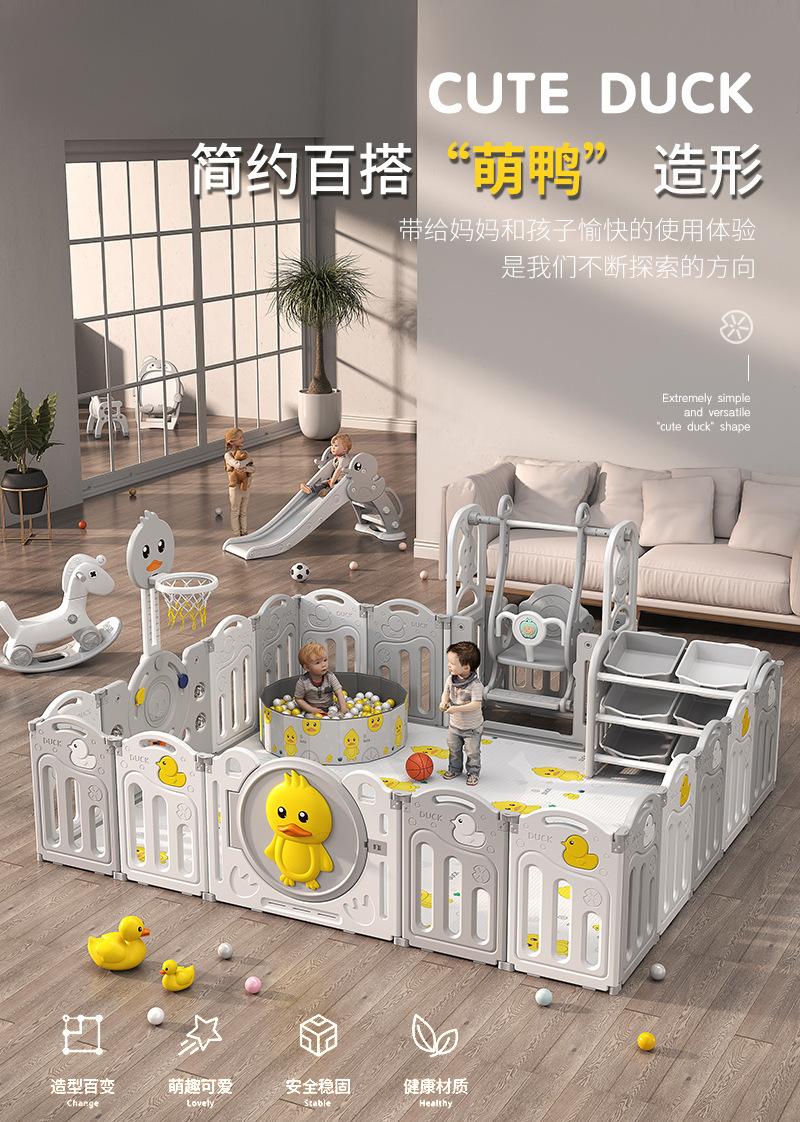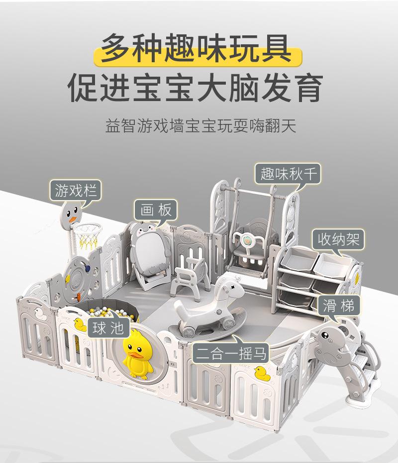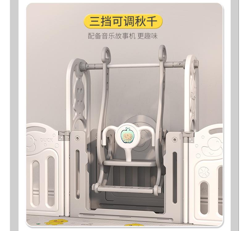 | Parque infantil plegable para interiores, columpio, tobogán, valla para bebés y niños pequeños, tapete para gatear, barandilla |