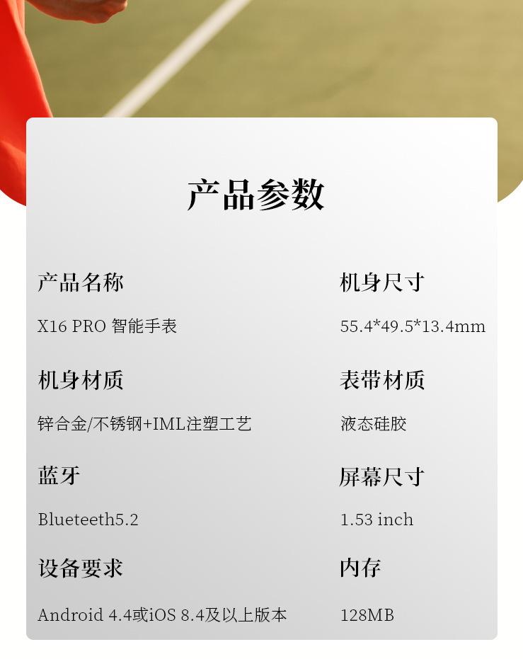 Configuración estándar del X16pro: cabeza + correa de silicona + cargador inalámbrico + manual + caja de color