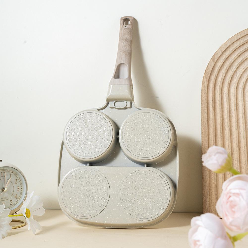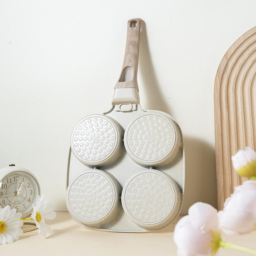 Máquina de desayuno de huevo frito de cuatro agujeros al estilo coreano, olla pequeña para hamburguesas, olla para carne, sartén antiadherente de piedra médica, estufa eléctrica, estufa de gas universal