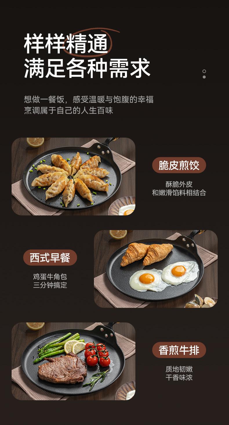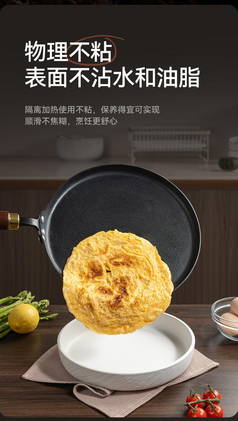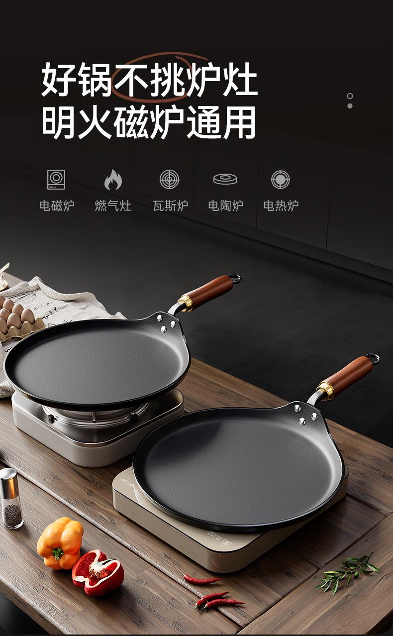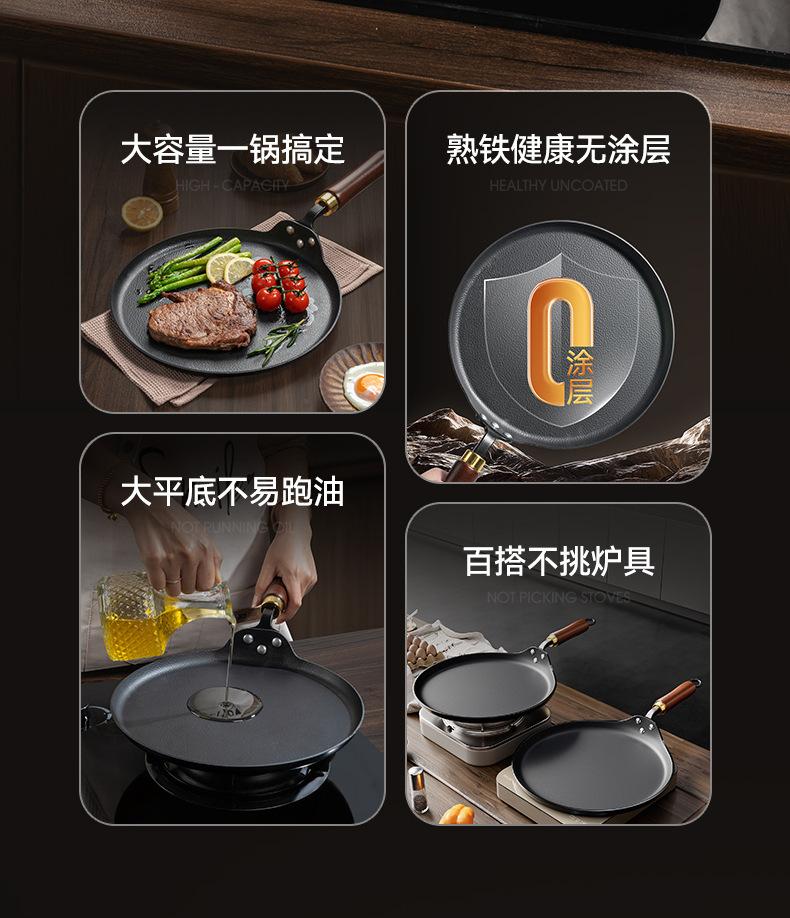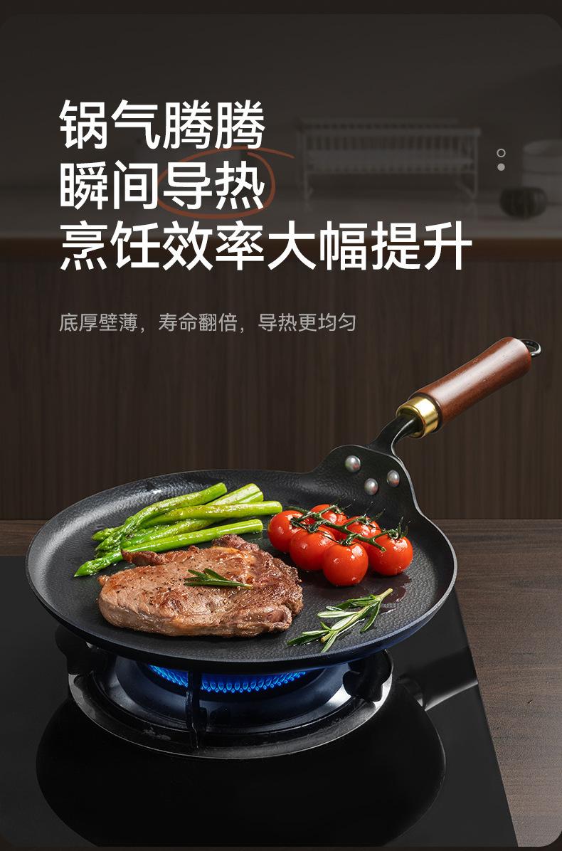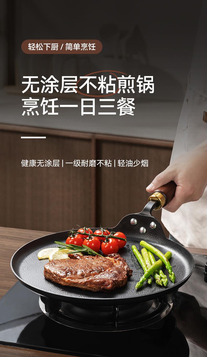 Sartén para carne sin revestimiento, sartén de hierro antigua, sartén para panqueques, sartén antiadherente para cocina de inducción a gas.