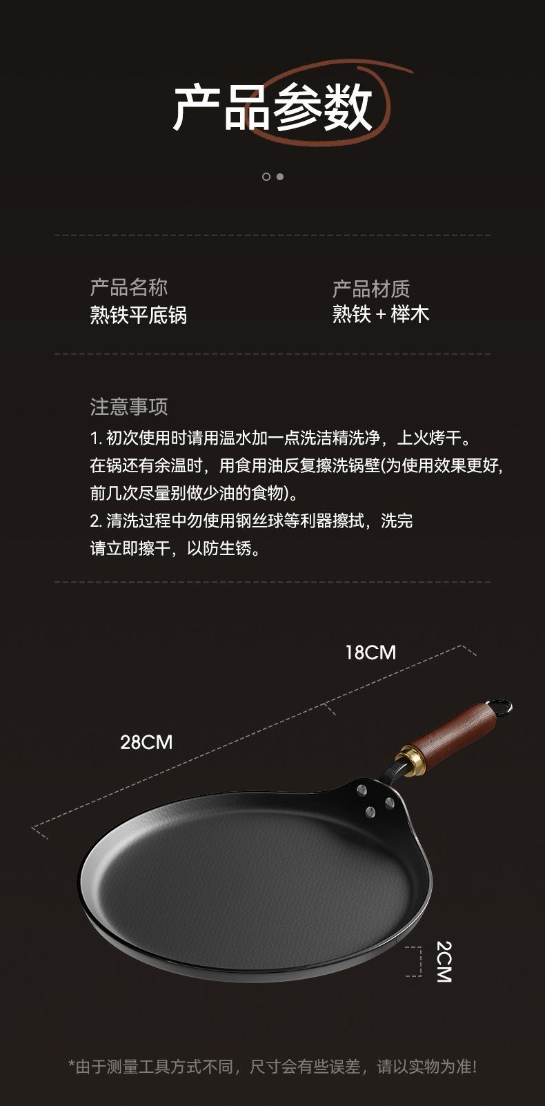 [uncoated fine iron forged] 28cm flat frying pan