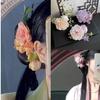 Accesorios para el cabello de novia con diseño de moda de estilo palacio vintage con flores de gota de agua incrustadas en diamantes, elegante tocado Hanfu de estilo frío