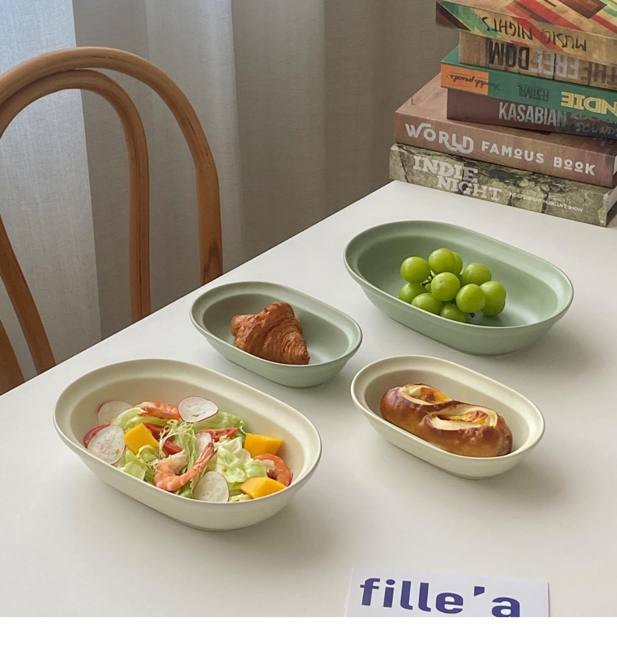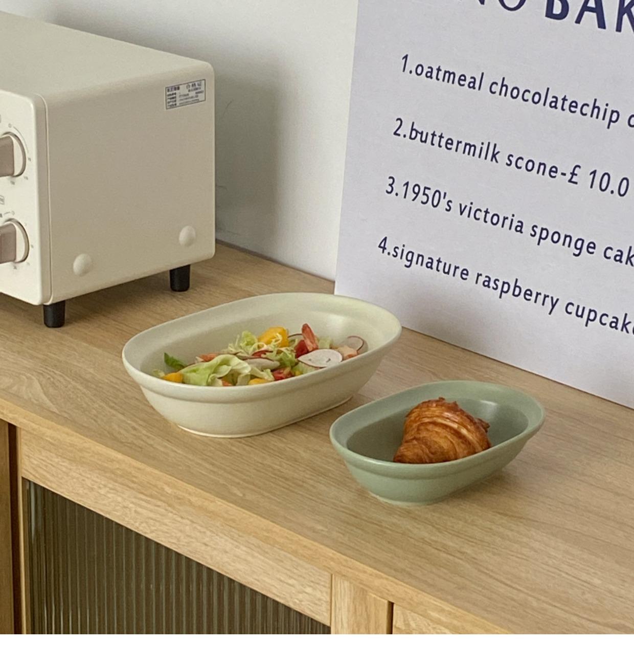 Plato de cerámica occidental estilo ins, plato ovalado, plato de postre de gran valor estético, plato de ensalada, plato de sopa, tazón de yogur de frutas