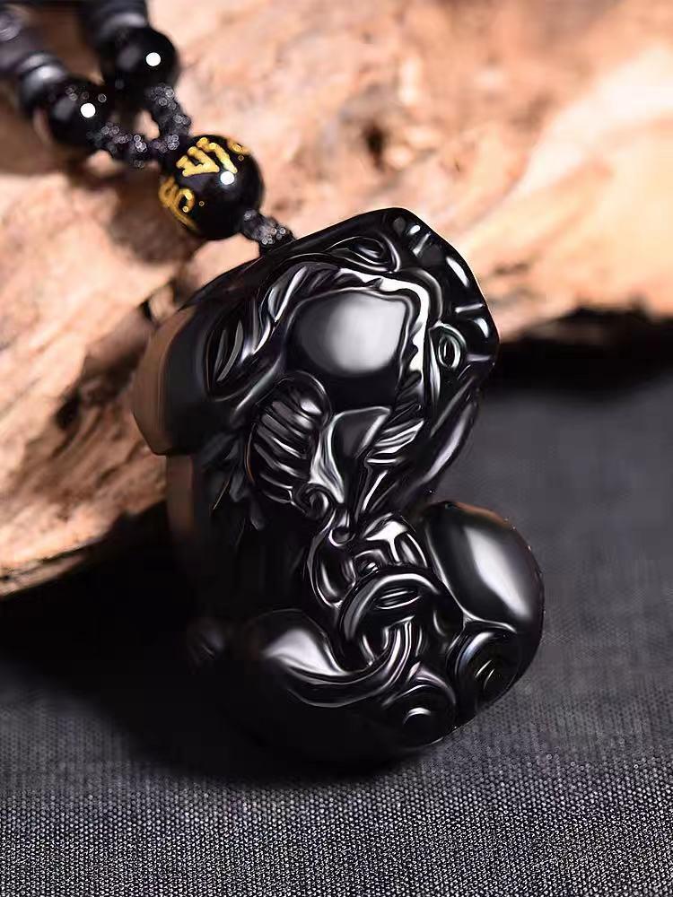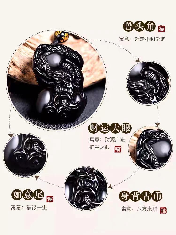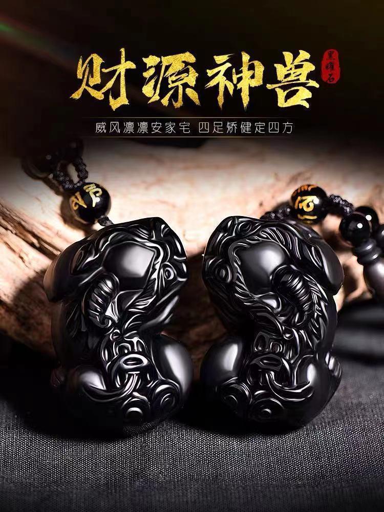 Colgante Pixiu de Obsidiana Natural para Hombres y Mujeres, Collar Pixiu Dominante de Obsidiana Dorada, Joyería de Cristal