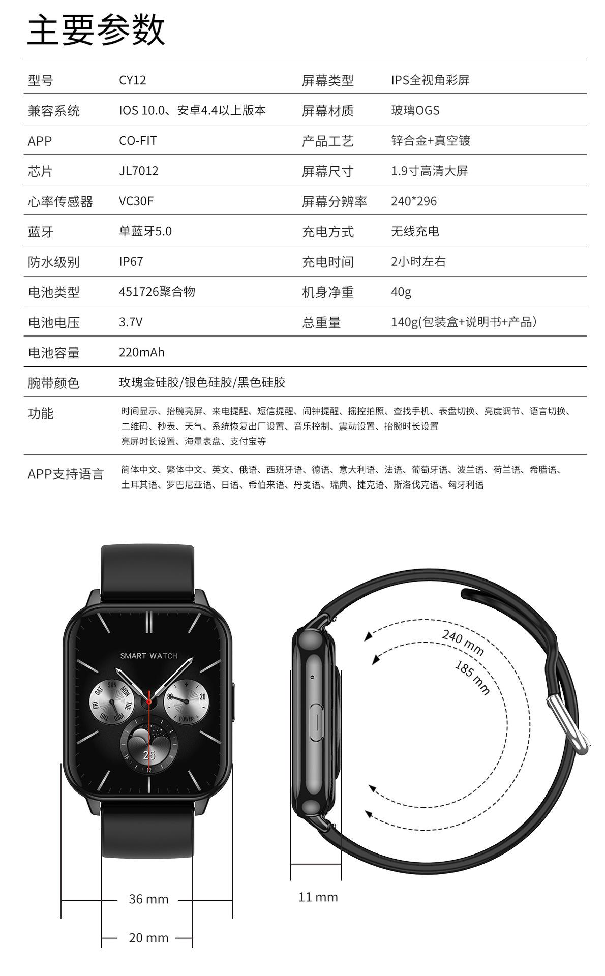 Nuevo reloj inteligente CY12 1.9 con Bluetooth, llamadas, pago sin conexión, carcasa de metal, resistente al agua, control del ritmo cardíaco, oxígeno en sangre y presión arterial, NFC.