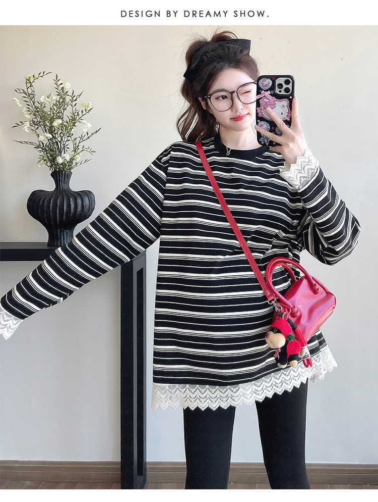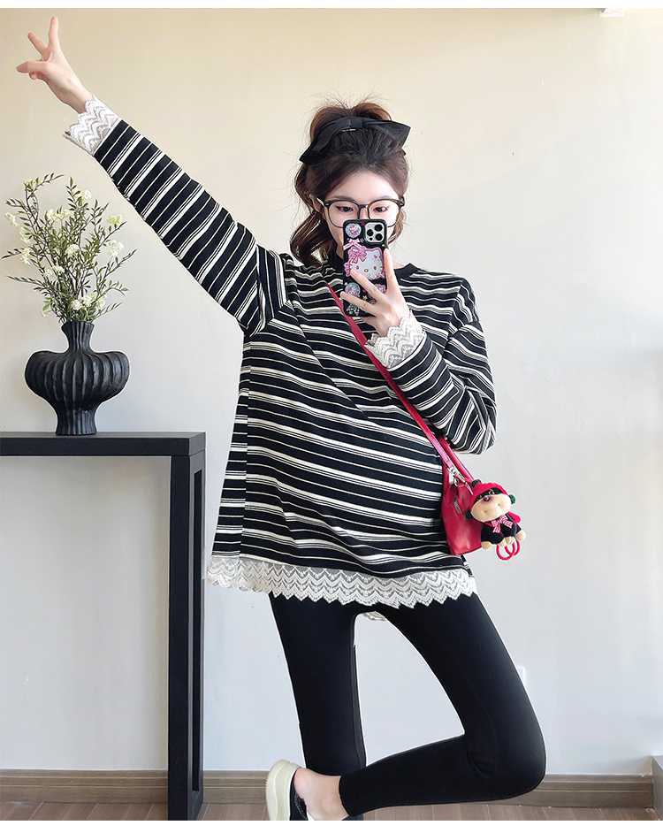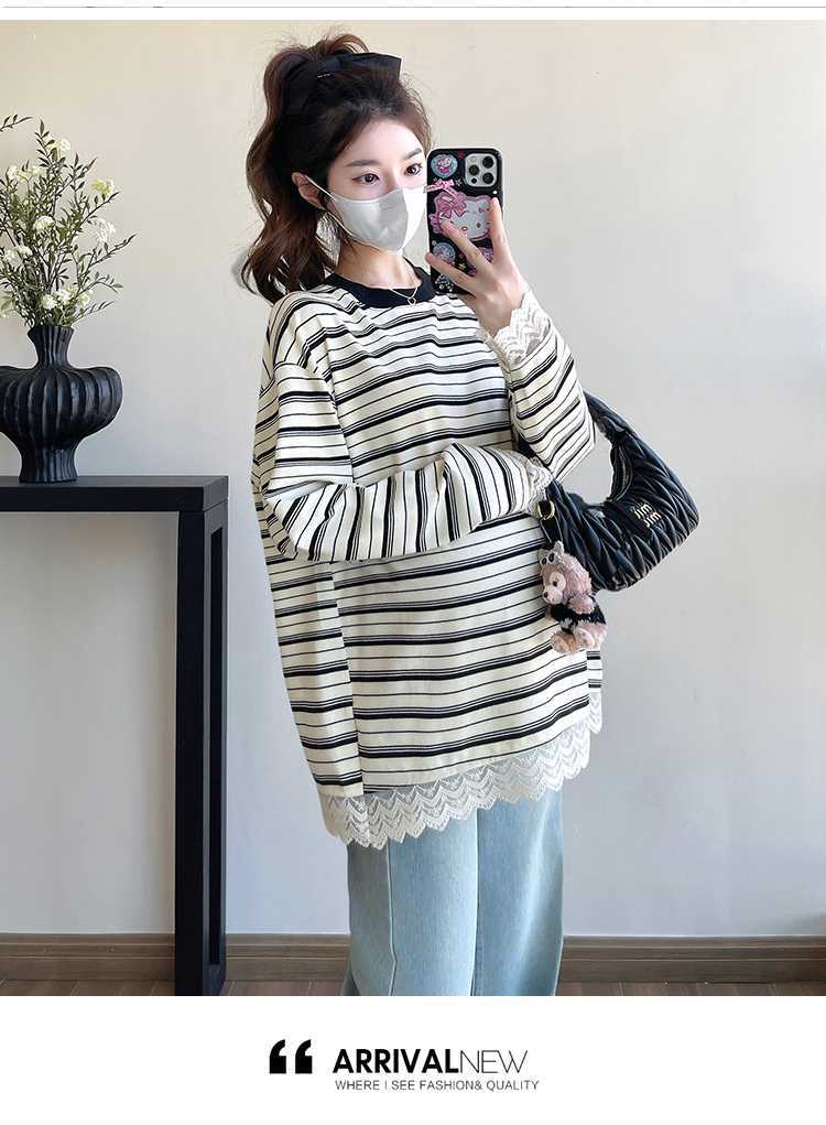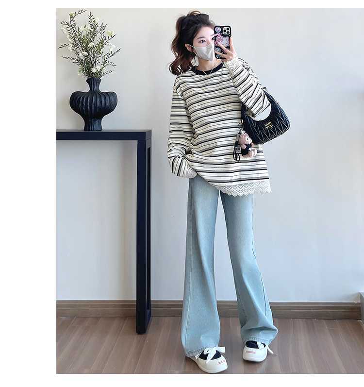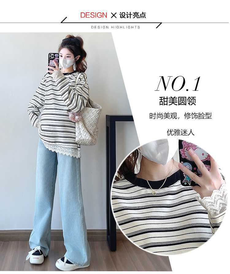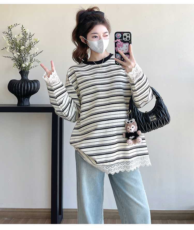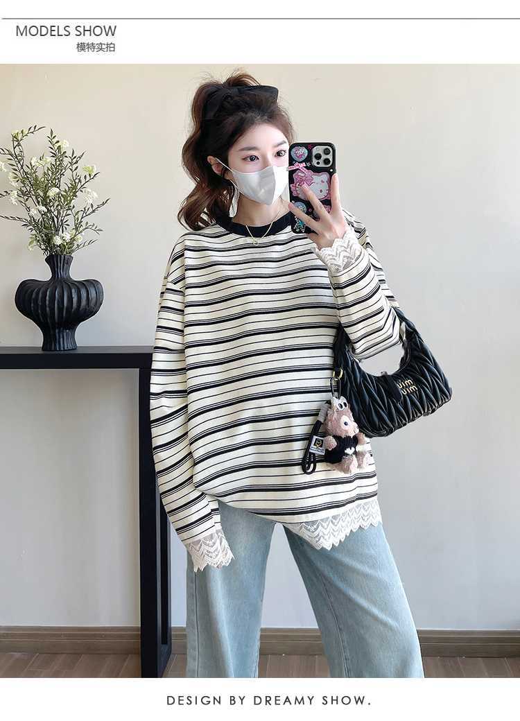 Vestido de Maternidad Primavera 2025 Estilo Coreano Encaje de Costura Camiseta Manga Larga Nuevo Holgado Sencillo Top para Mujeres Embarazadas