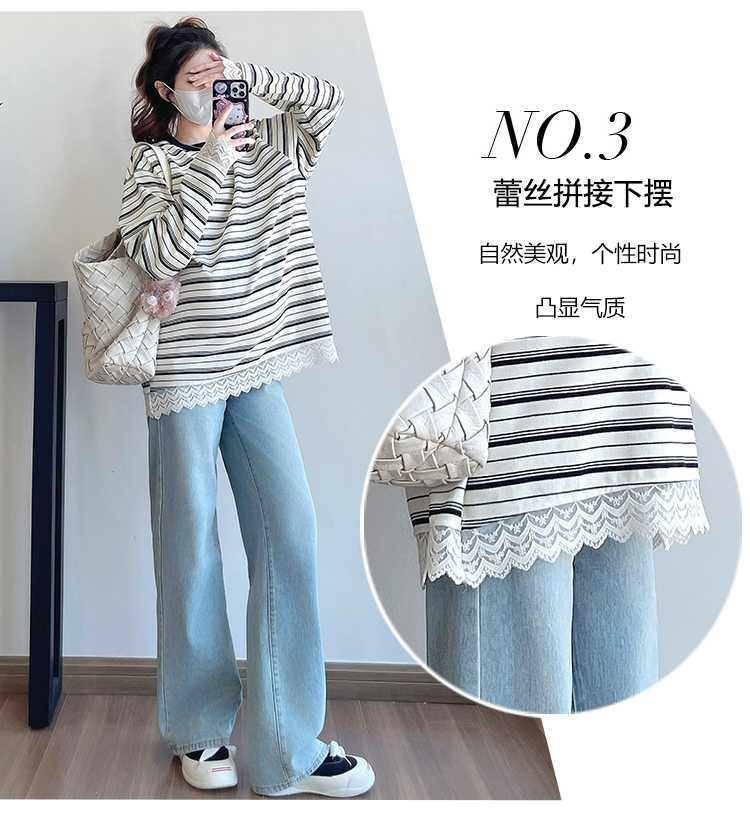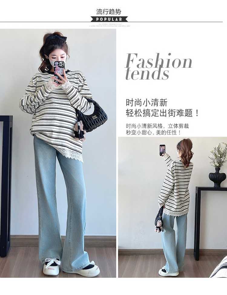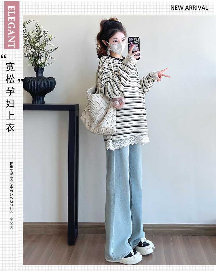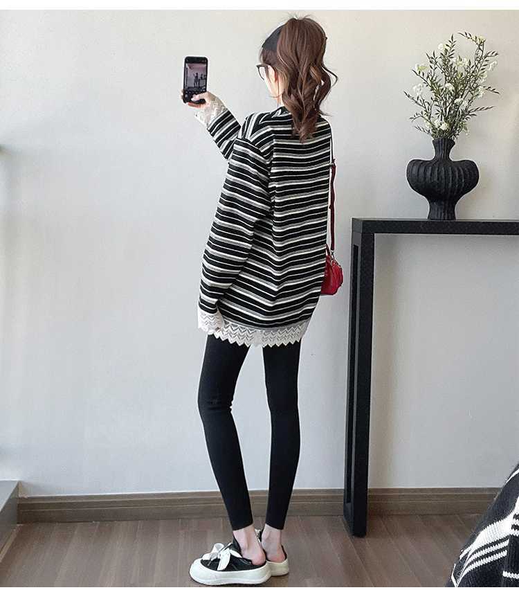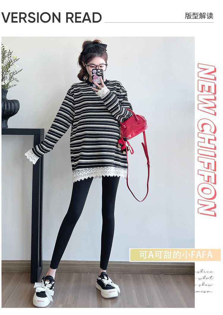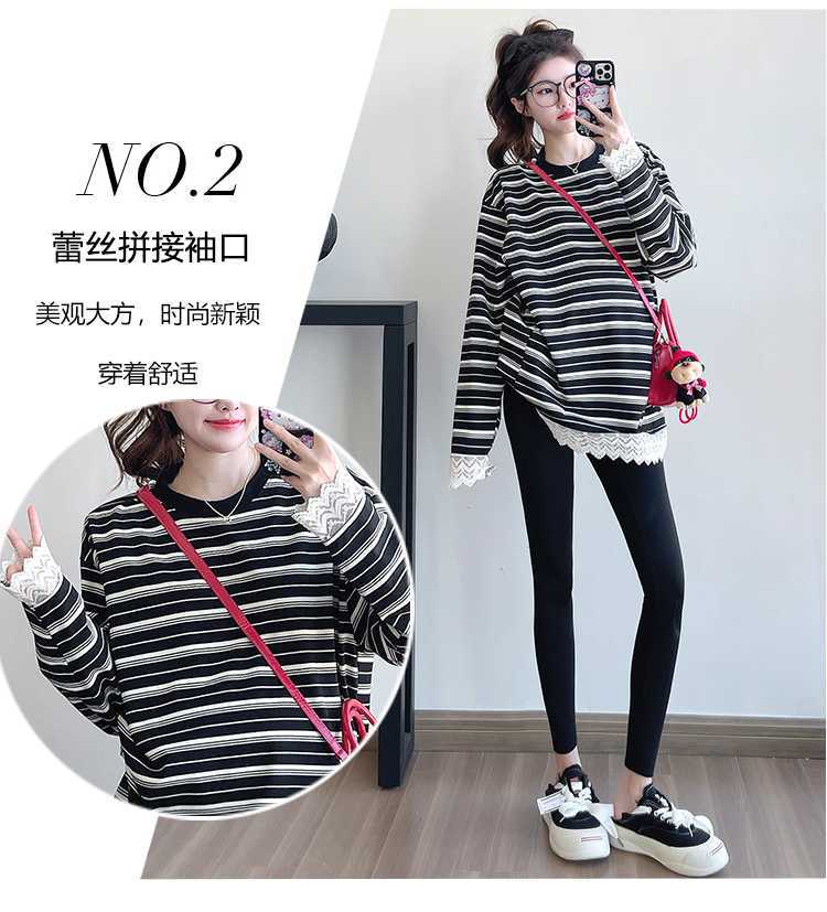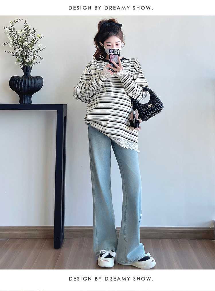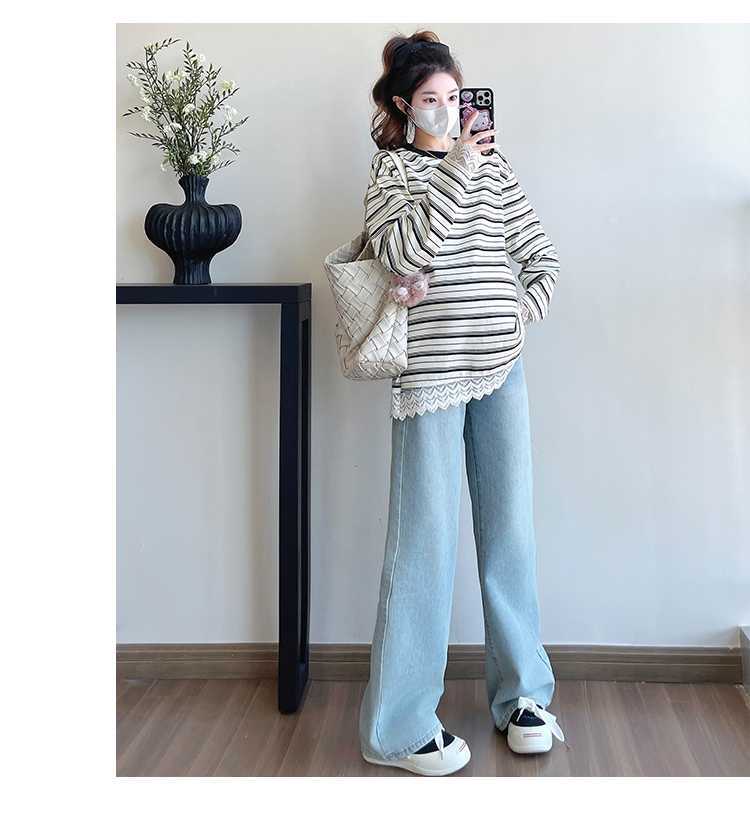Vestido de Maternidad Primavera 2025 Estilo Coreano Encaje de Costura Camiseta Manga Larga Nuevo Holgado Sencillo Top para Mujeres Embarazadas