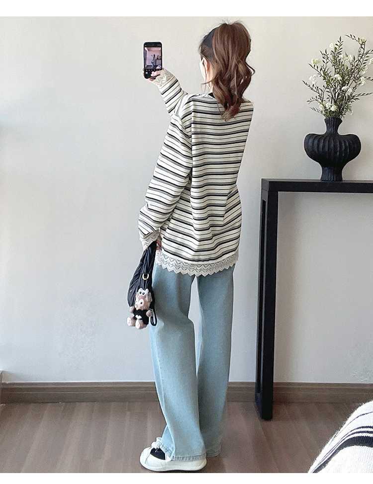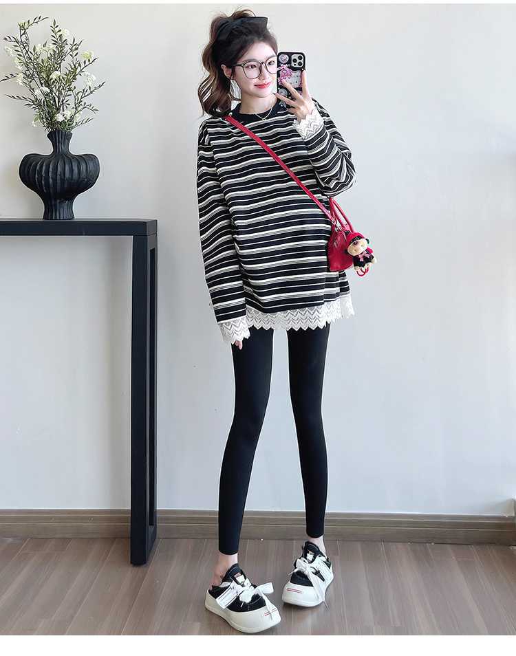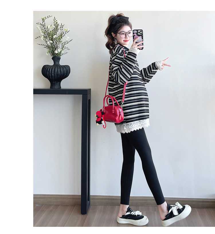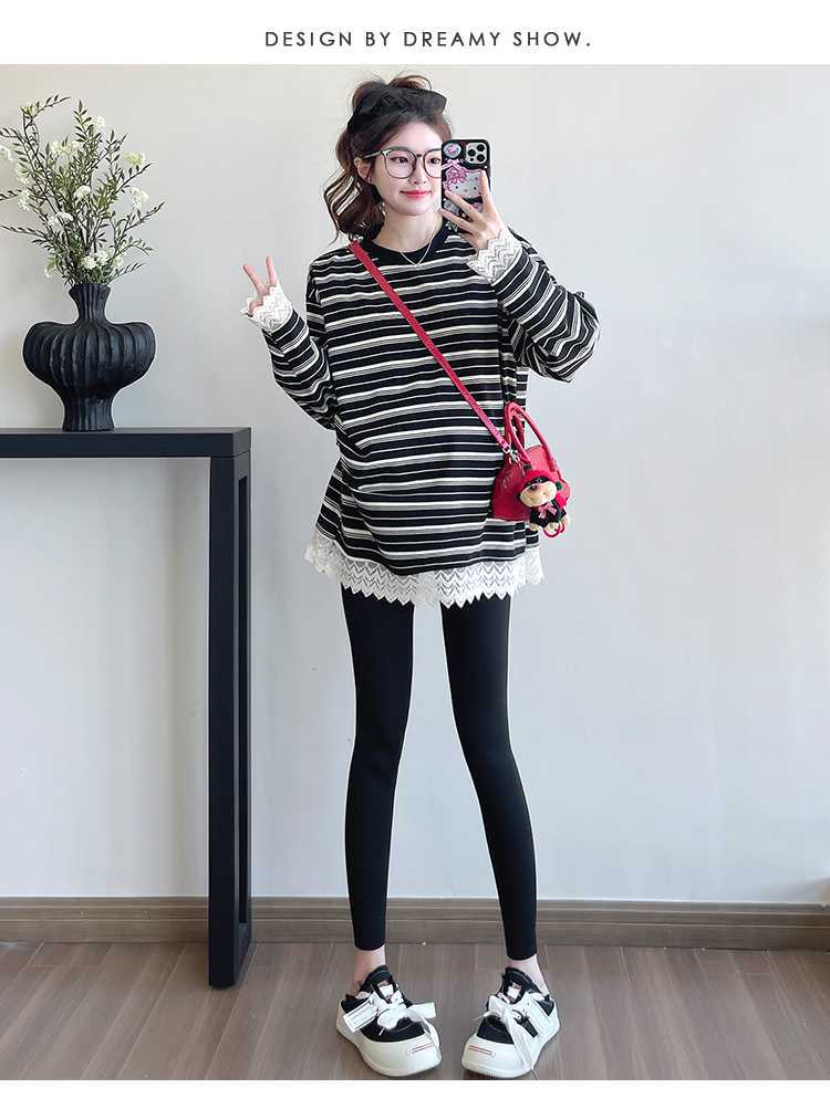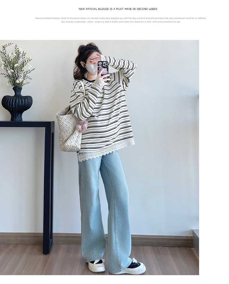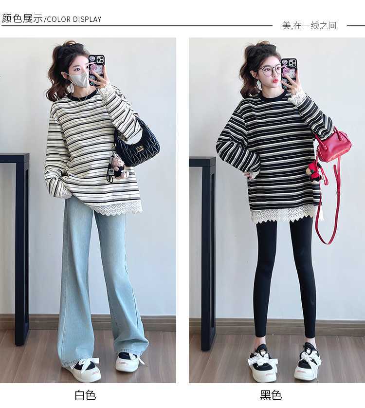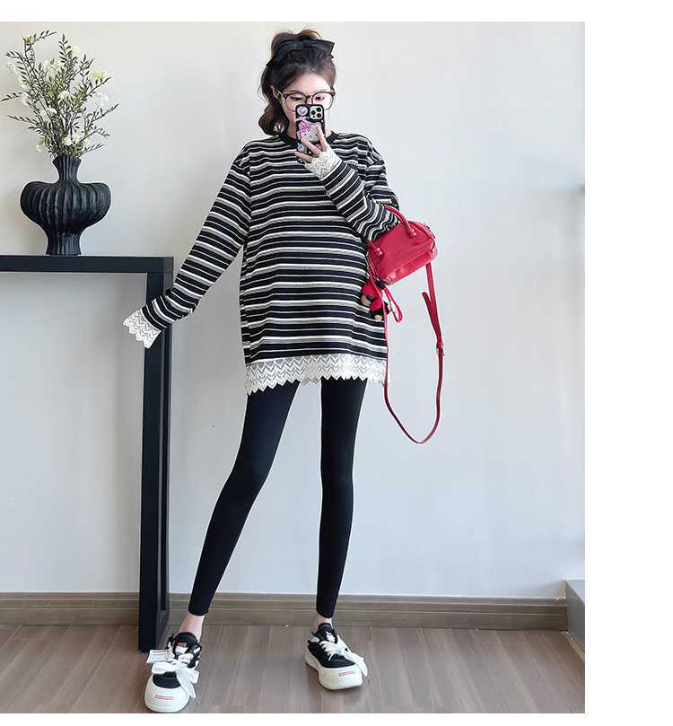 Vestido de Maternidad Primavera 2025 Estilo Coreano Encaje de Costura Camiseta Manga Larga Nuevo Holgado Sencillo Top para Mujeres Embarazadas