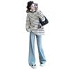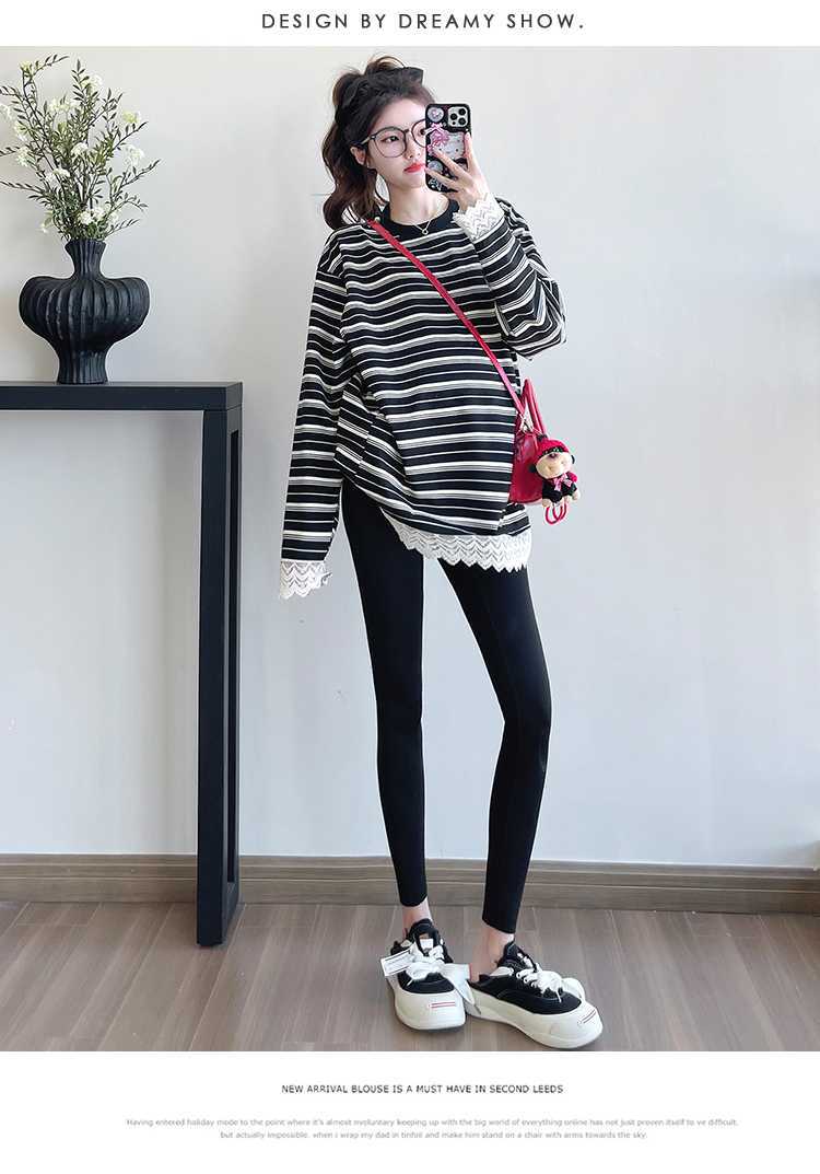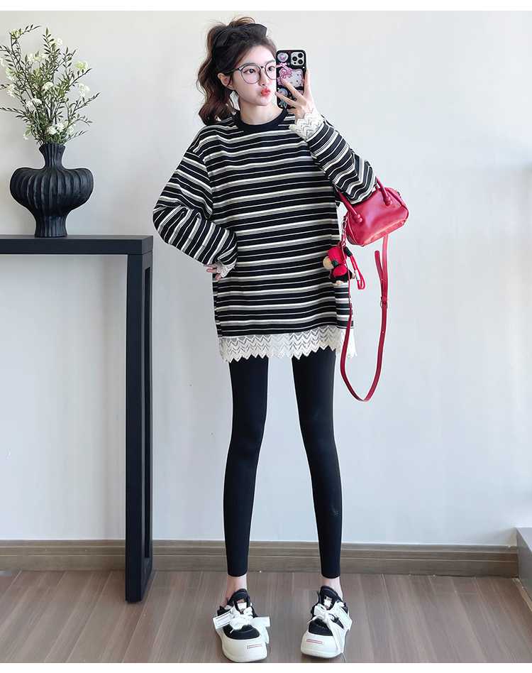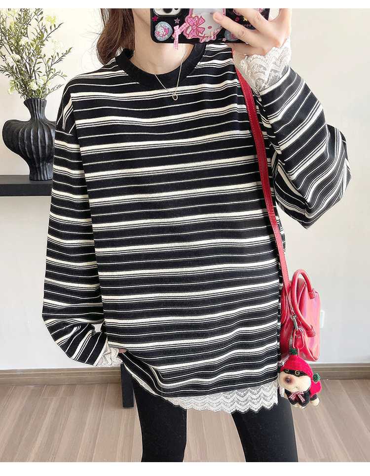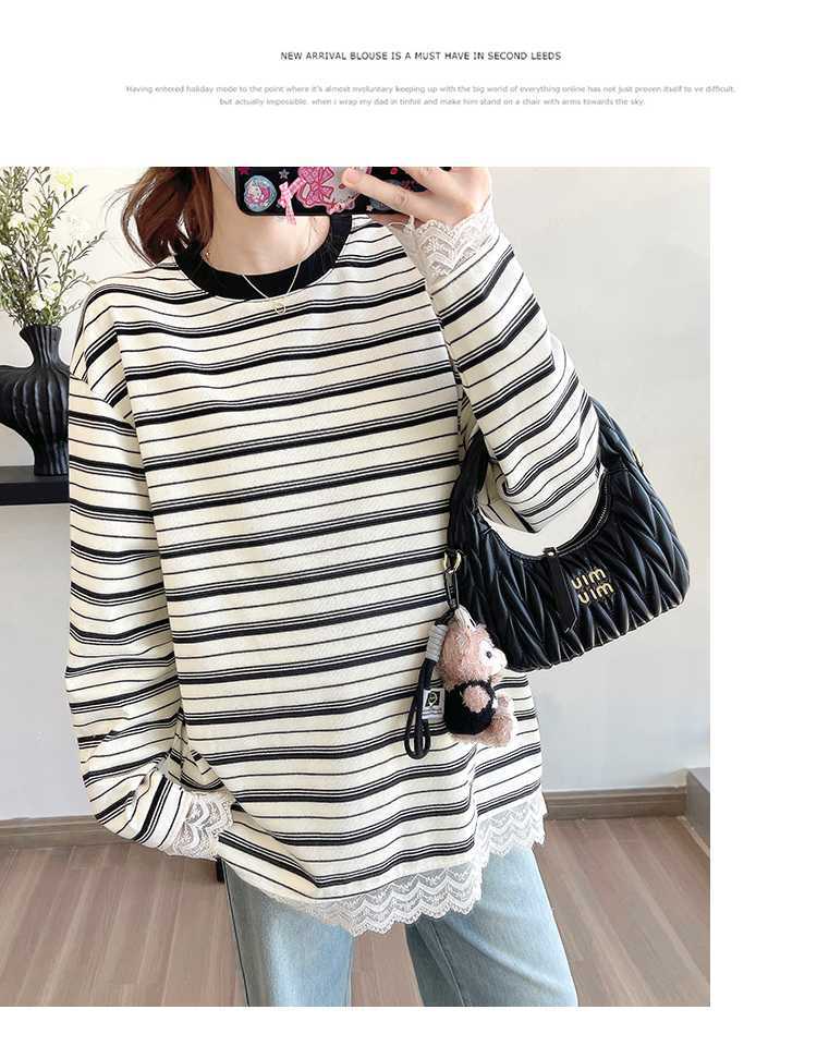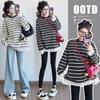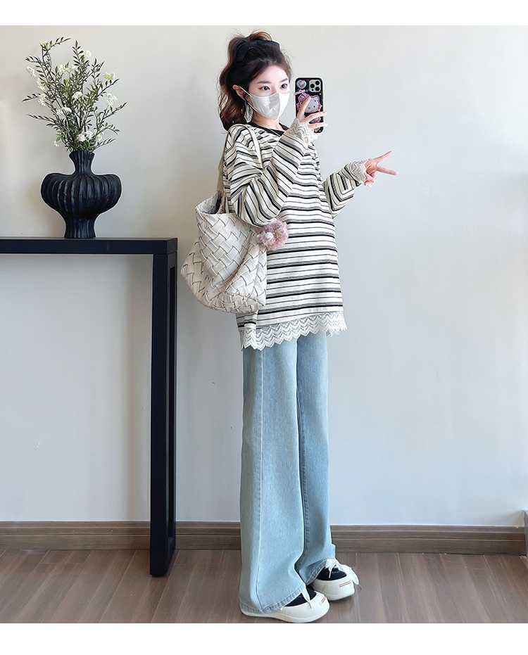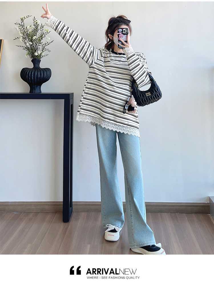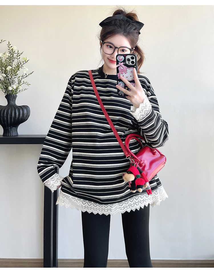 Vestido de Maternidad Primavera 2025 Estilo Coreano Encaje de Costura Camiseta Manga Larga Nuevo Holgado Sencillo Top para Mujeres Embarazadas