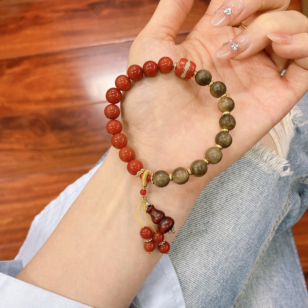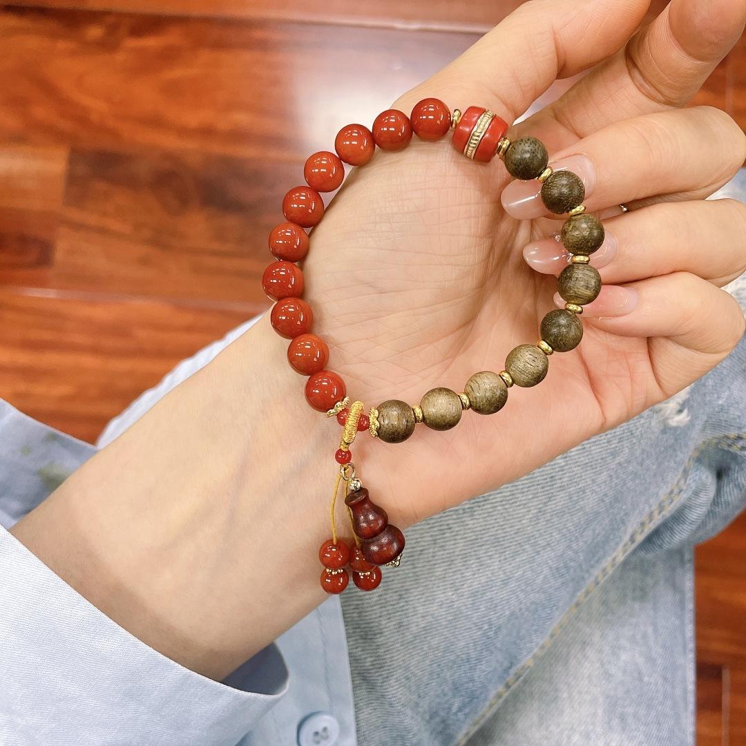Pulsera original de madera de agar natural roja del sur Pulsera de alta gama Bandeja de juego Accesorios de moda Accesorios Libro rojo pequeño Mismo estilo