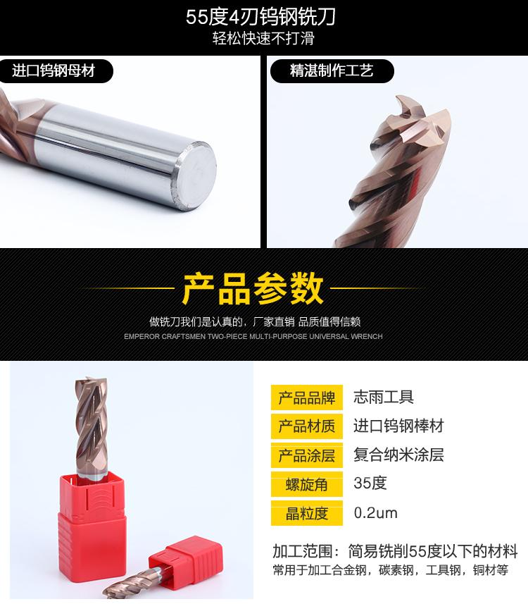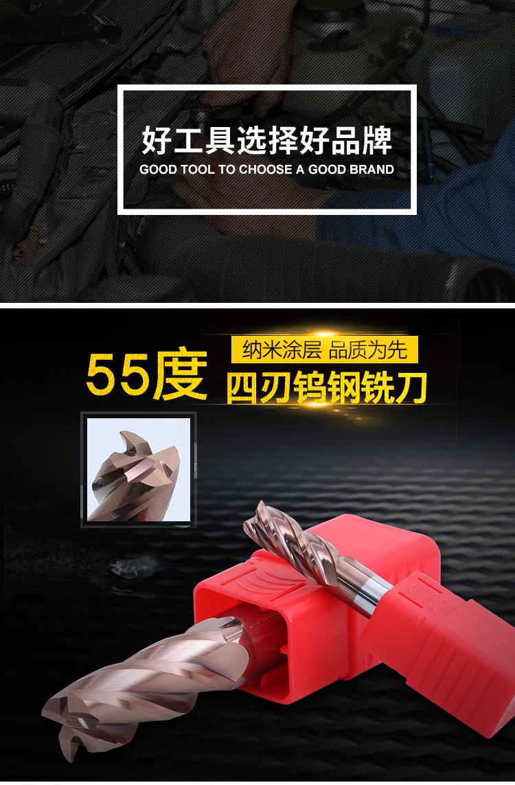 Fresa de extremo de carburo de tungsteno de 55 grados, 4 hojas, fondo plano, CNC, cortador de metal, fresa recubierta para máquina integral