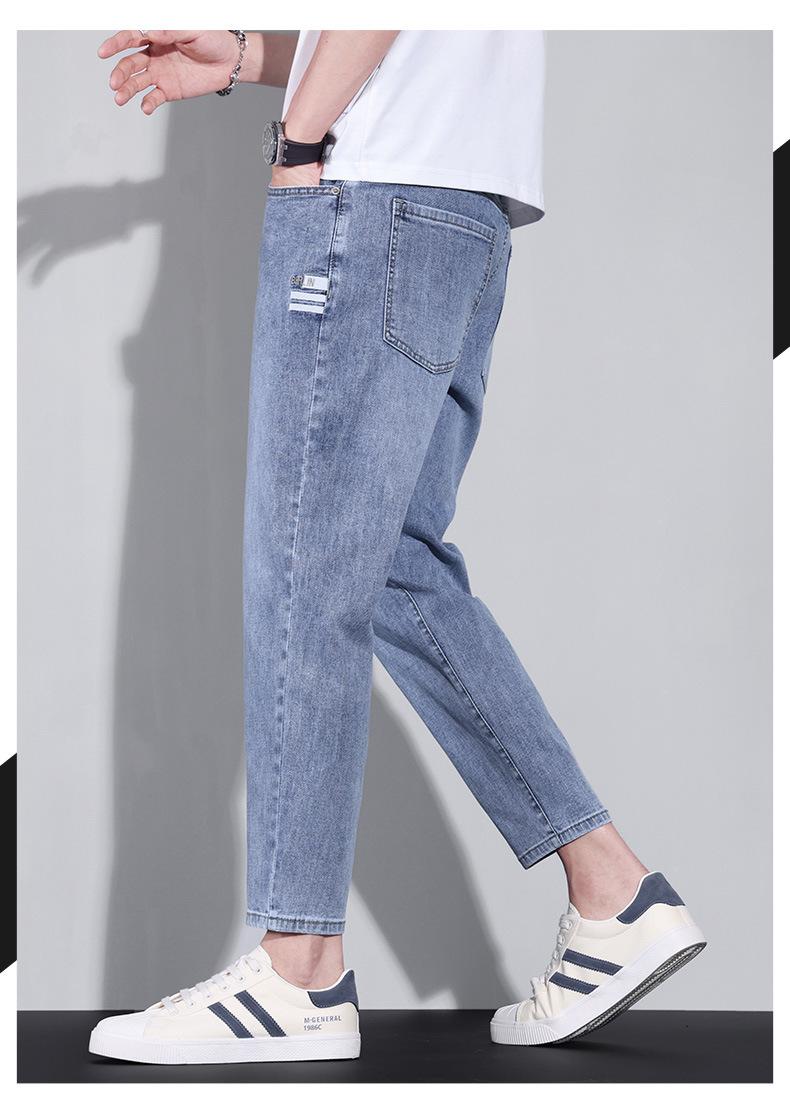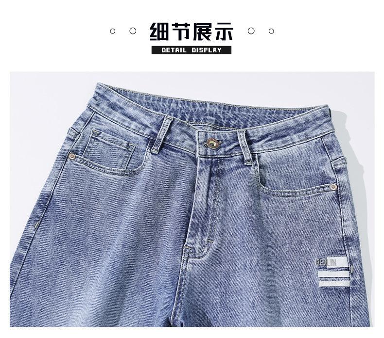 Jeans para Hombre Verano Moda de Marca Sueltos Rectos Pantalones 9 puntos 2024 Verano Nuevo Todo Combinable Elásticos Casuales Pantalones Recortados