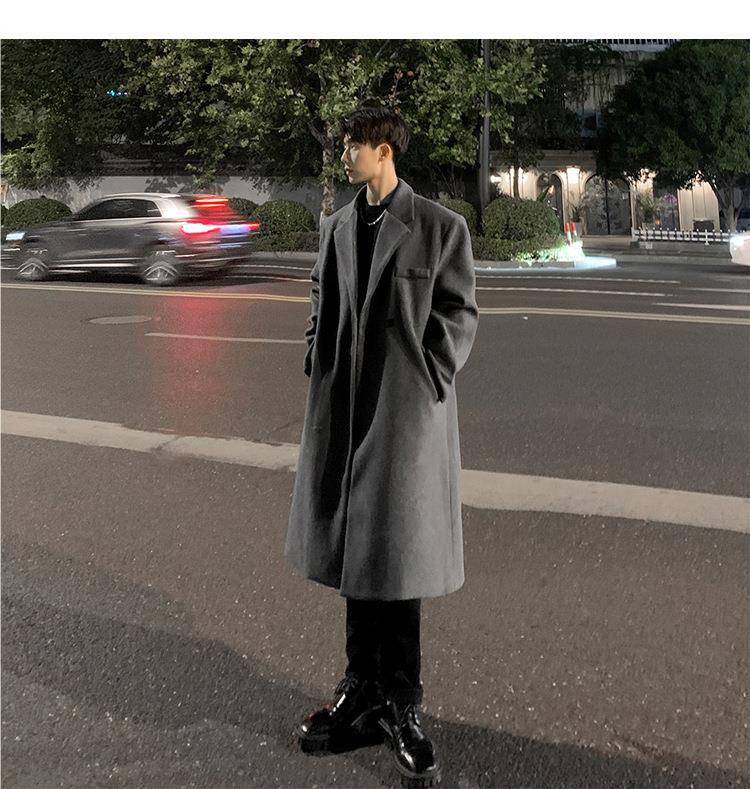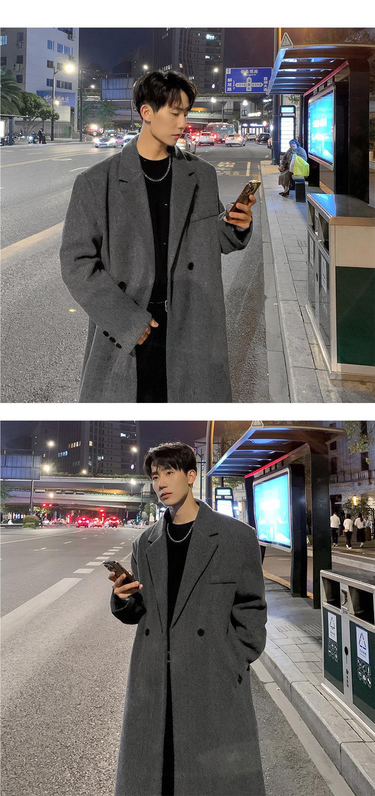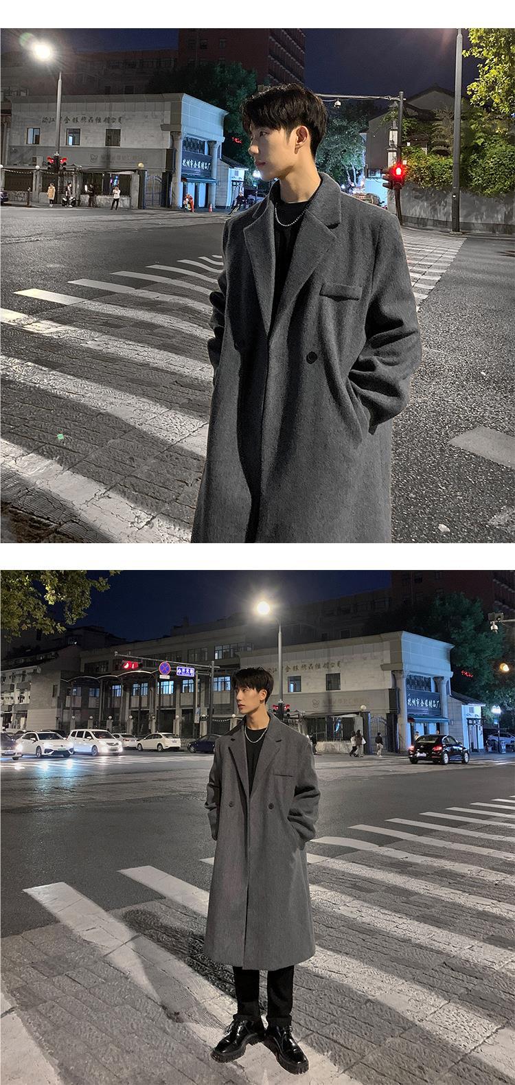 Hermoso abrigo de lana por encima de la rodilla para hombre, abrigo de invierno largo de moda de estilo coreano, gabardina gruesa para hombre.
