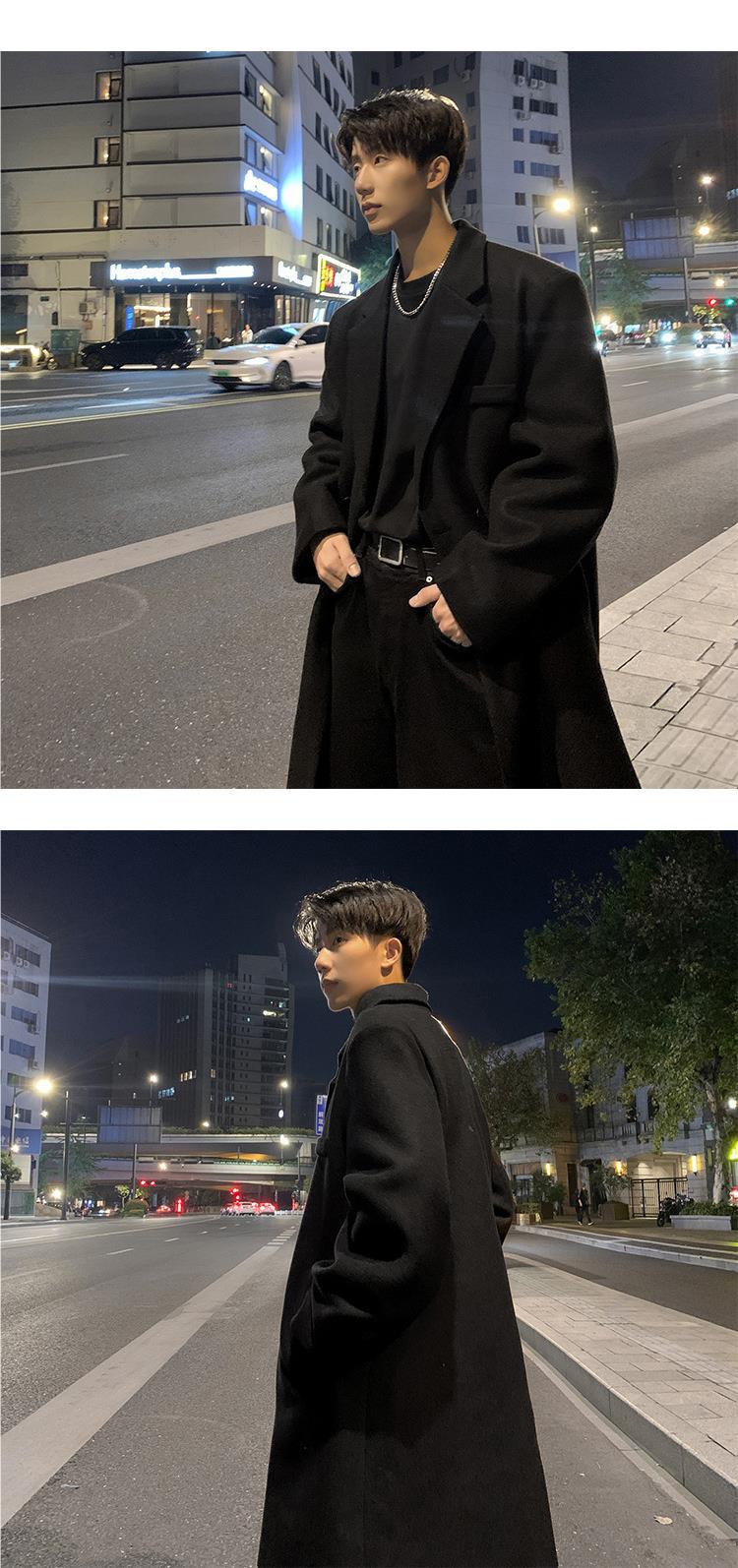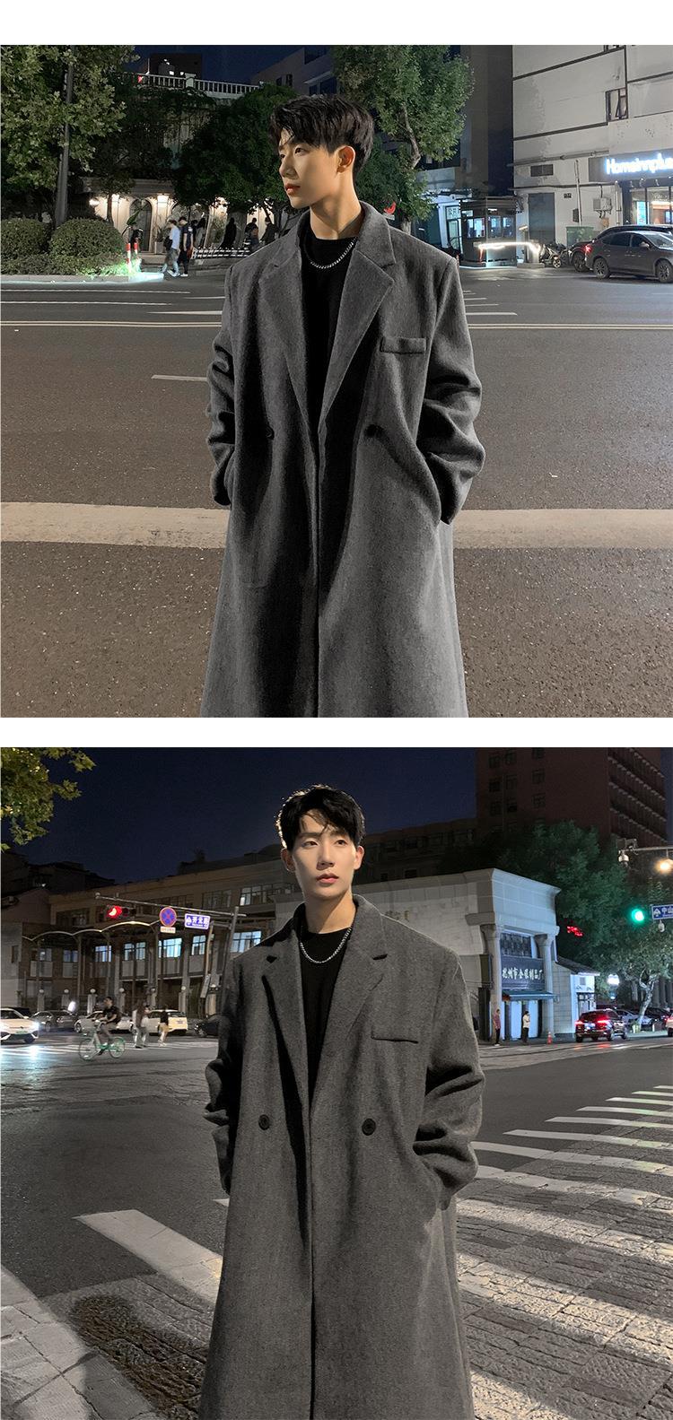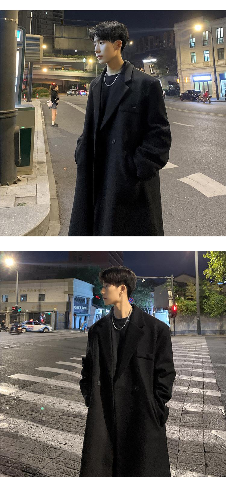 Hermoso abrigo de lana por encima de la rodilla para hombre, abrigo de invierno largo de moda de estilo coreano, gabardina gruesa para hombre.