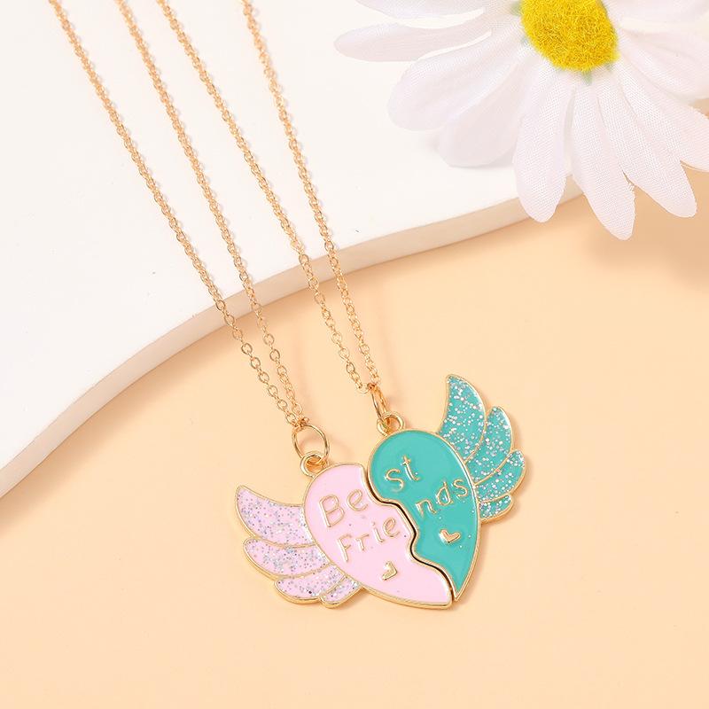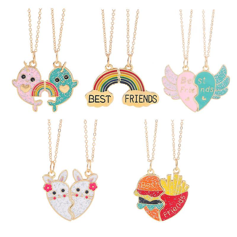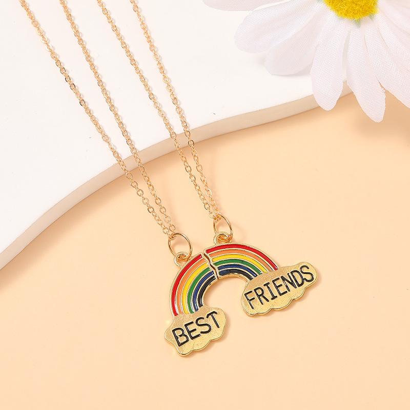 Collar de la Amistad Bff de Venta Caliente Transfronterizo con Diseño de Corazón, Mariposa y Arcoíris, 1 Set de Collares de Moda para Mejores Amigas