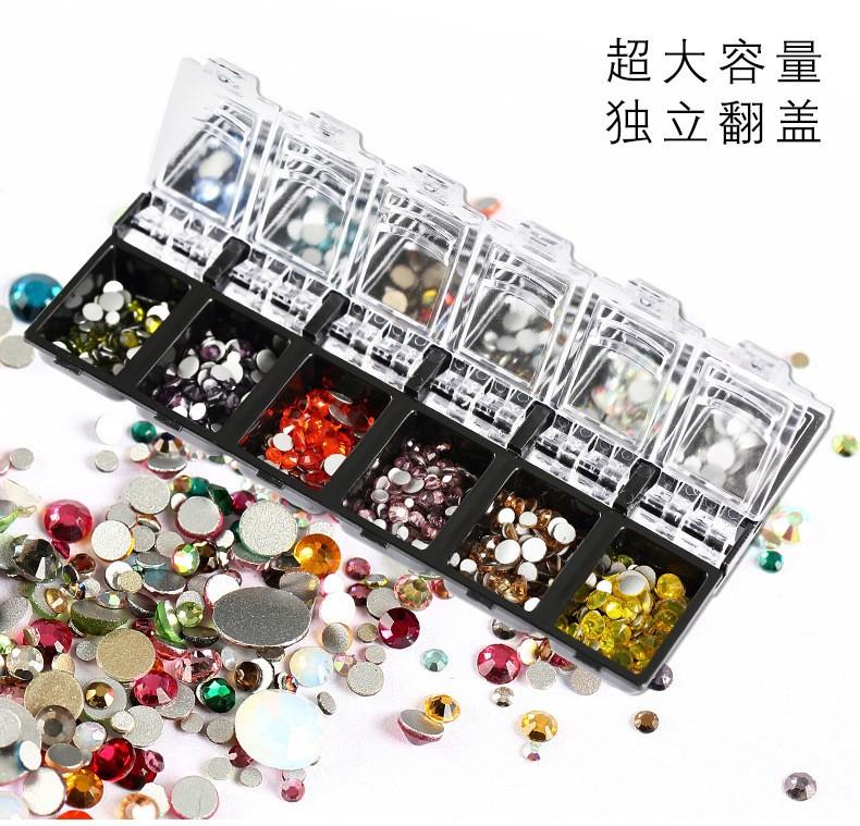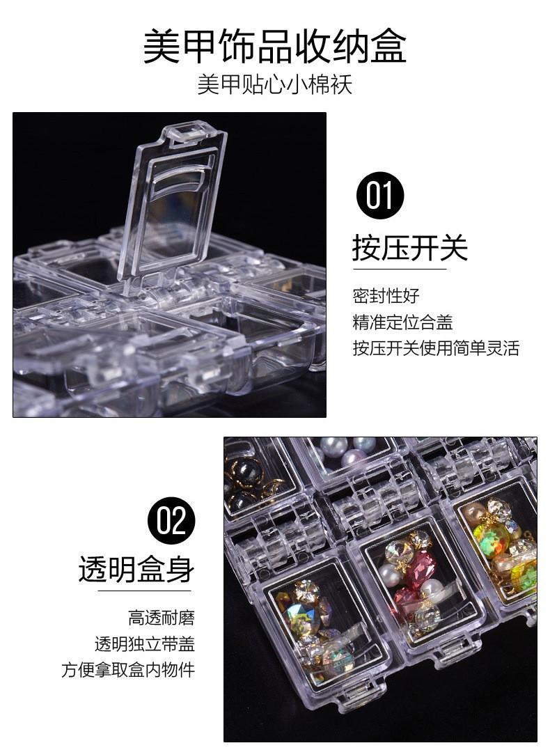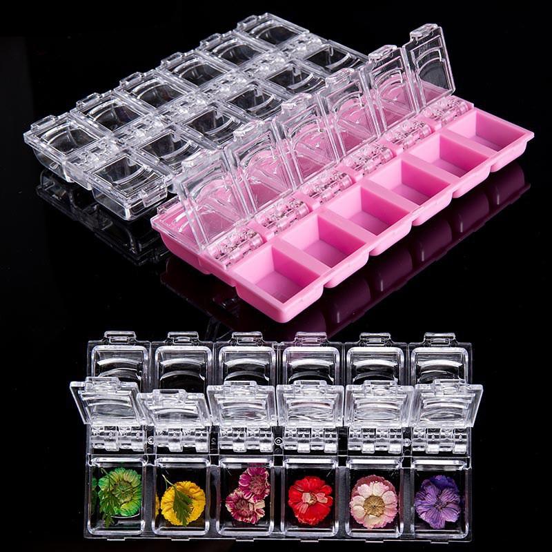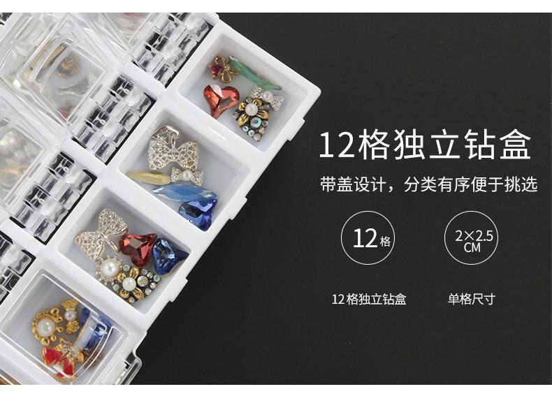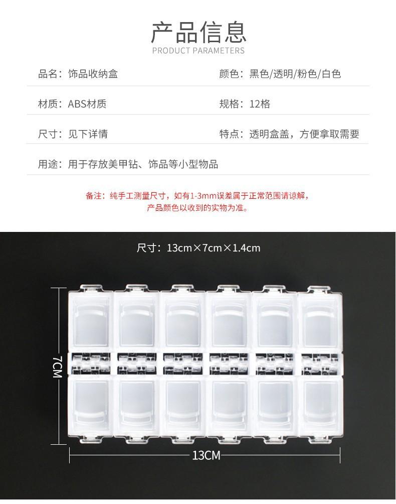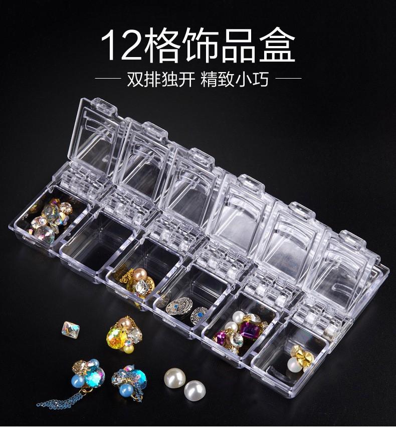 Caja de almacenamiento de joyas para uñas, caja de acrílico con 12 rejillas, mini caja de diamantes, caja de exhibición independiente con tapa para decoraciones de uñas