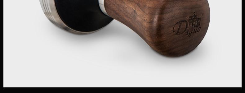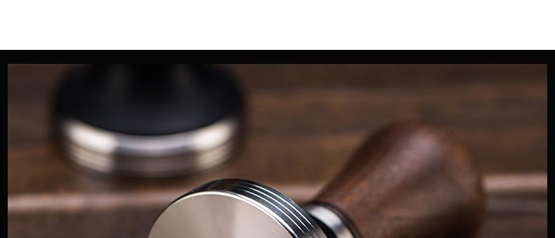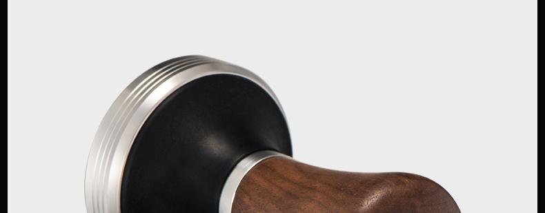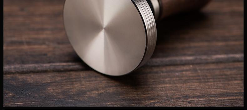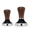Prensa de café italiana con mango de madera y martillo de llenado de polvo plano, ajustable en acero inoxidable de 51/53/58 mm.