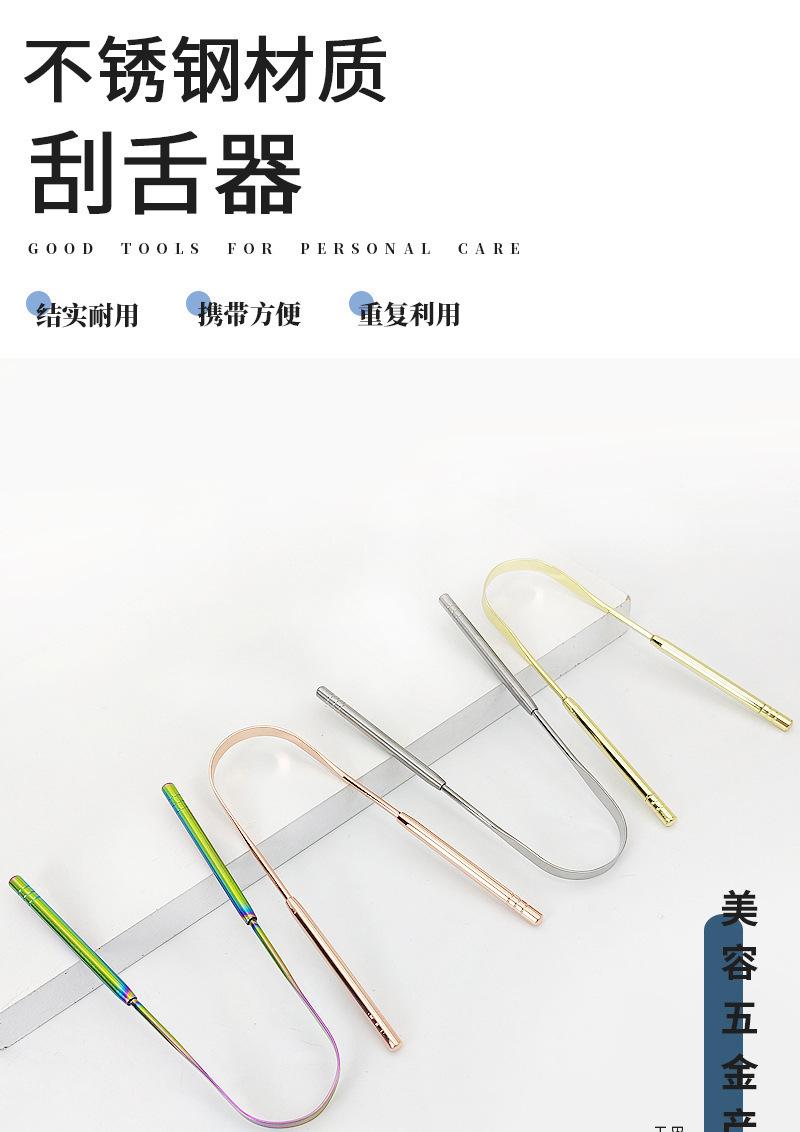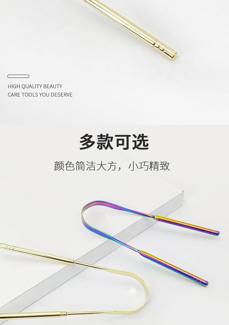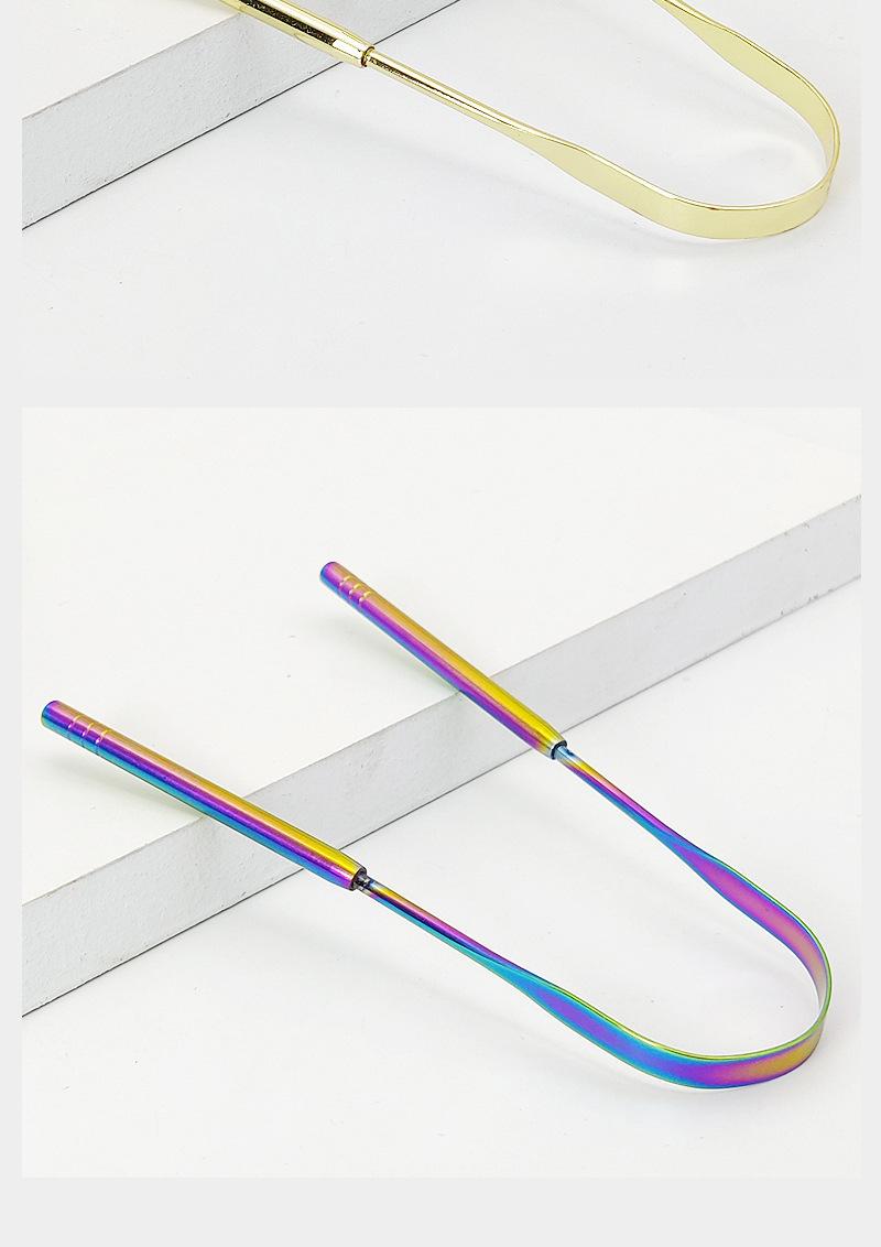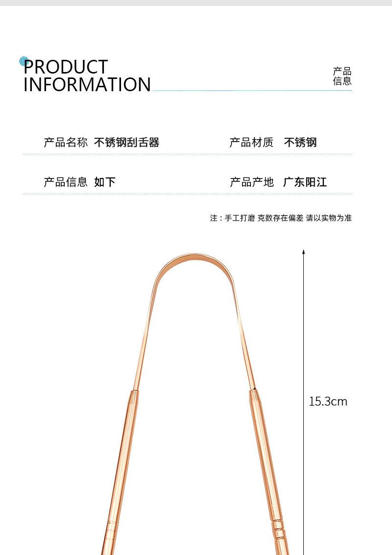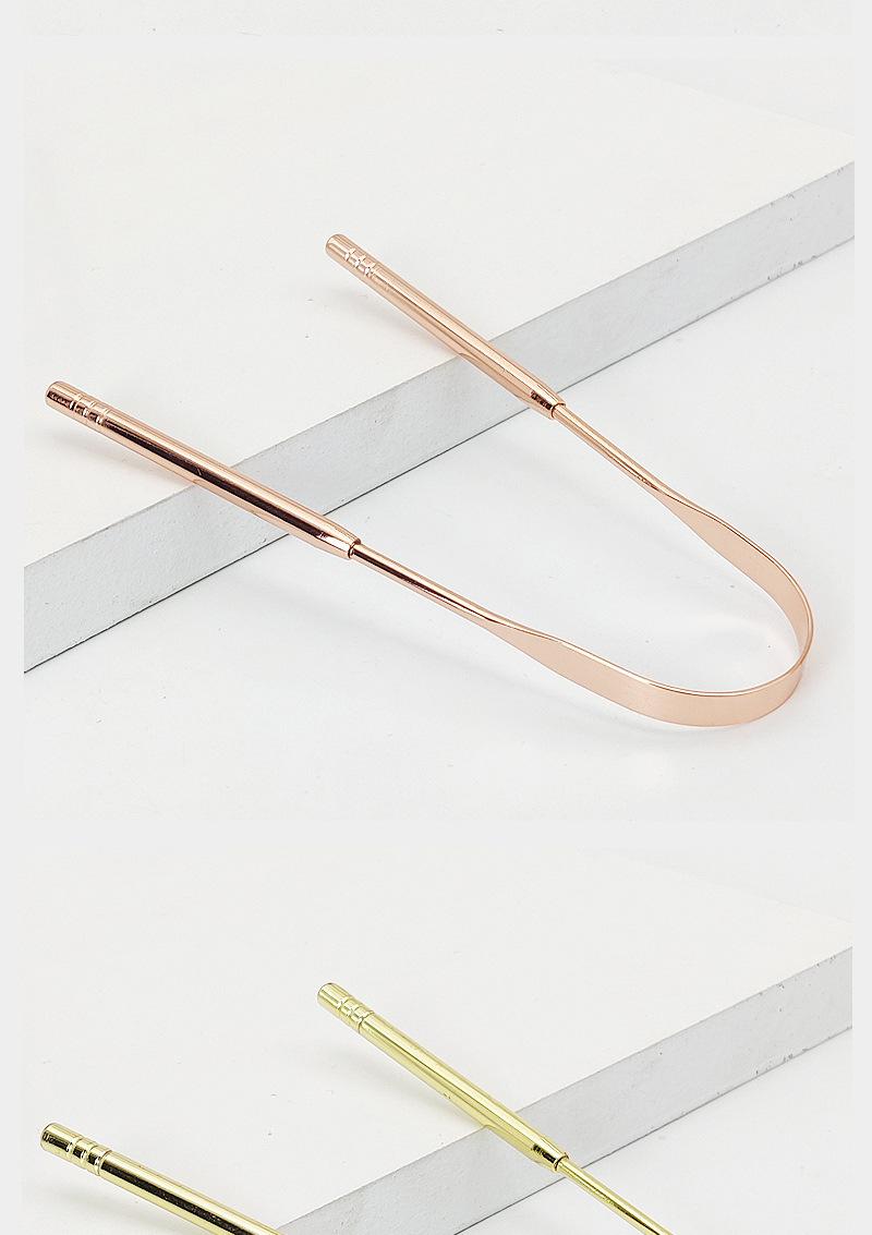 Raspador de lengua en forma de U de oro rosa disponible en stock transfronterizo, limpiador de recubrimiento lingual de acero inoxidable, cepillo para el recubrimiento lingual, herramientas de limpieza bucal.